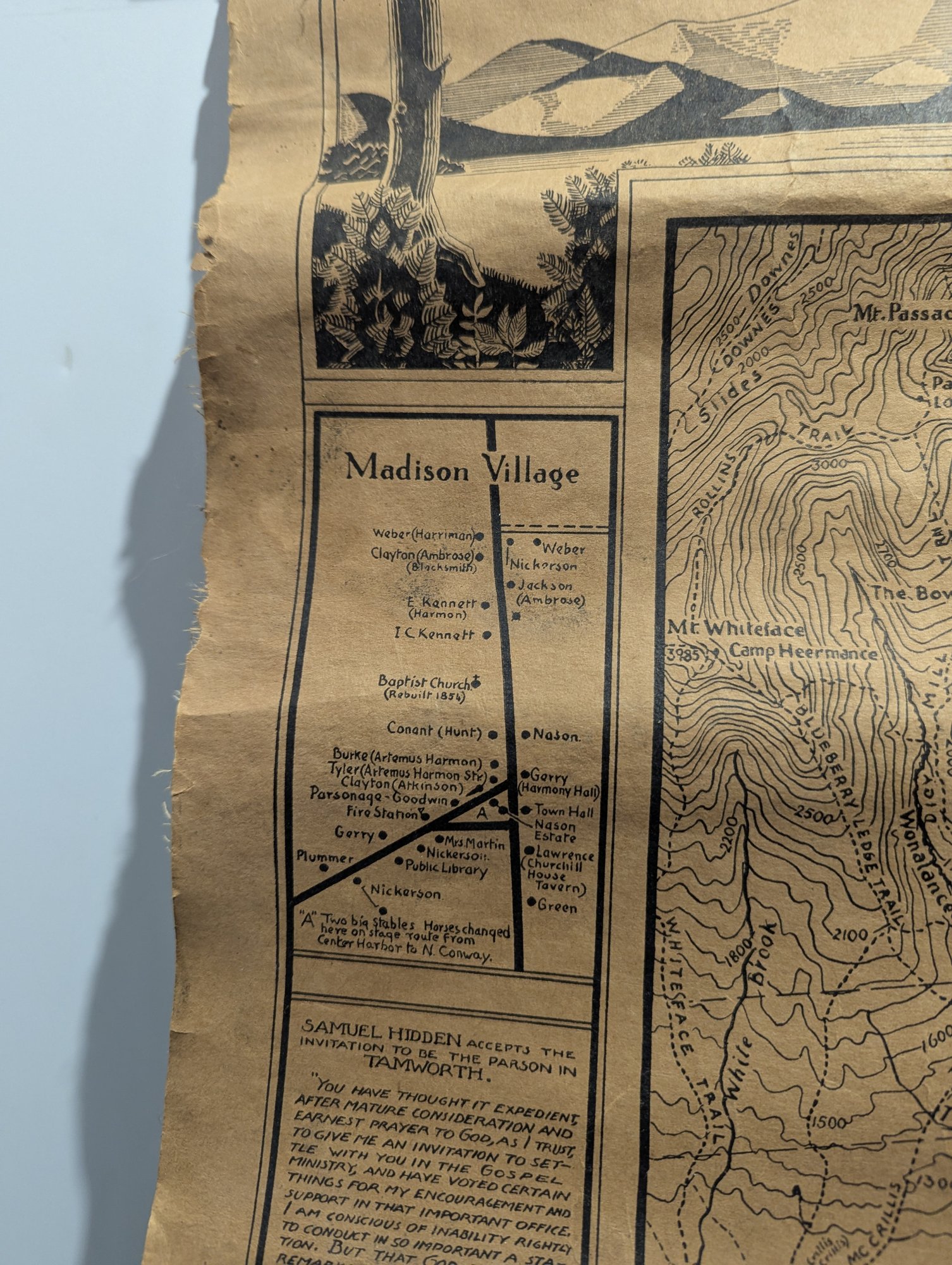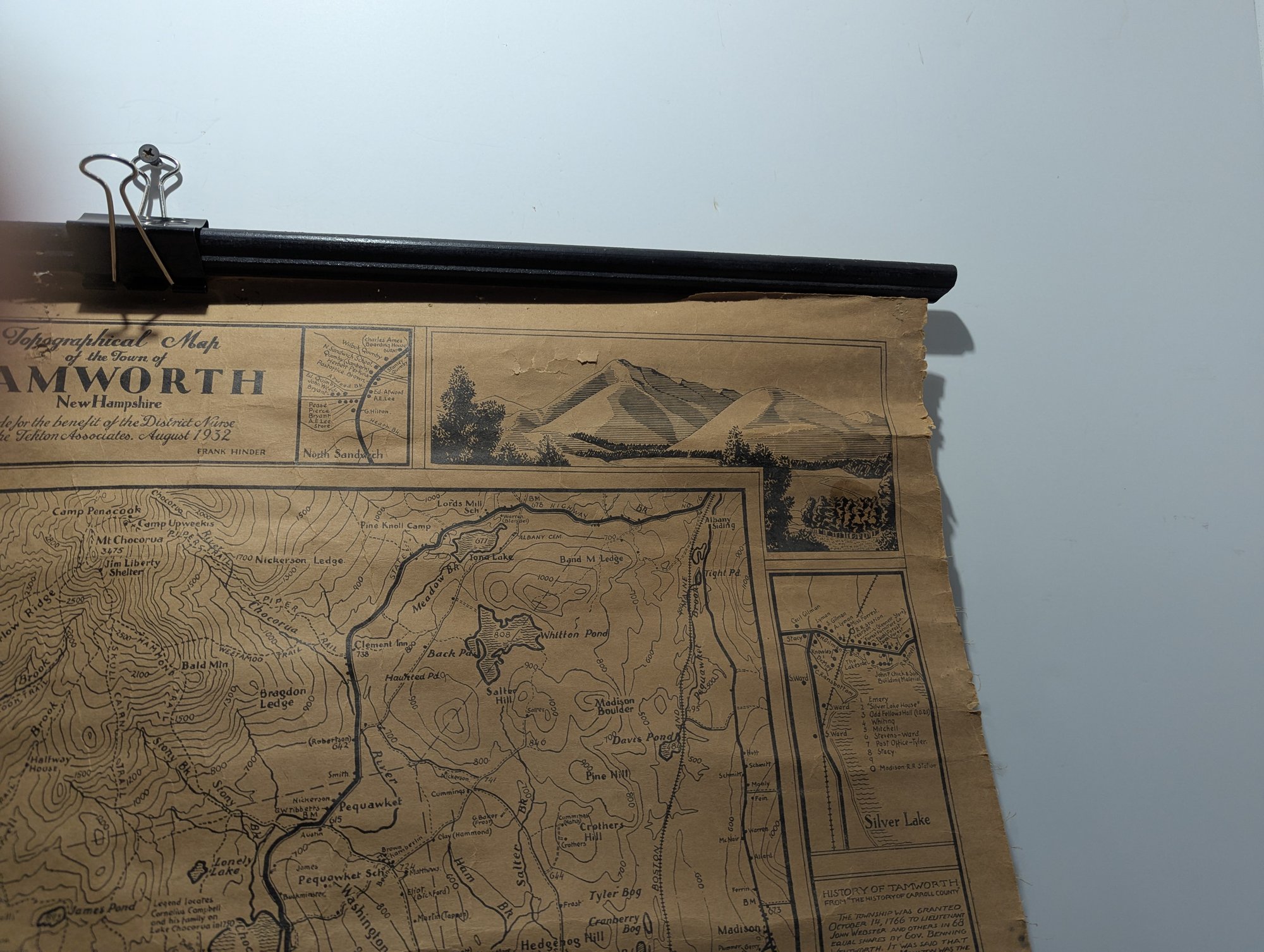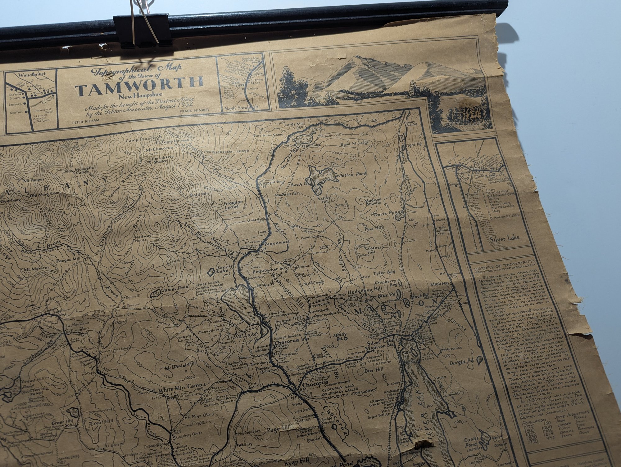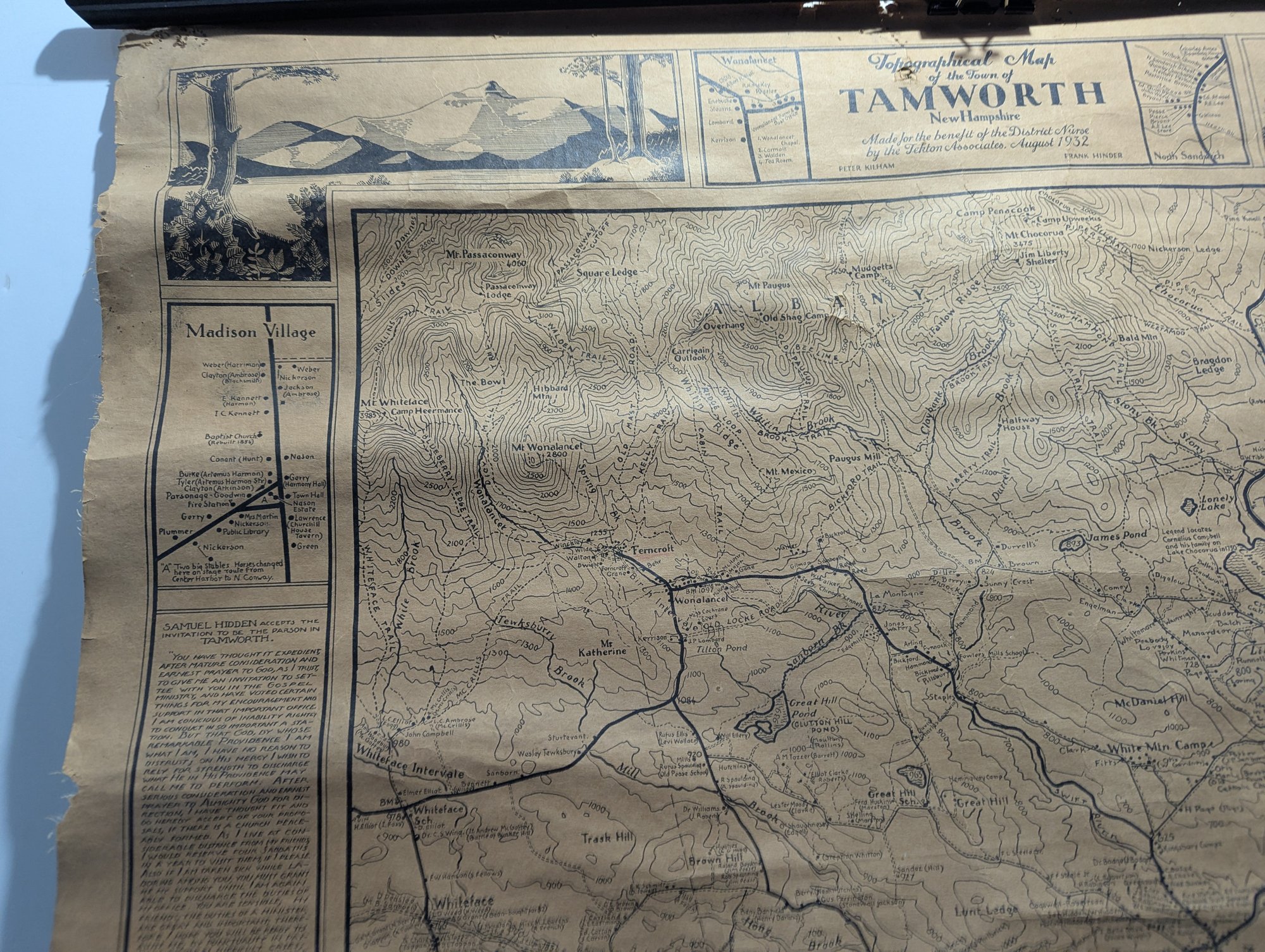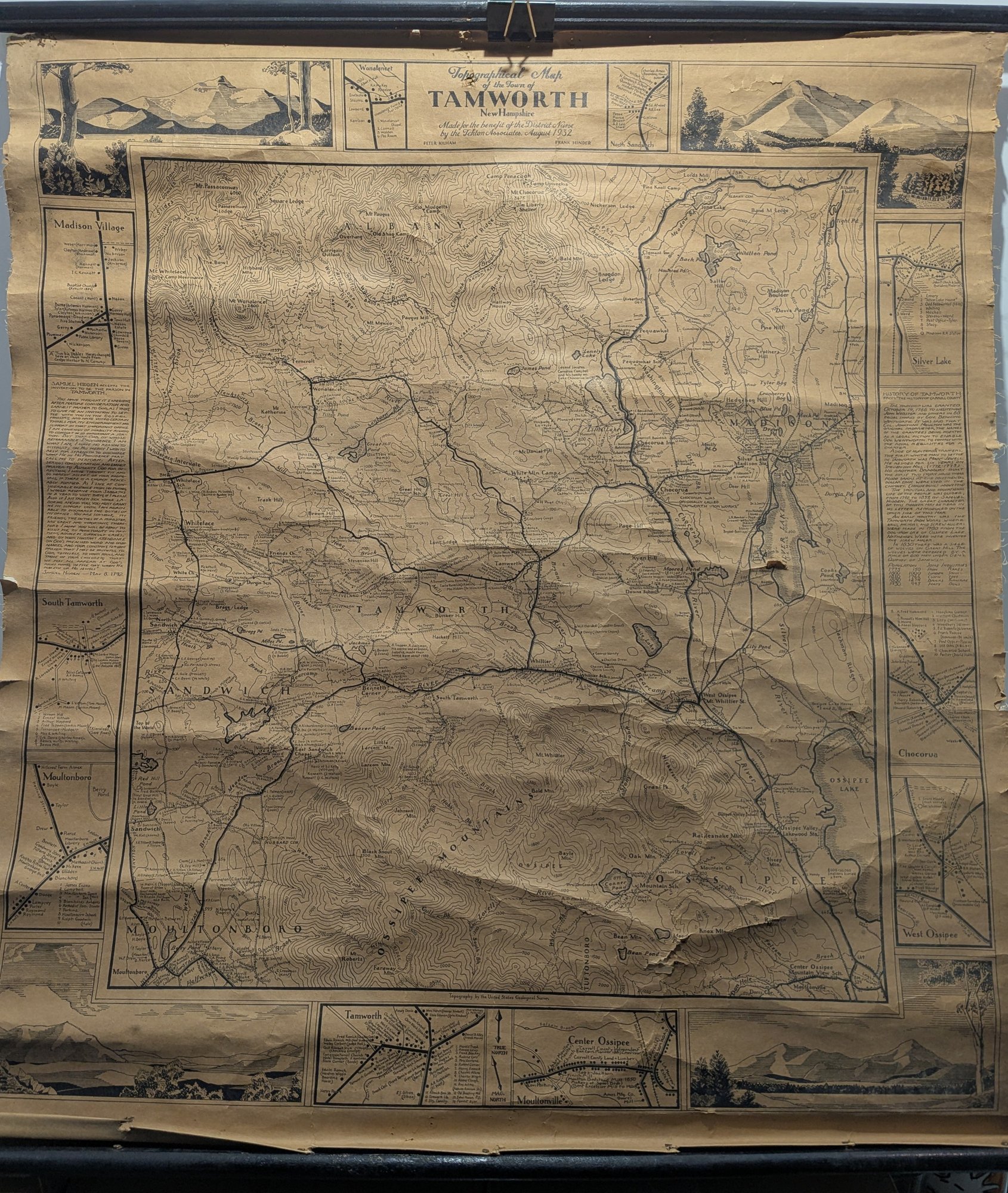 1932 Topographical Wall Map of Tamworth New Hampshire by Peter Kilham & Frank Hinder