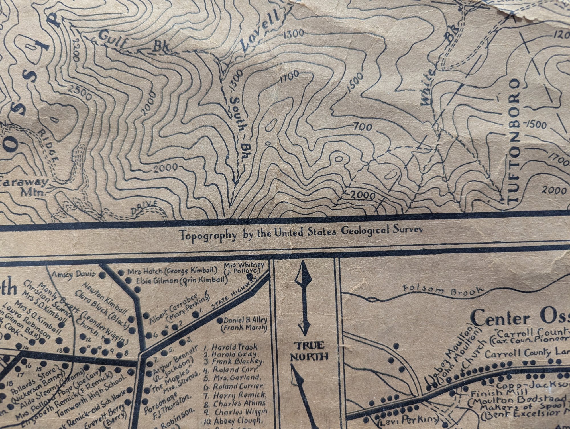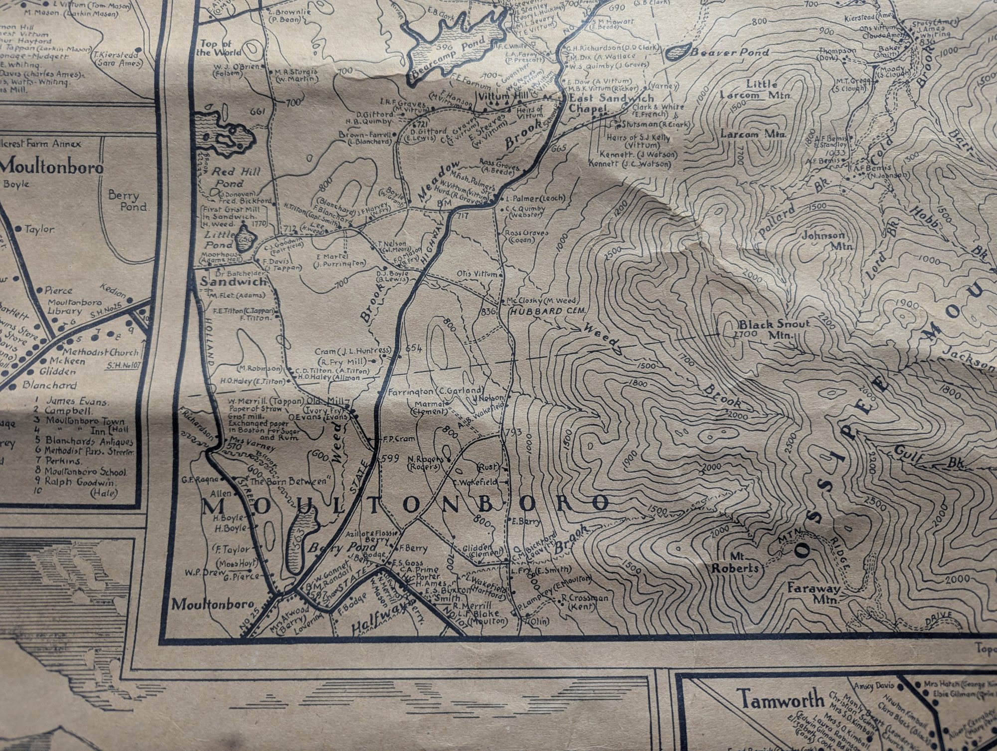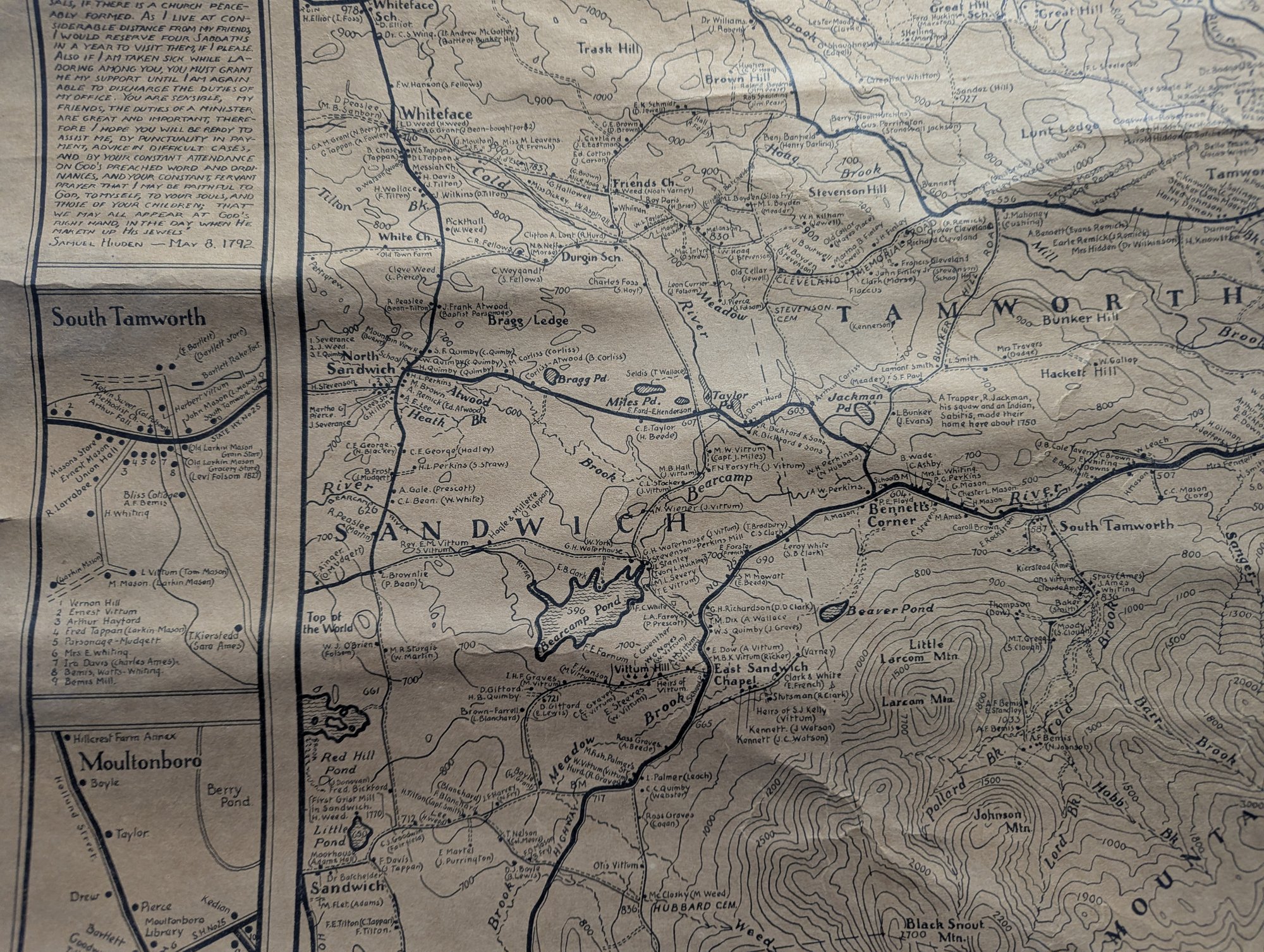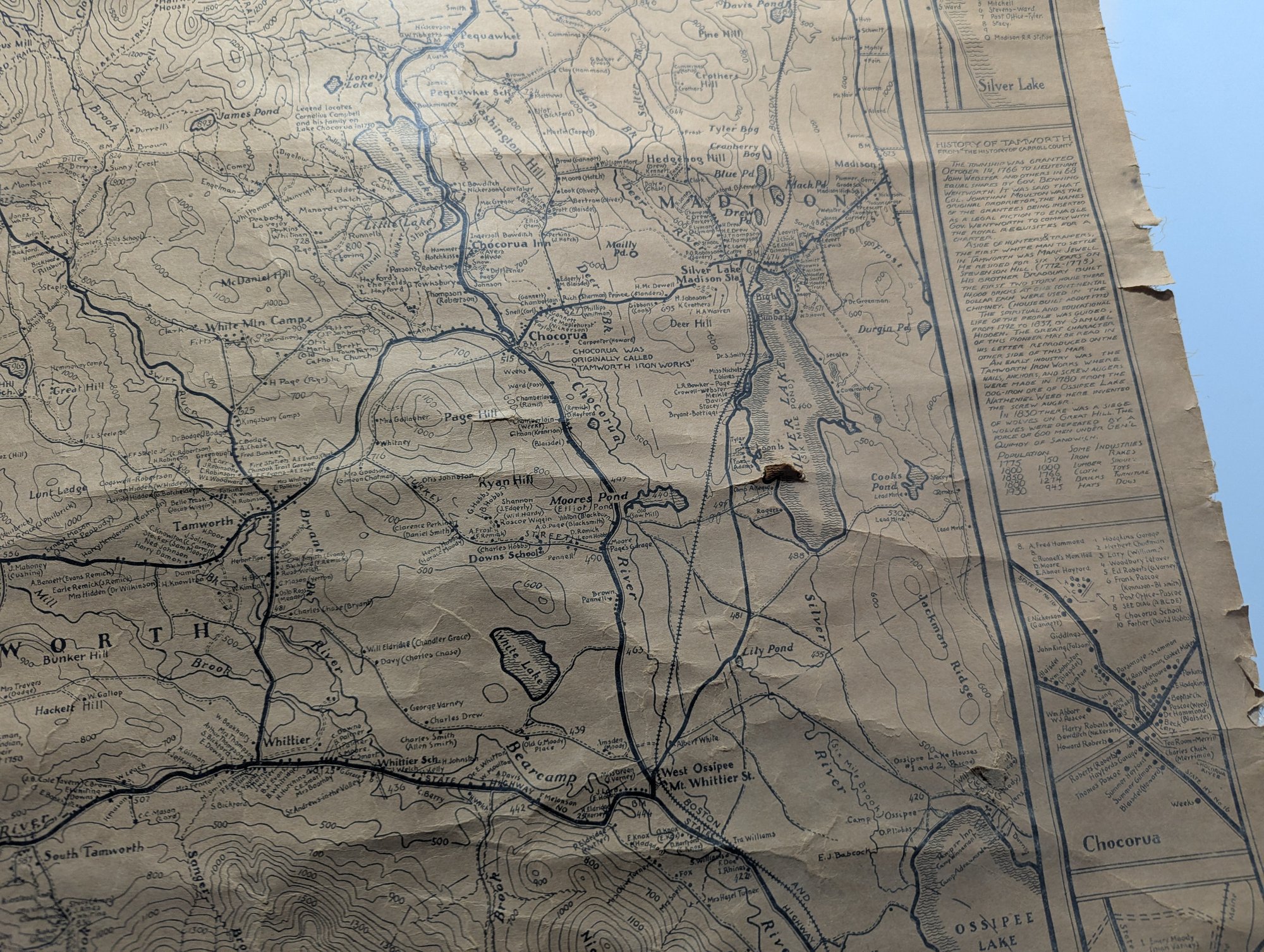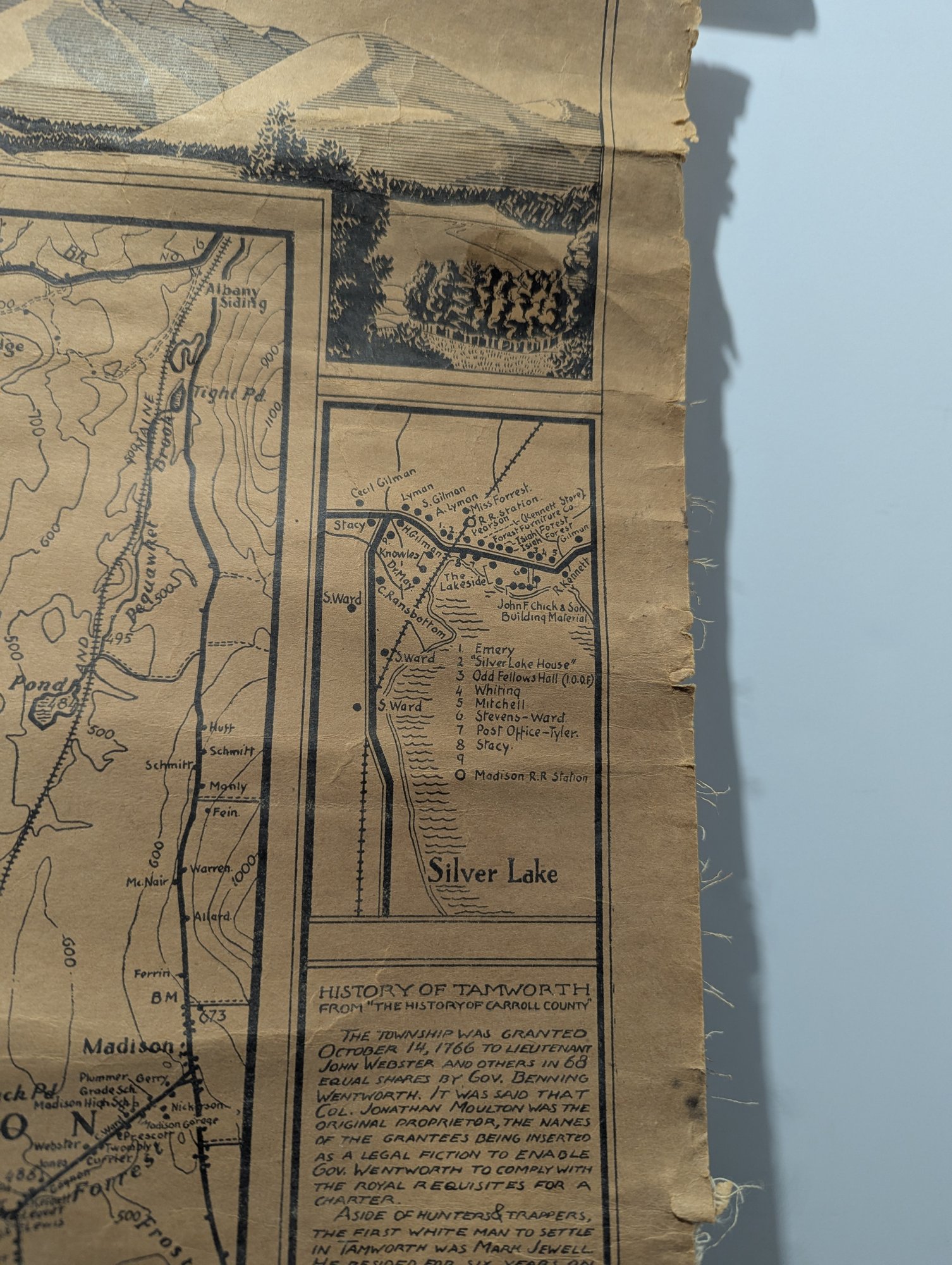 1932 Topographical Wall Map of Tamworth New Hampshire by Peter Kilham & Frank Hinder