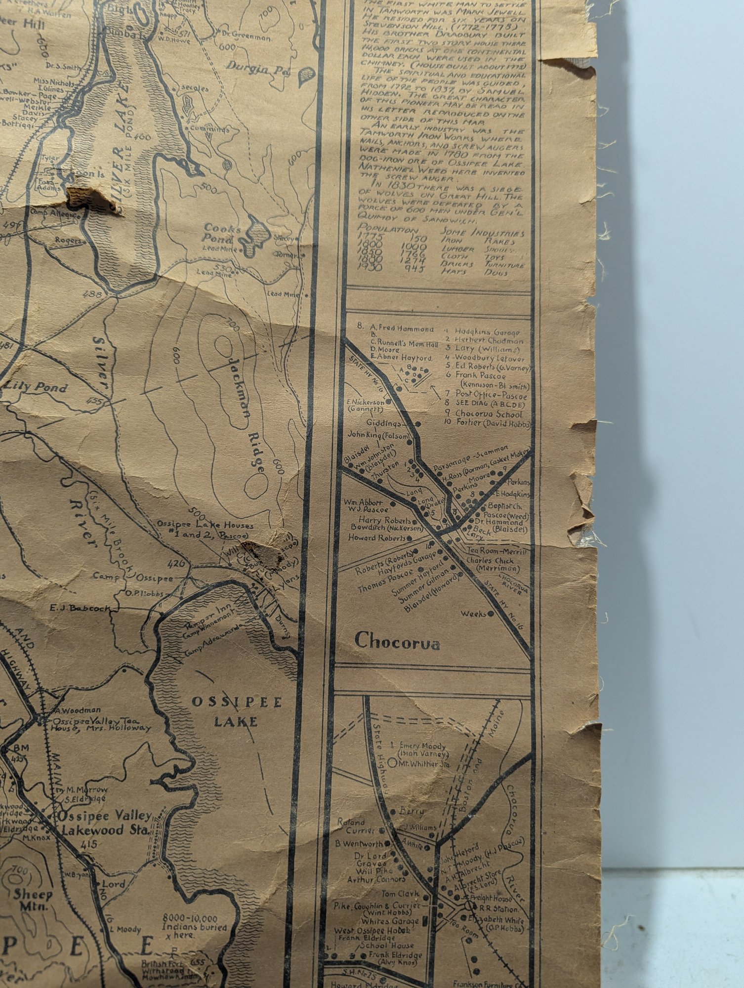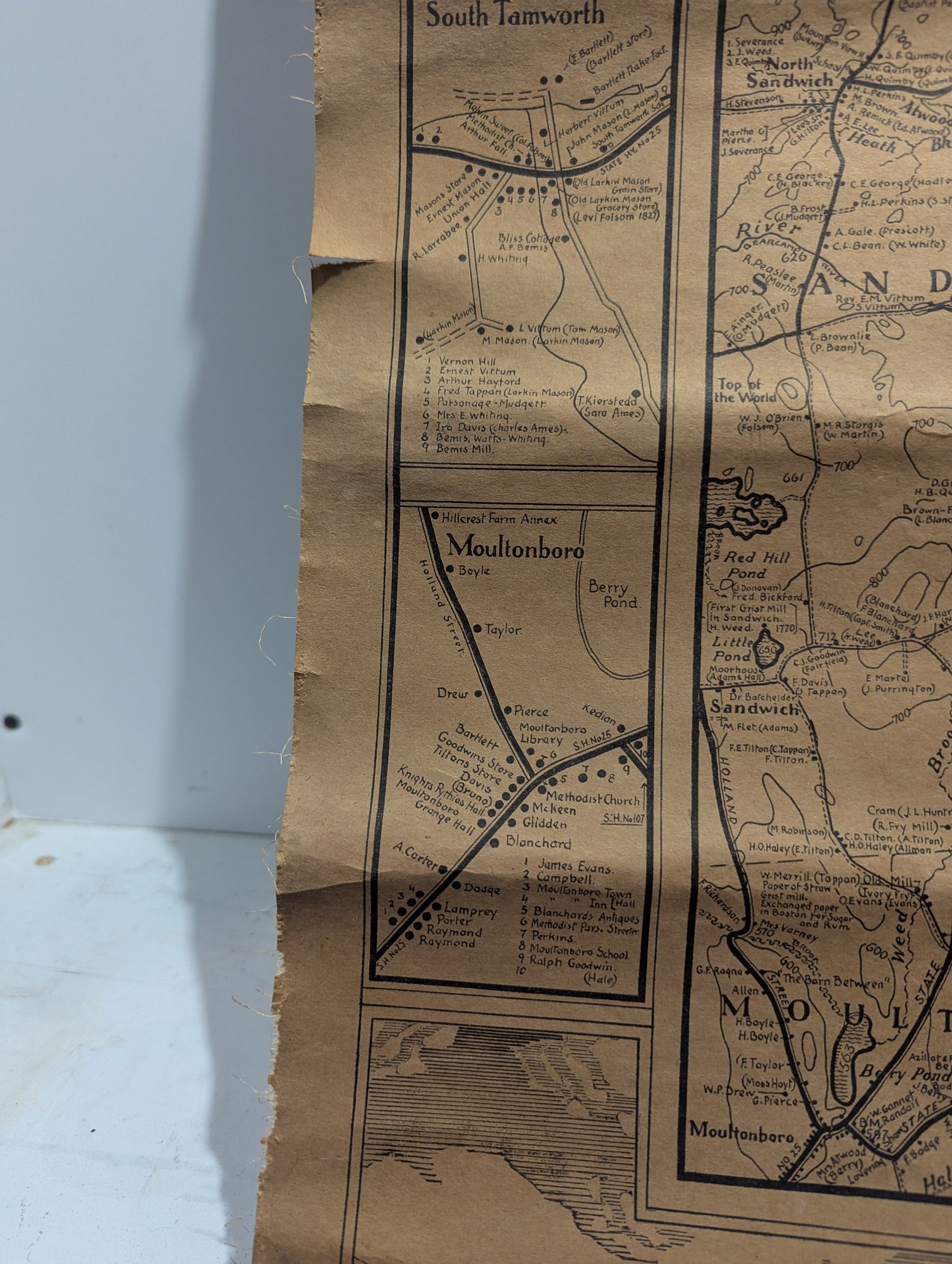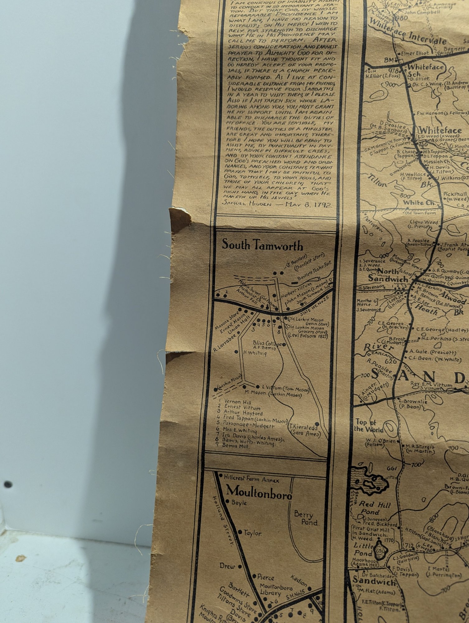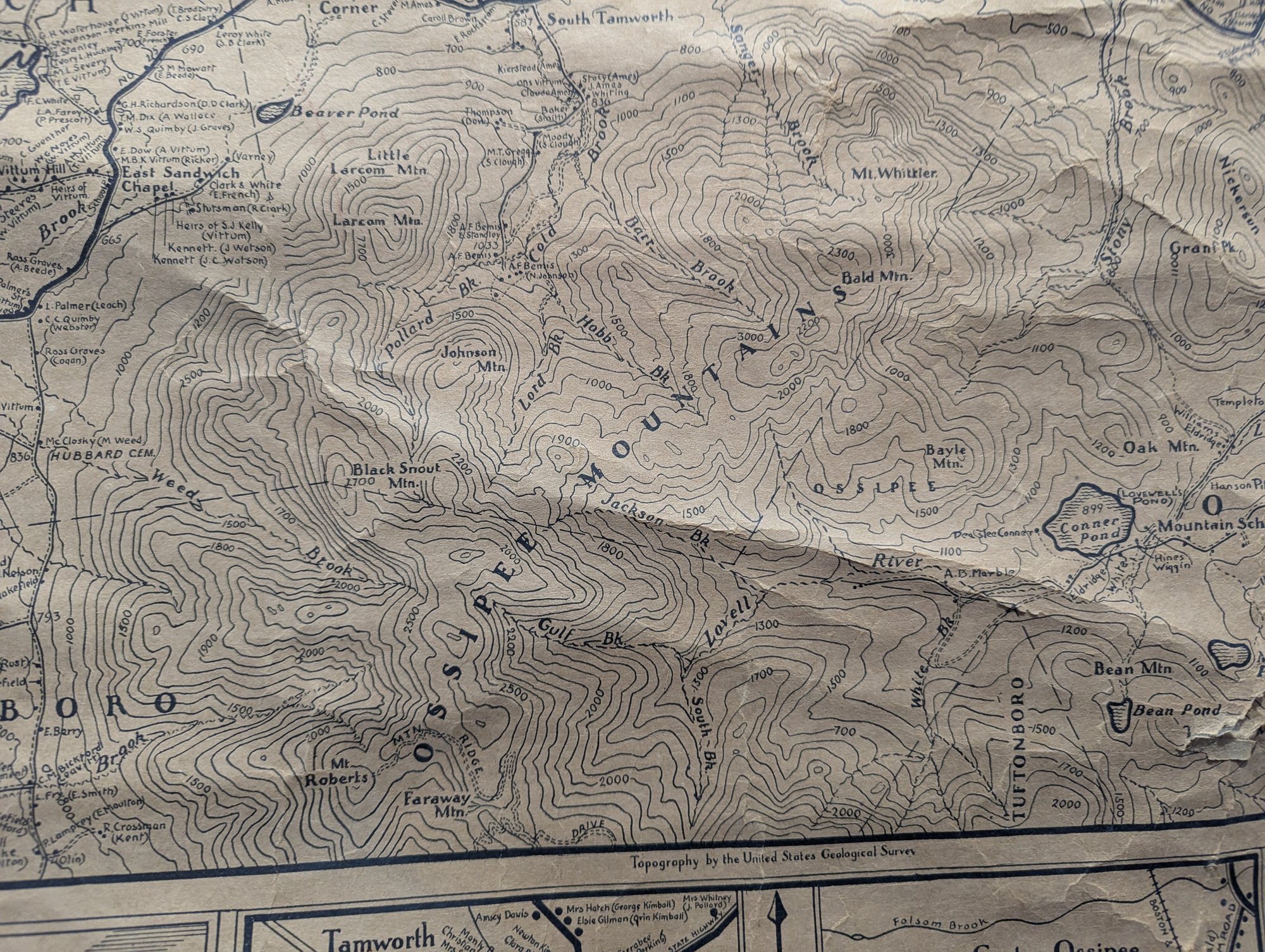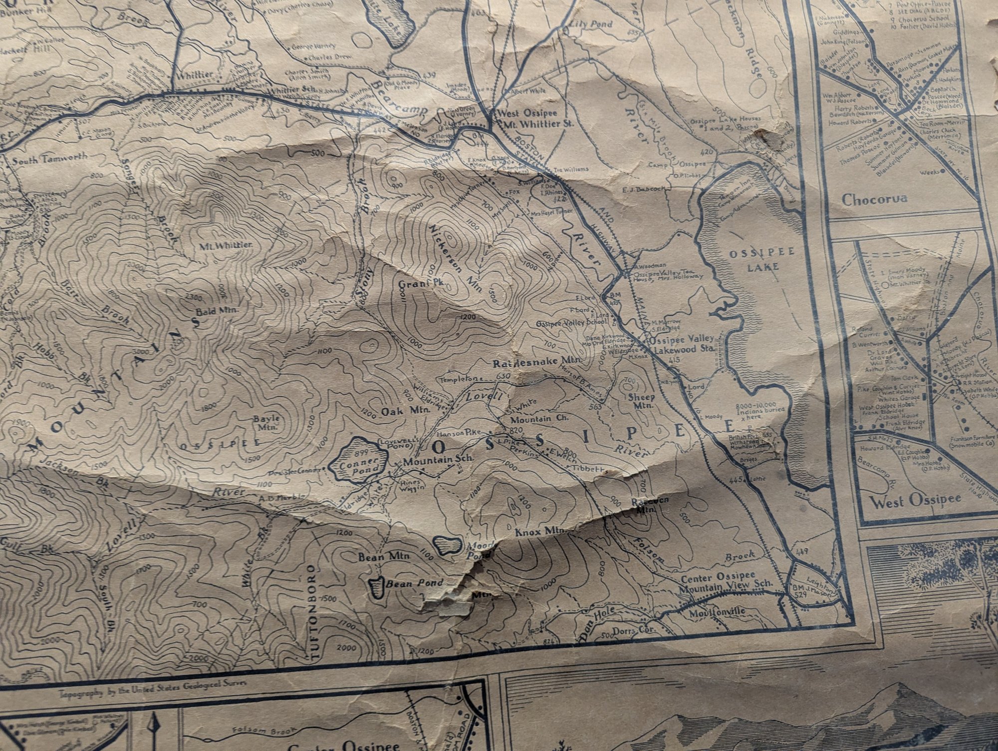 1932 Topographical Wall Map of Tamworth New Hampshire by Peter Kilham & Frank Hinder