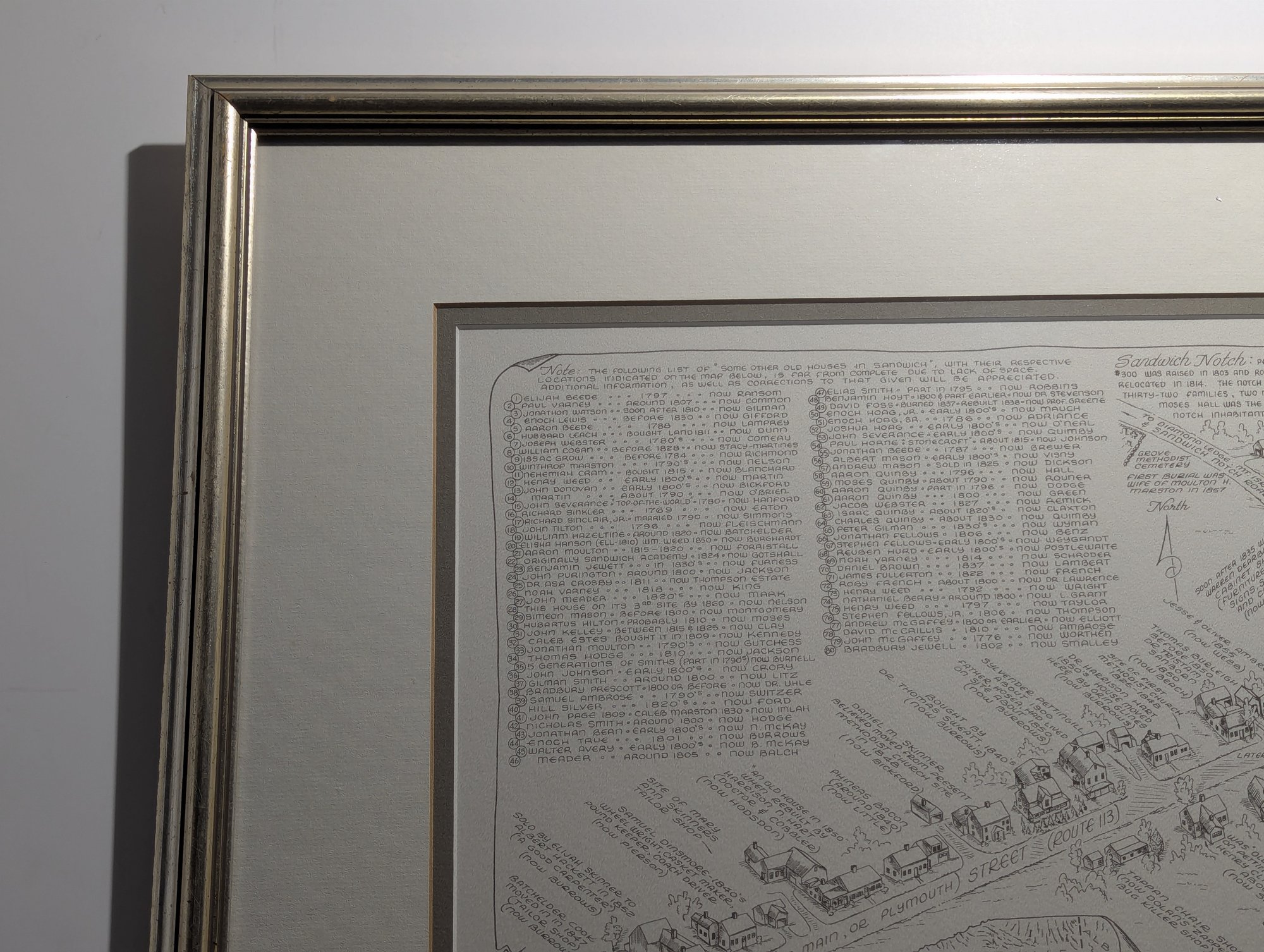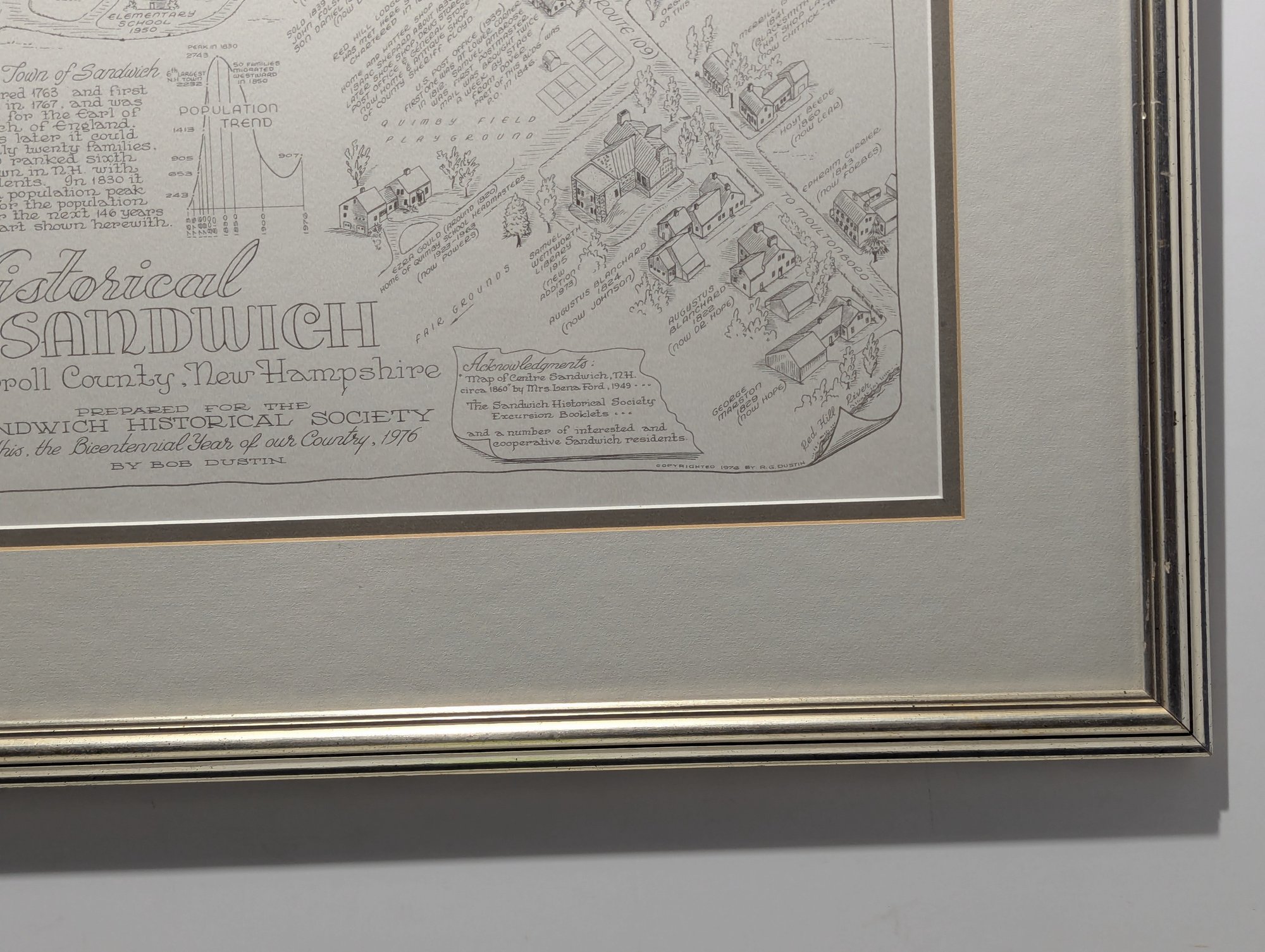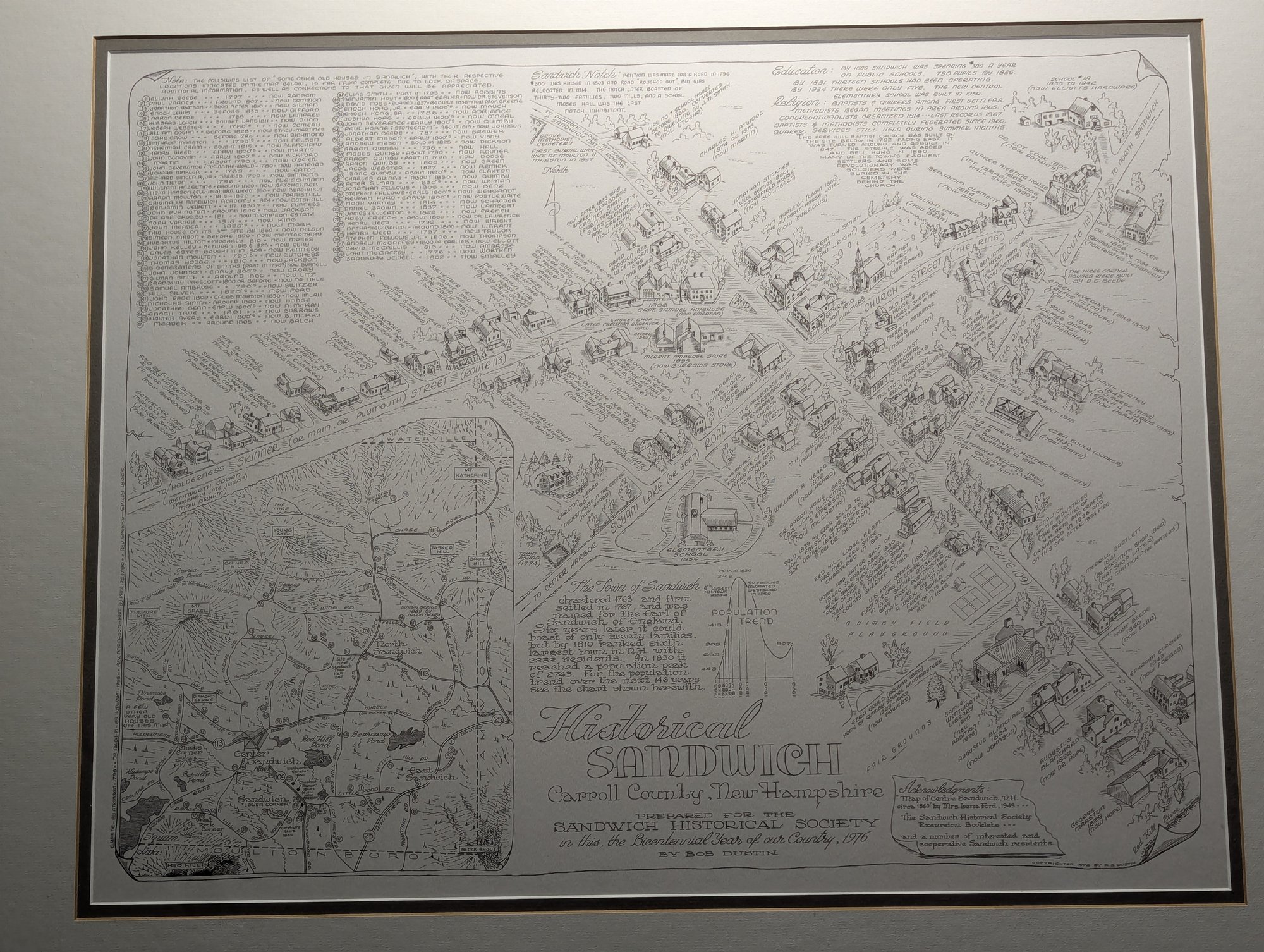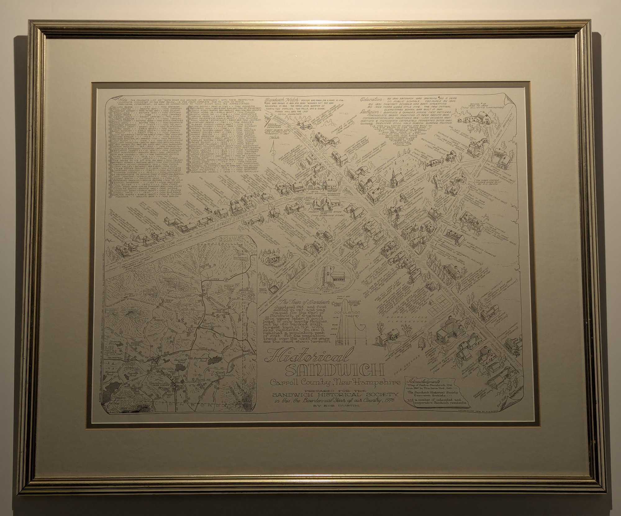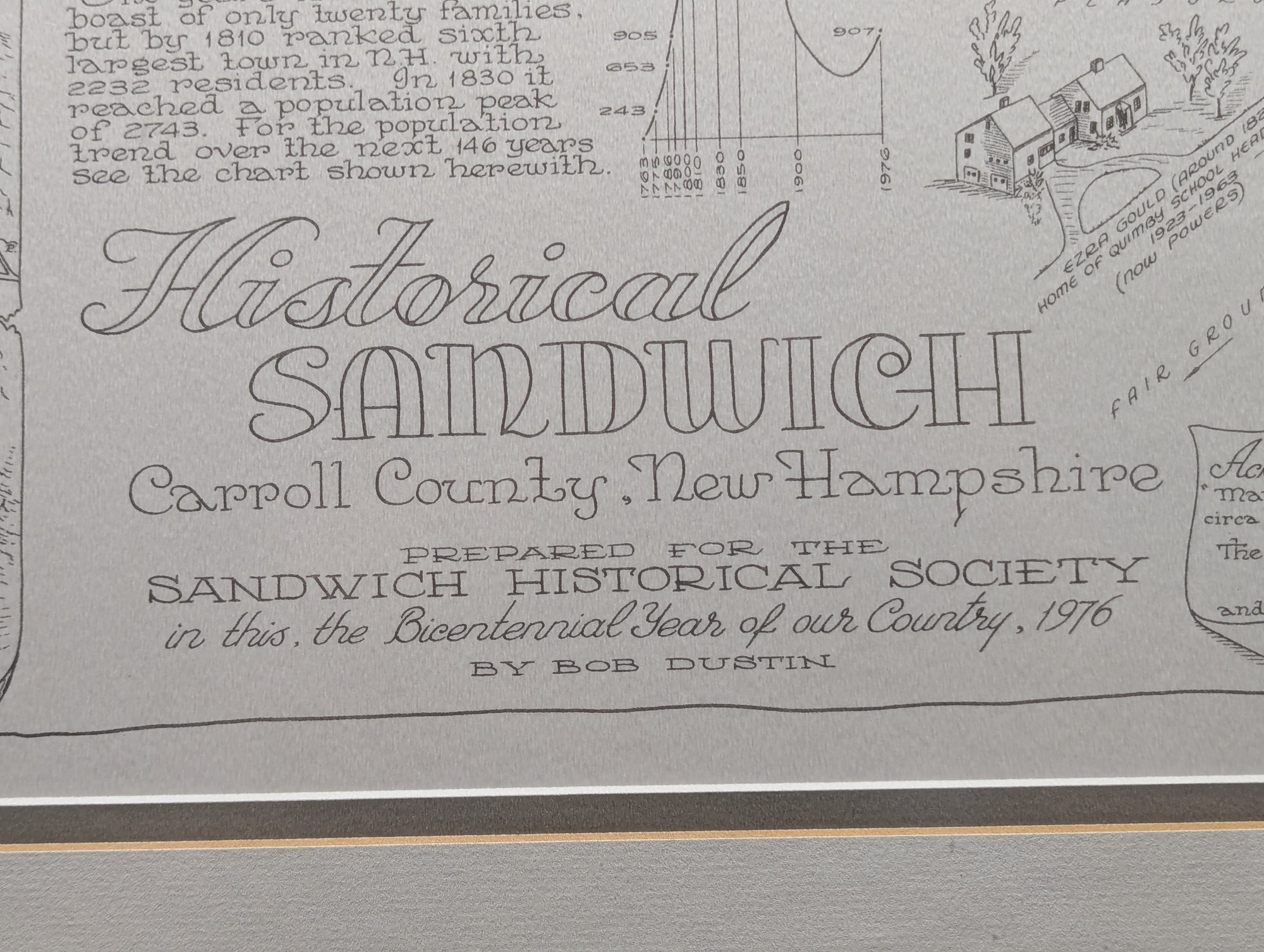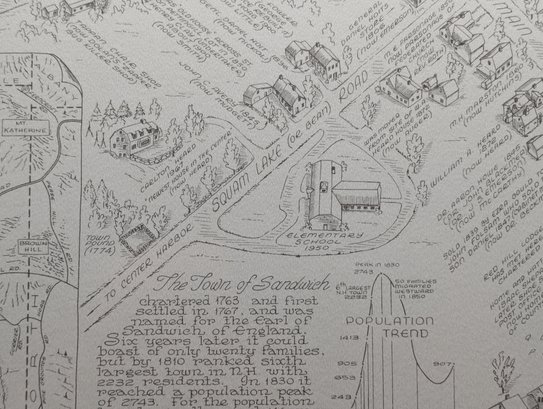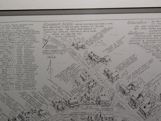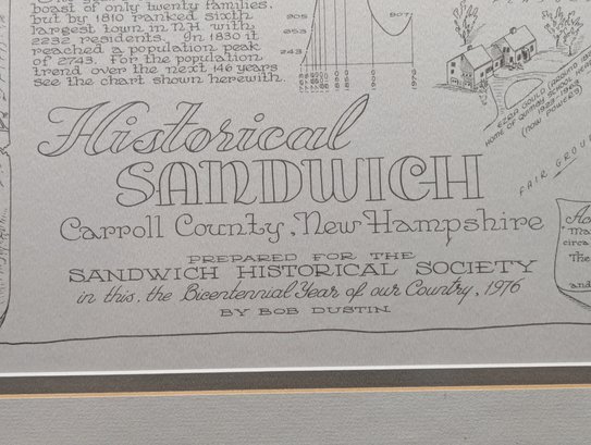 1976 Nicely Framed Map of Historical Sandwich, New Hampshire by Bob Dustin