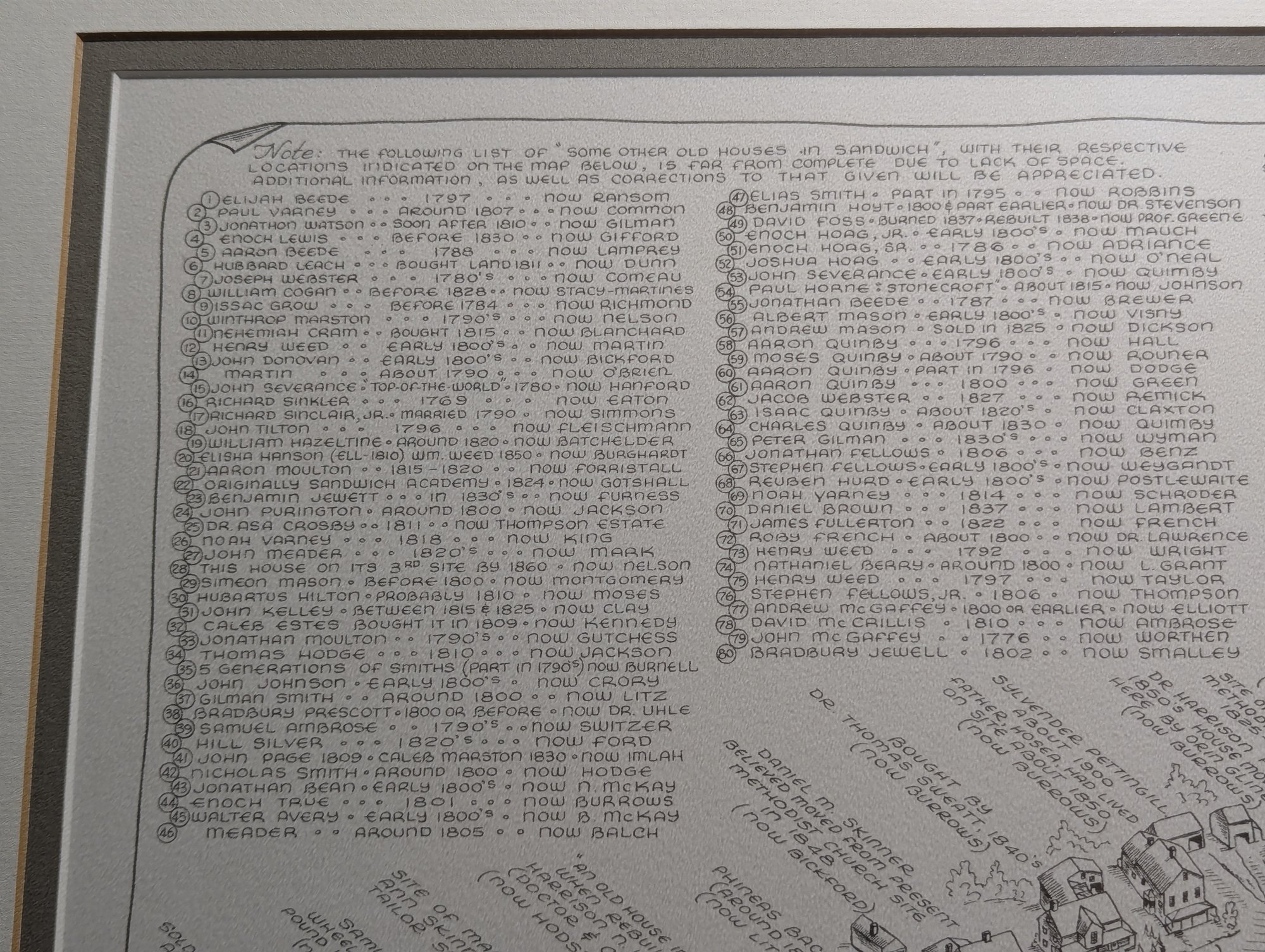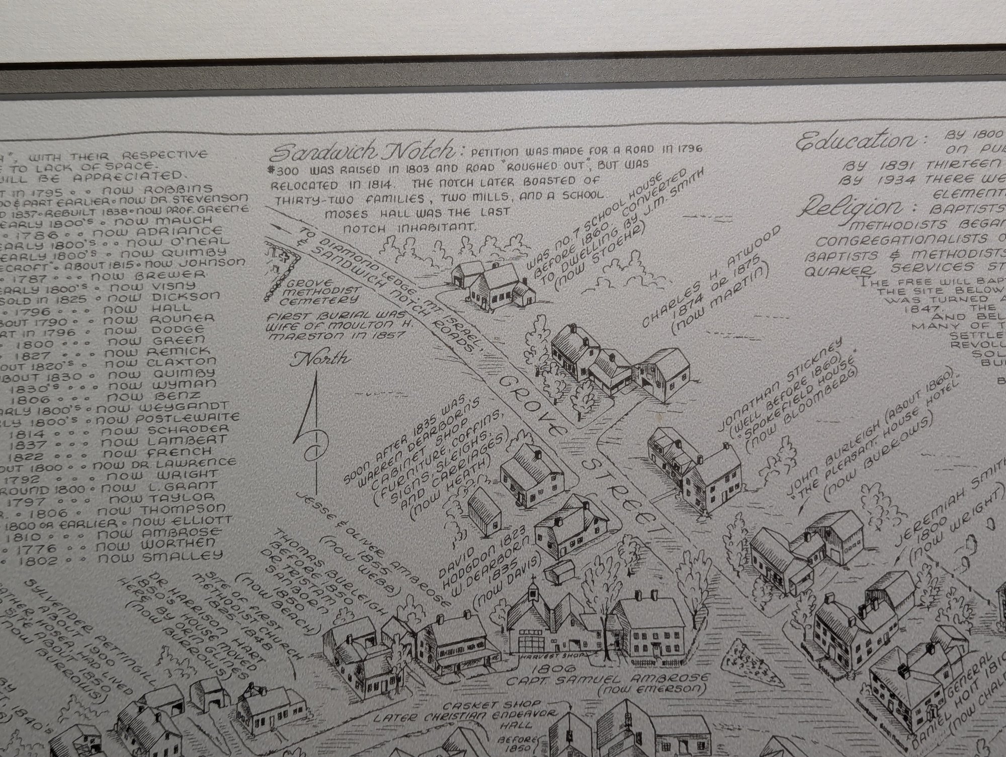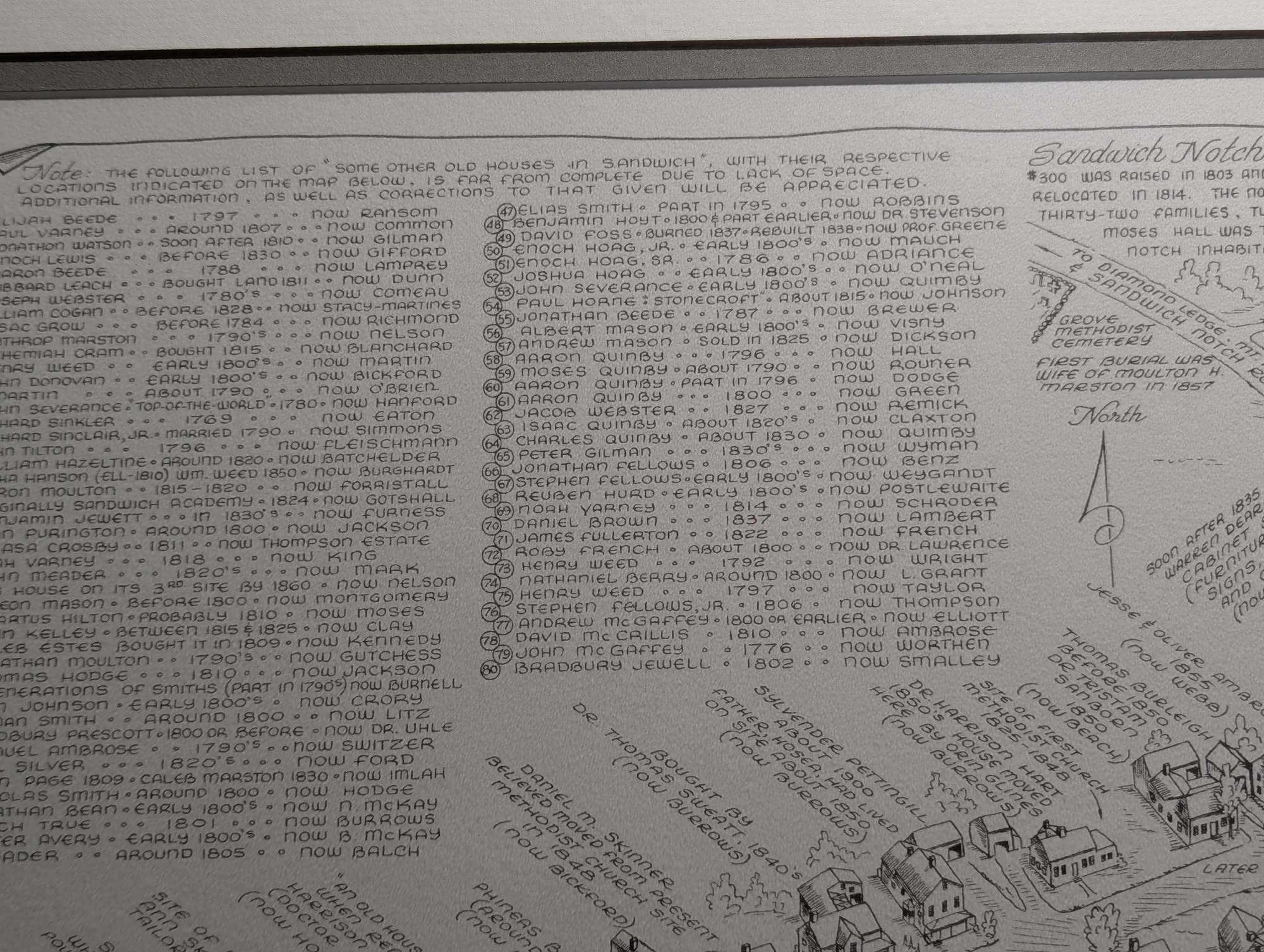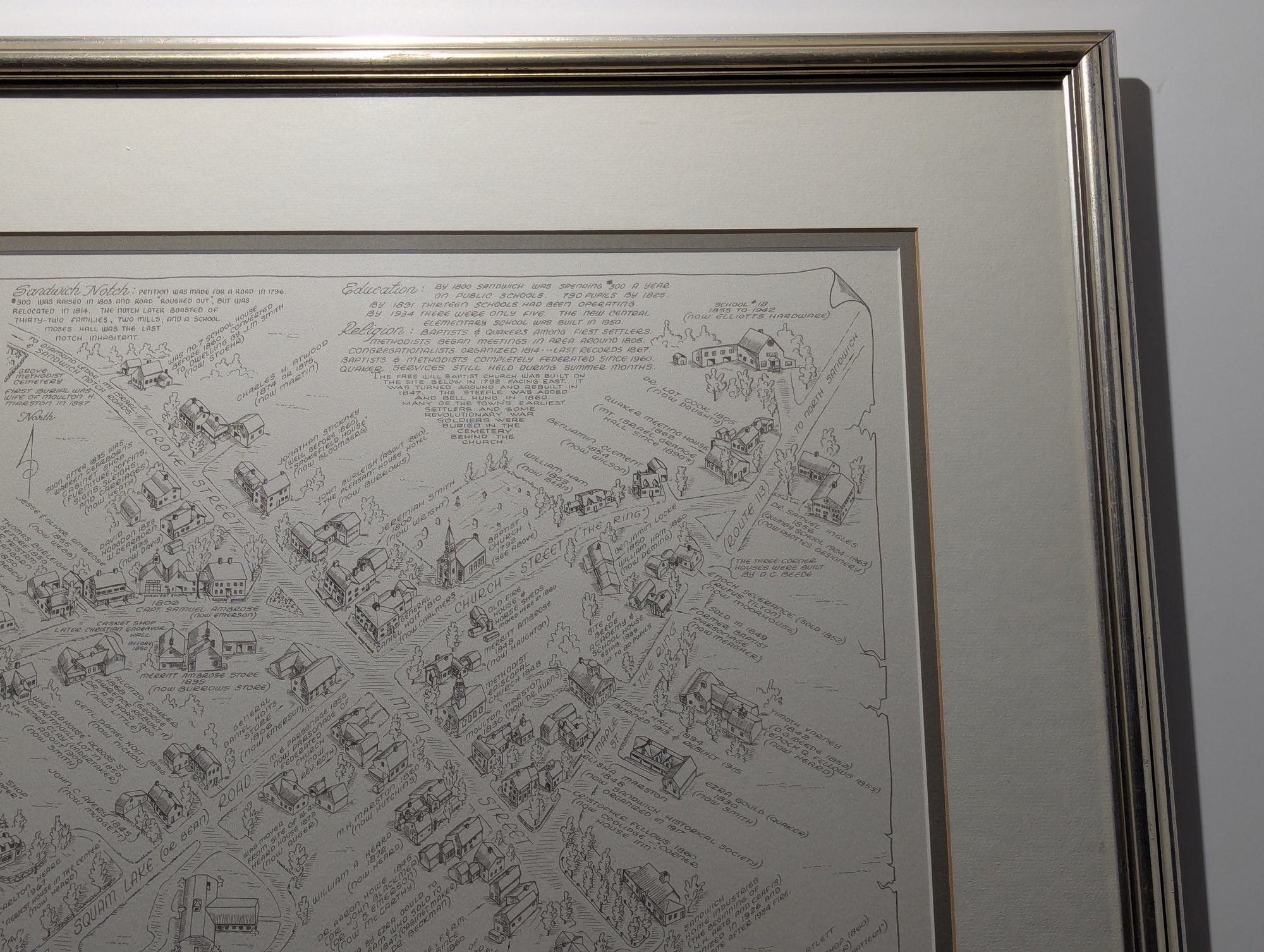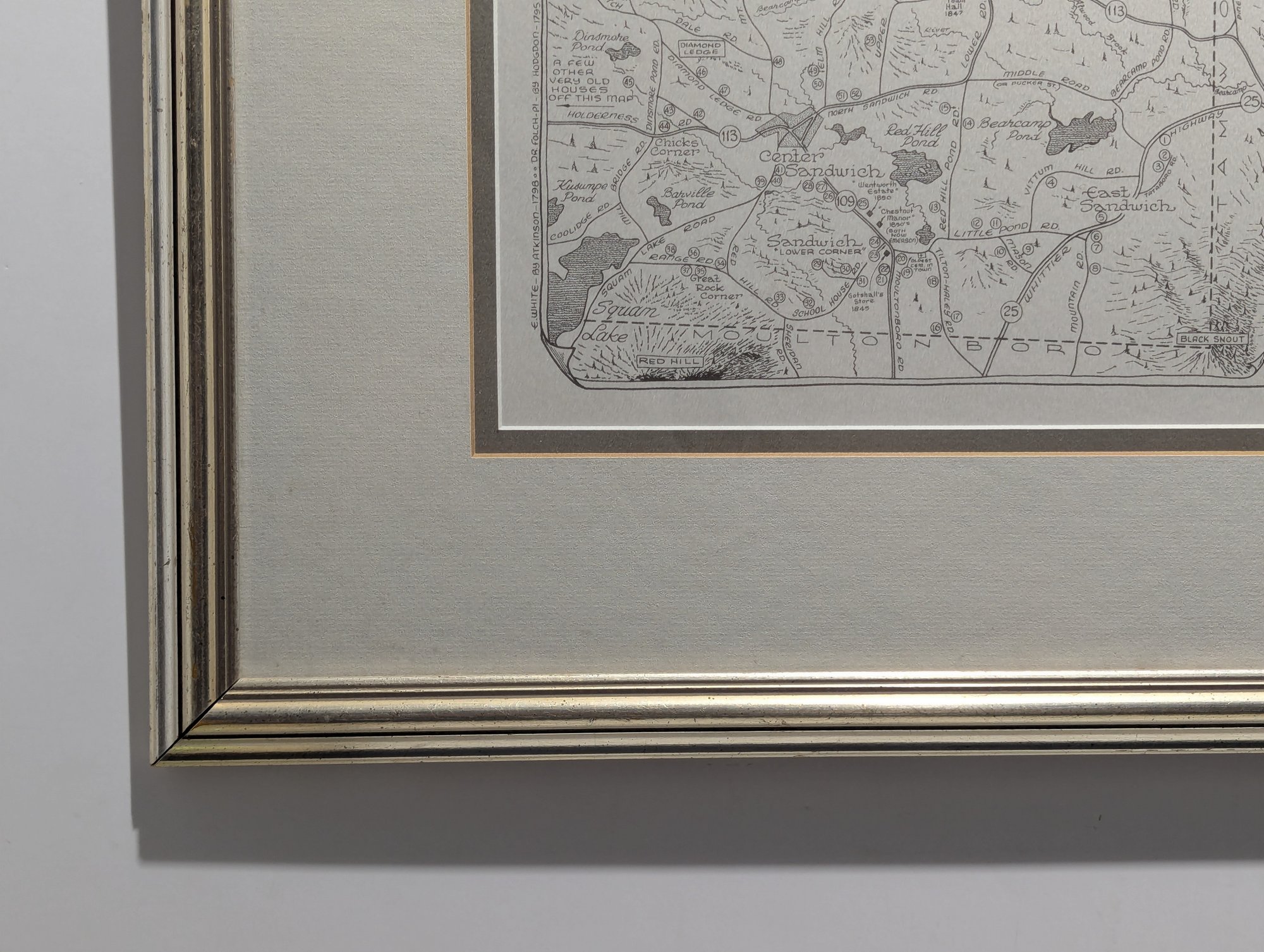 1976 Nicely Framed Map of Historical Sandwich, New Hampshire by Bob Dustin