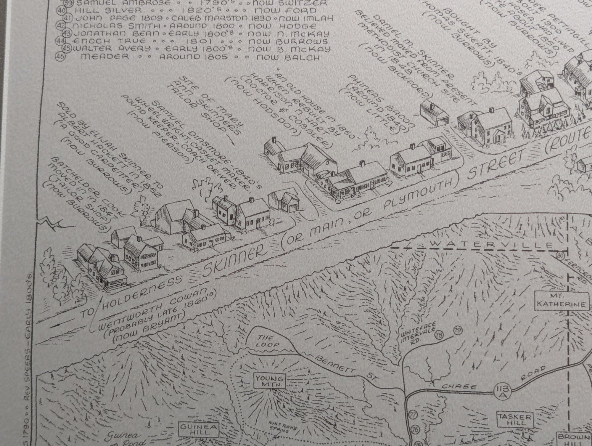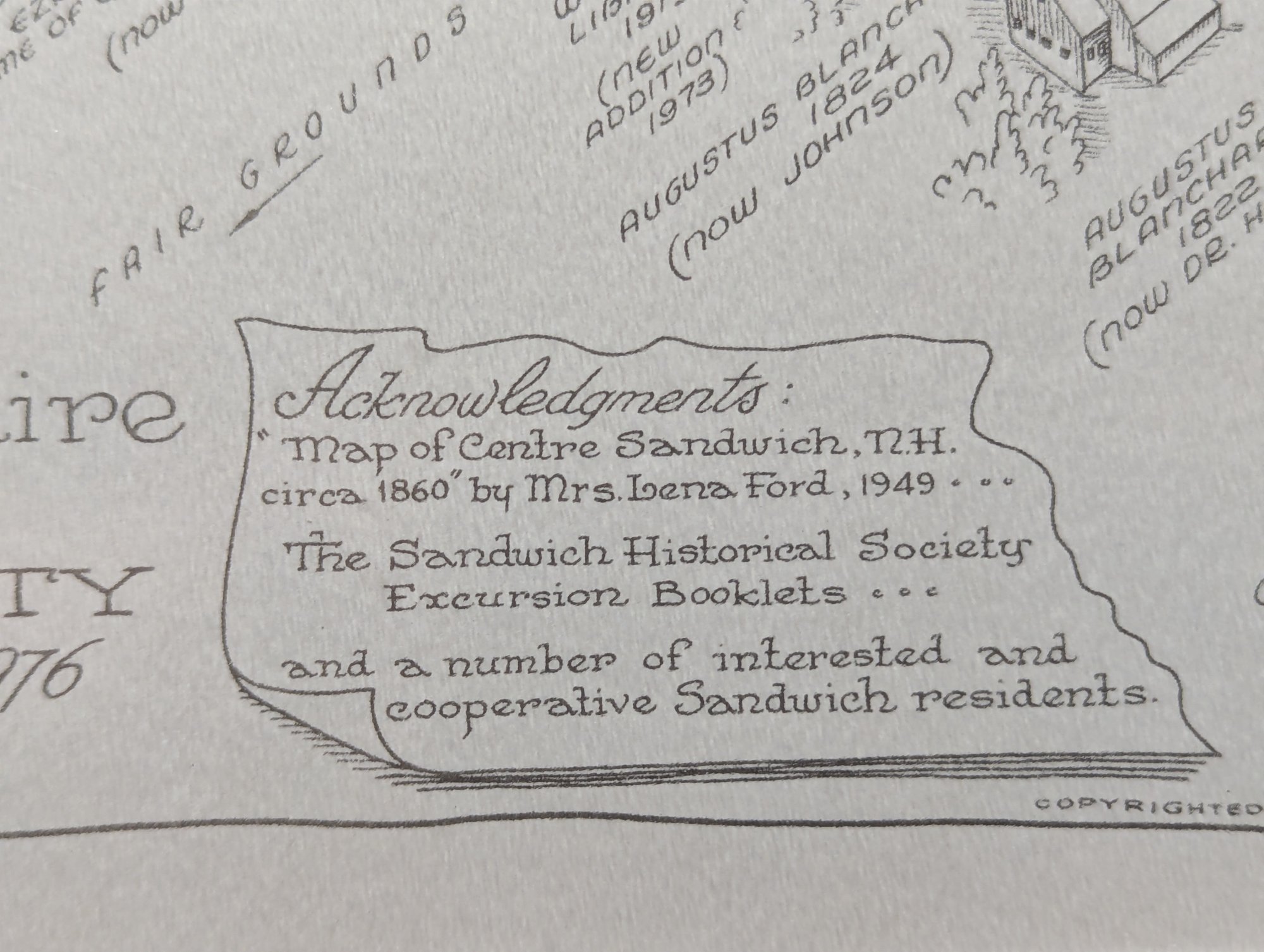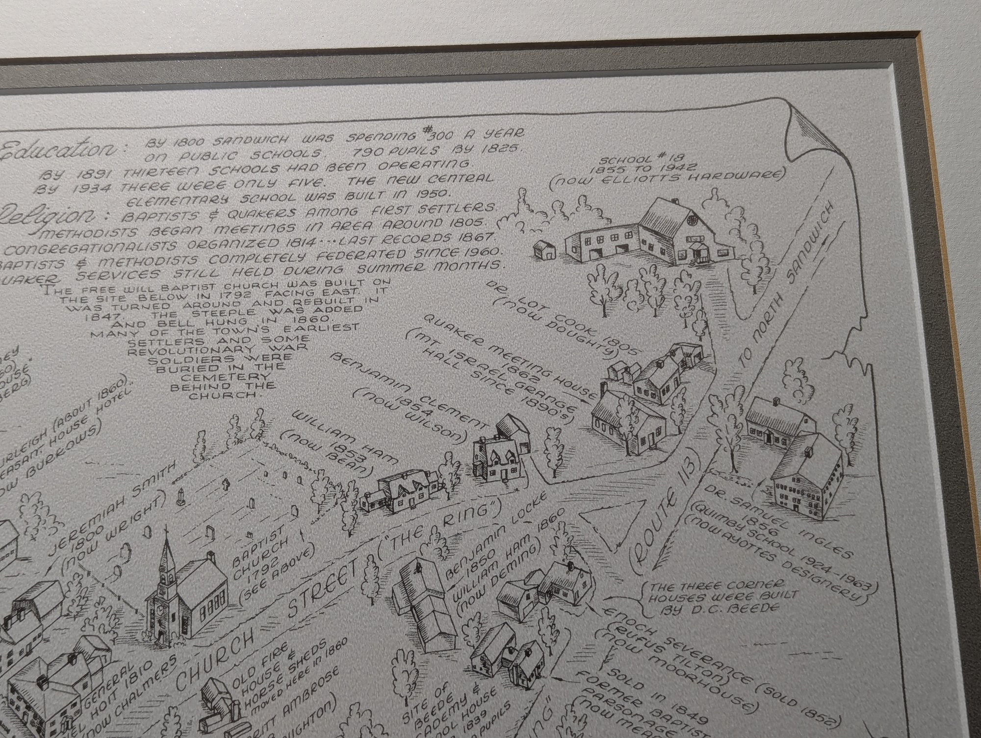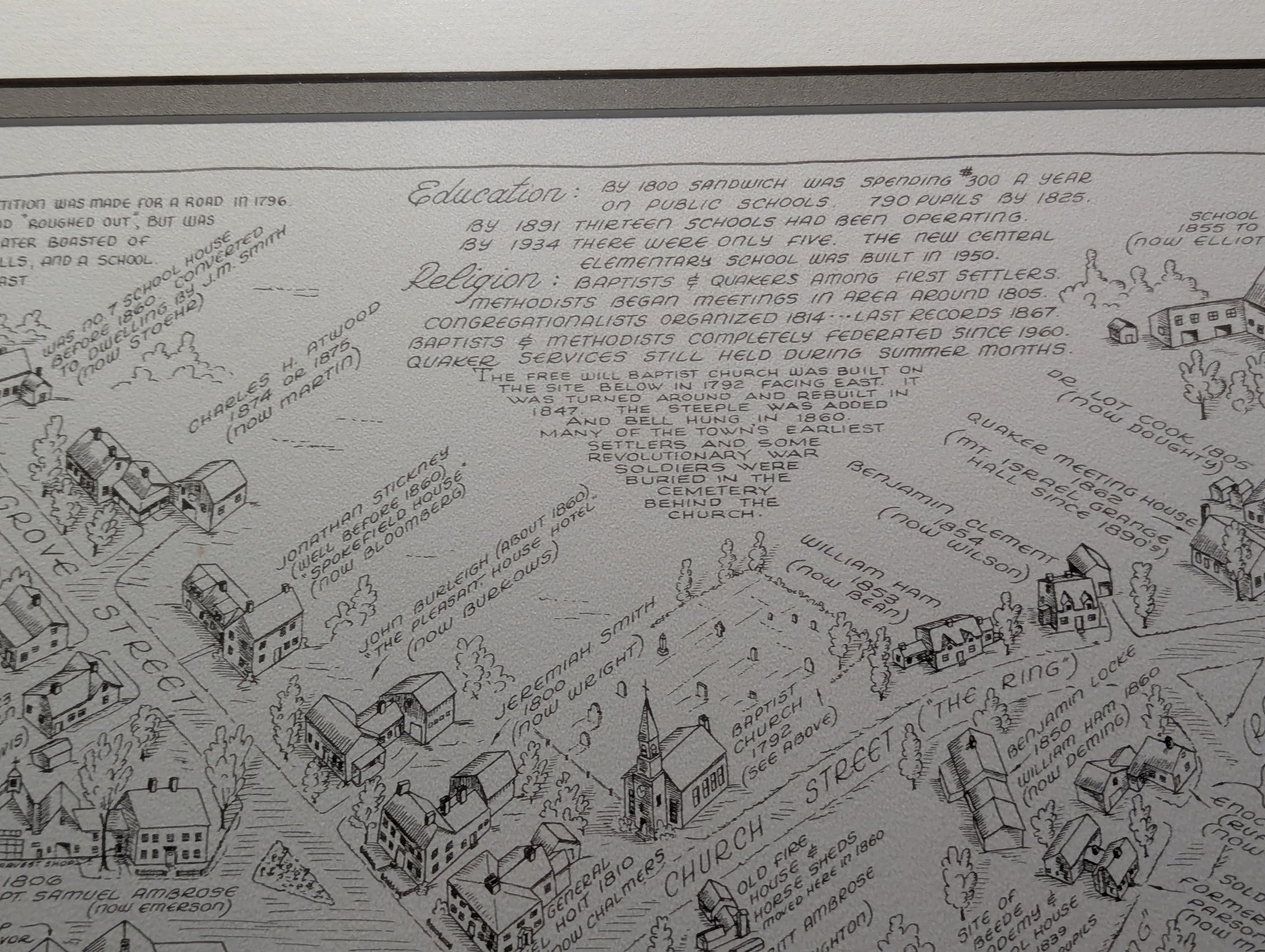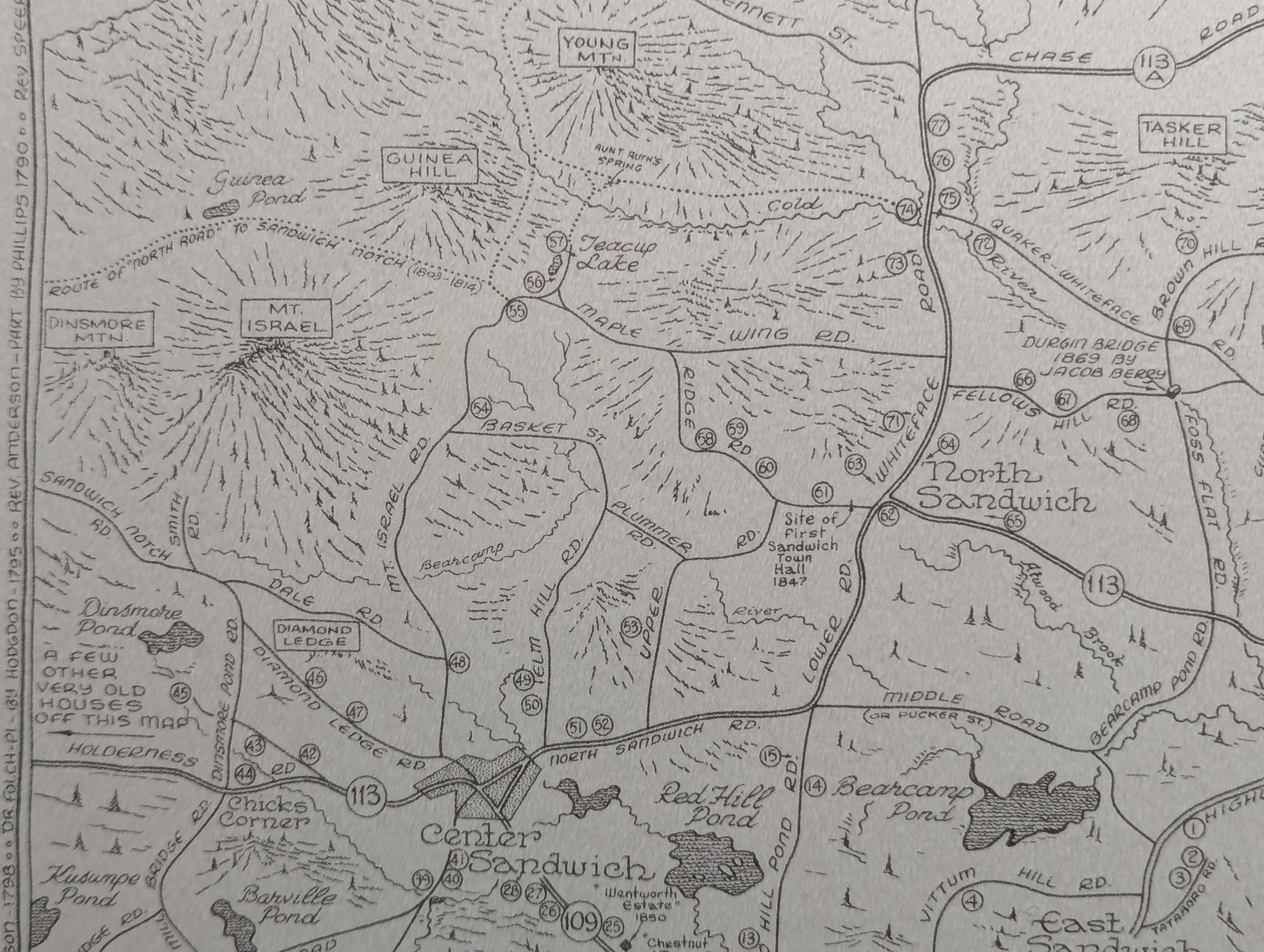 1976 Nicely Framed Map of Historical Sandwich, New Hampshire by Bob Dustin