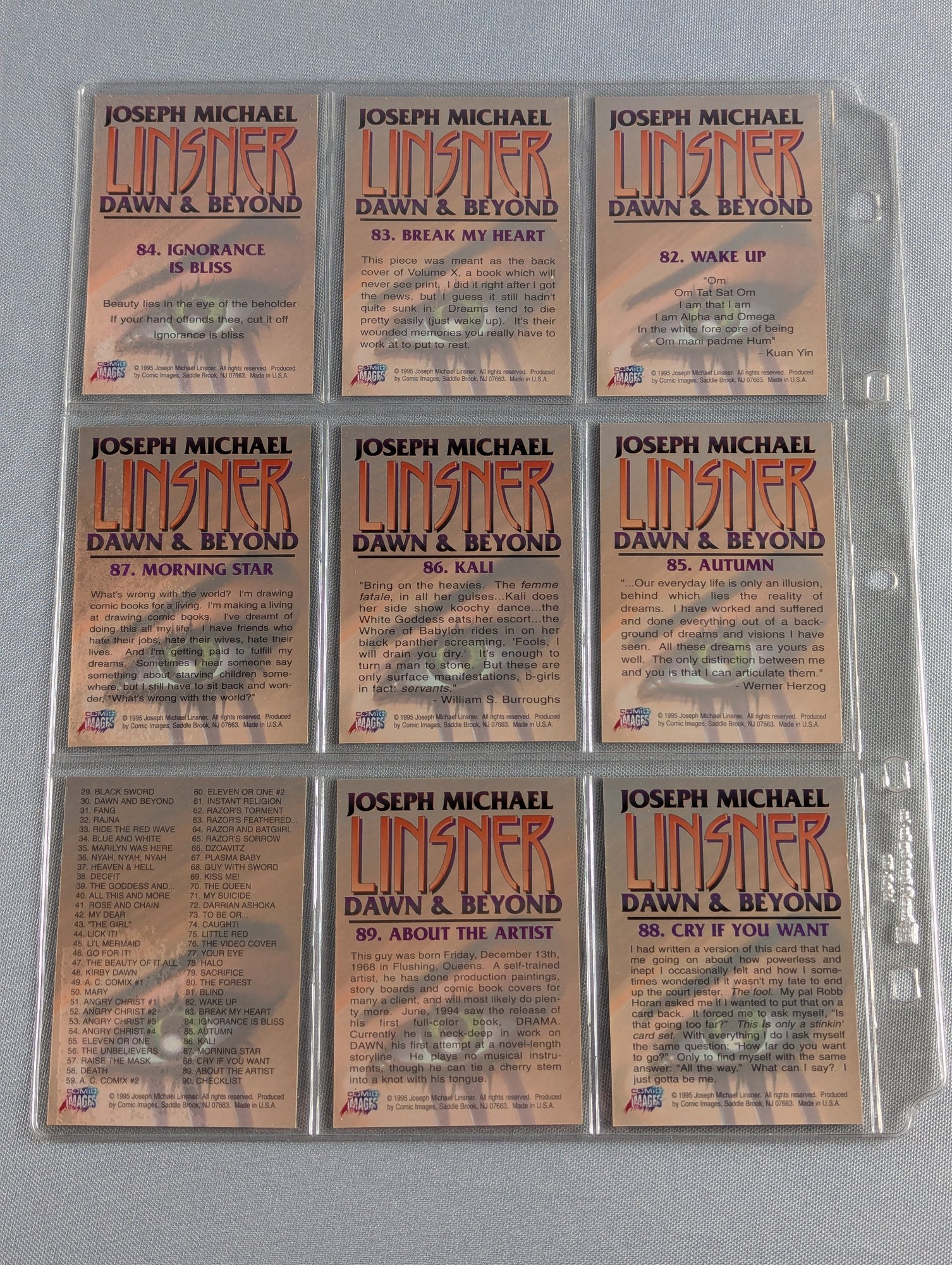 1995 Joseph Michael Linser - Dawn & Beyond - Collector's Cards Complete Set 1-90