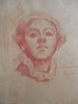 19th Century Conte Crayon Drawing of A Woman. Dimensions: 9" x 11".