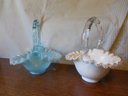 2-Piece Lot of Fenton Handled Baskets, One is Silver Crest, One is Aqua