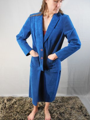 2 Piece Set – Ultrasuede Brand Fabric Blue Color Skirt & Jacket