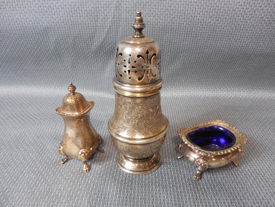 3 Piece Set Birks Silver Plater Salt , Pepper & Muffineer