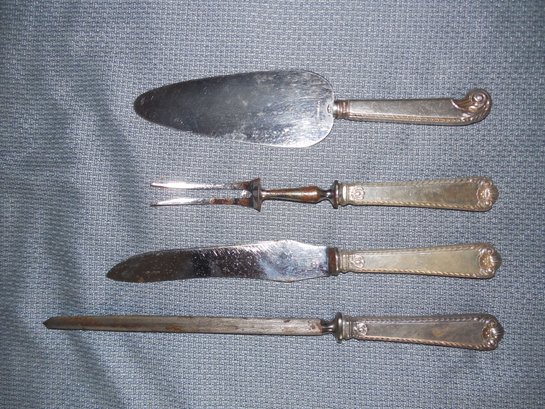 4 Piece Set Of Birks George II Sterling Silver Handle Serving Pieces - Carving Set & Cake Server