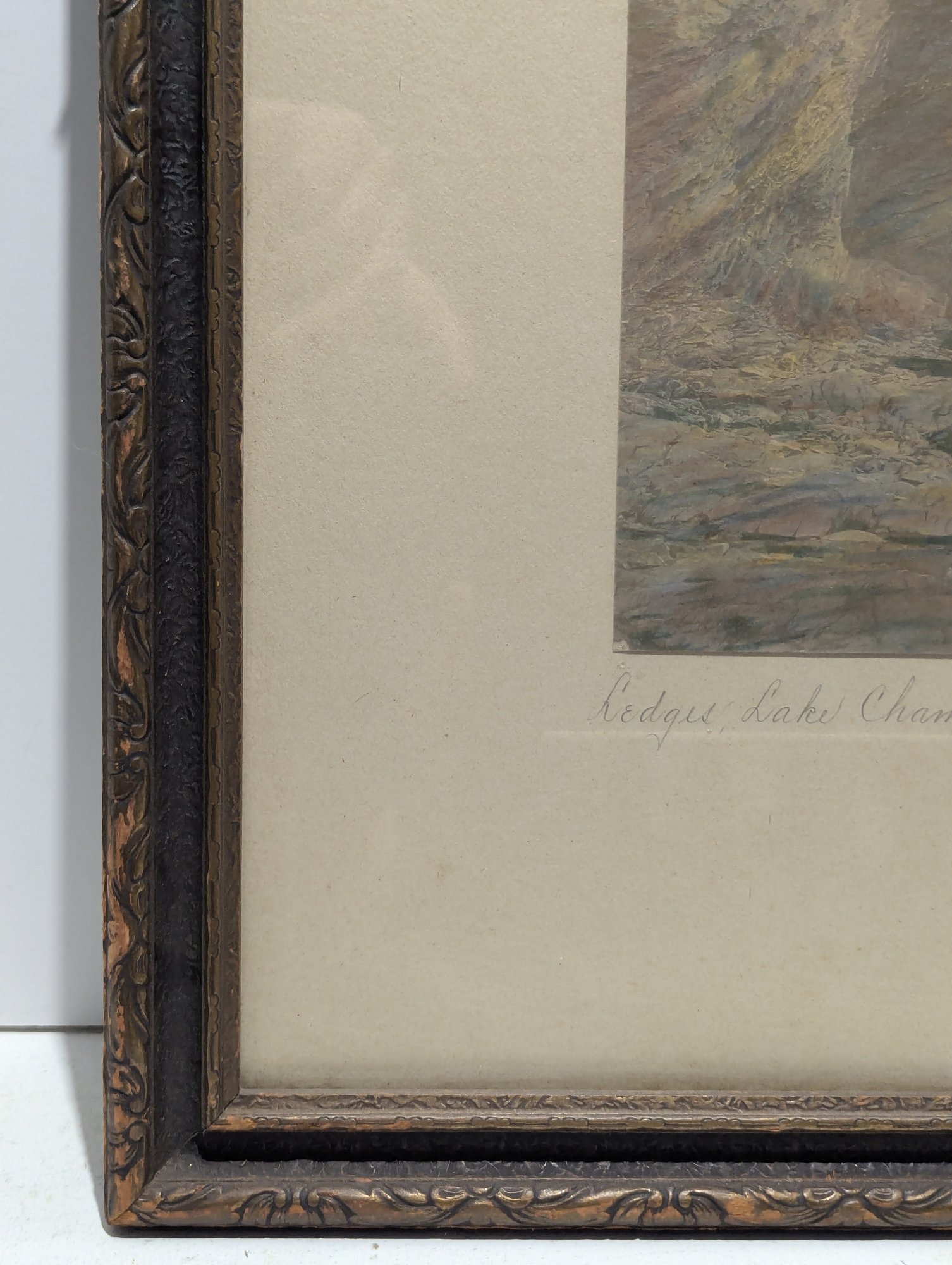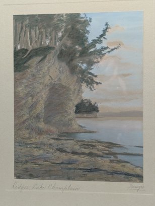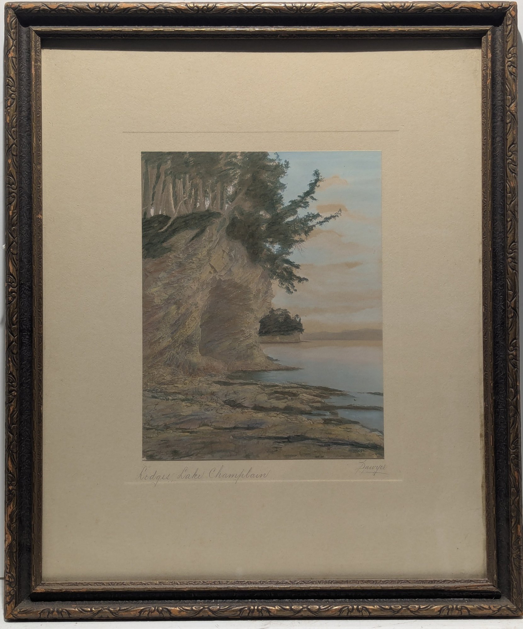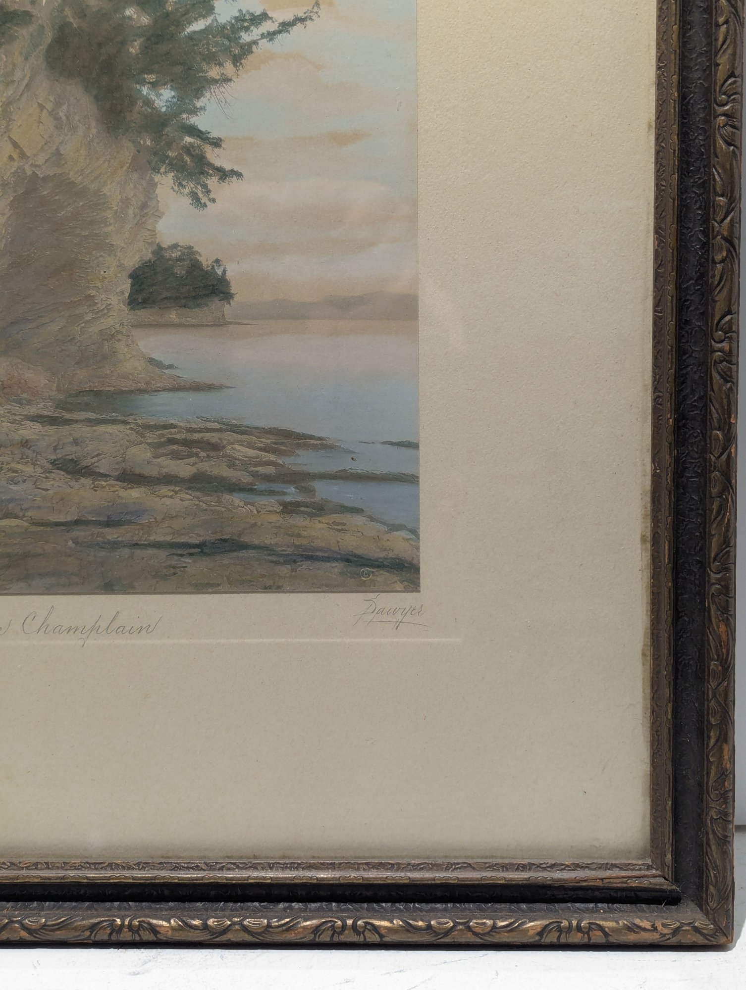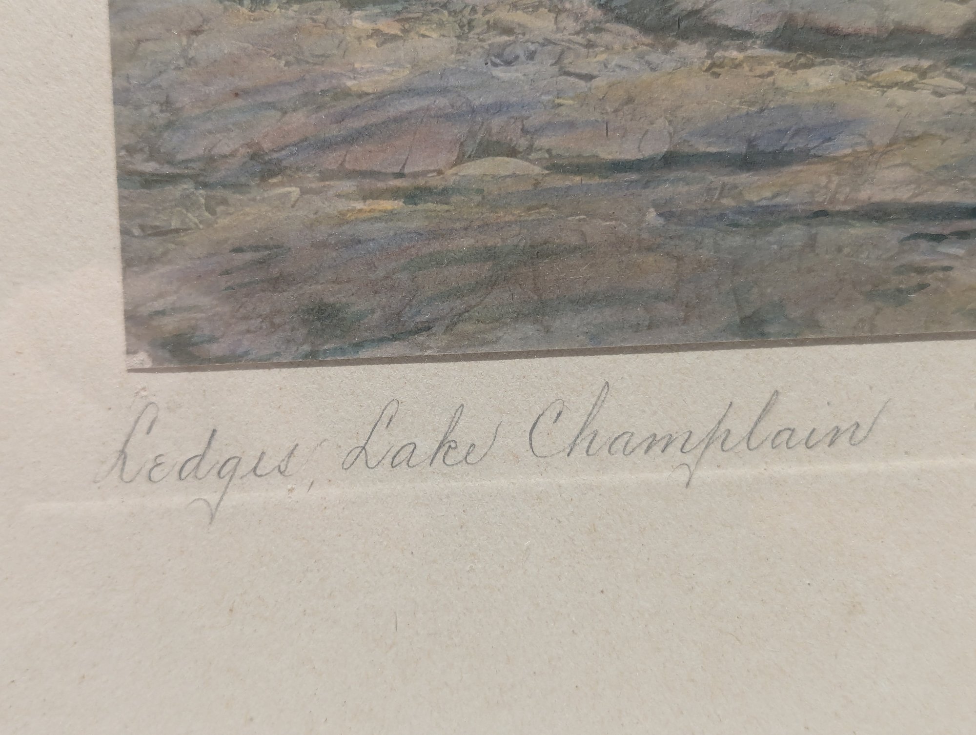 Antique Hand Colored Sawyer Photograph Ledges Lake Champlain