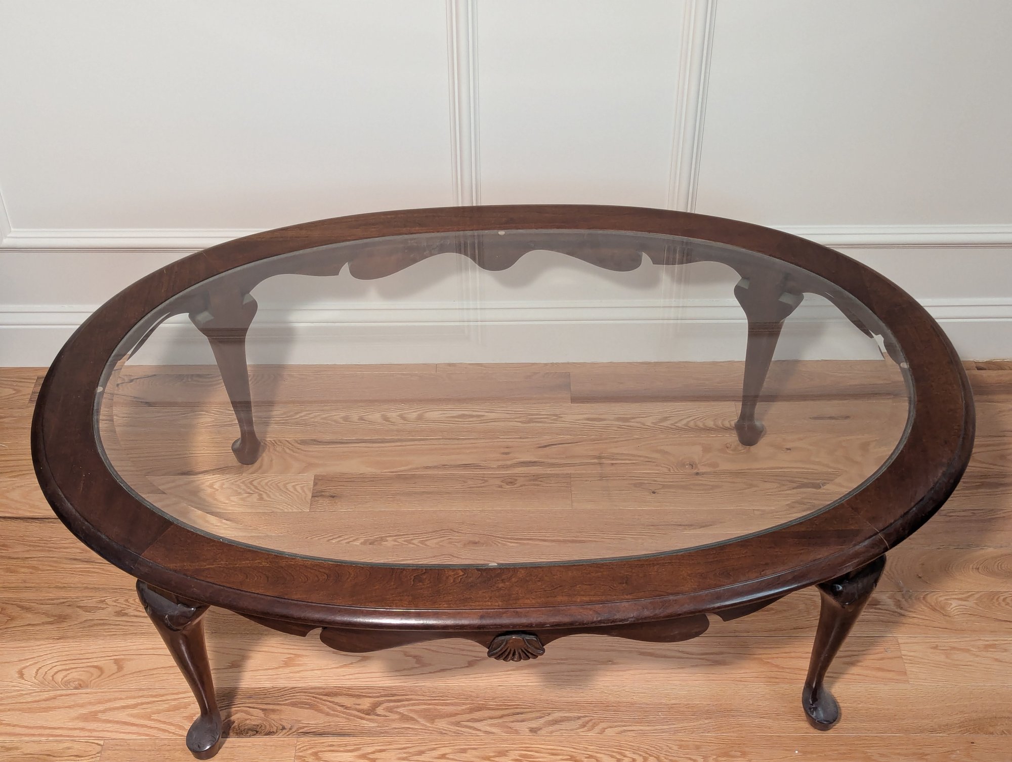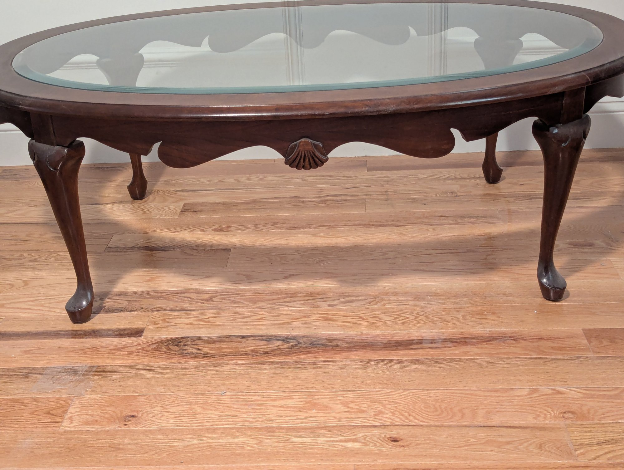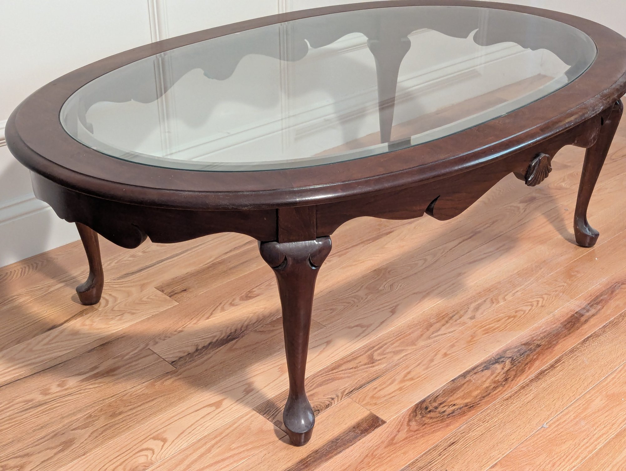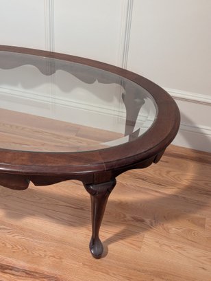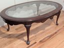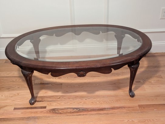 Beveled Glass Top Coffee Table with Queen Anne Legs & Shell Carving