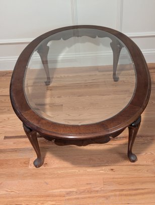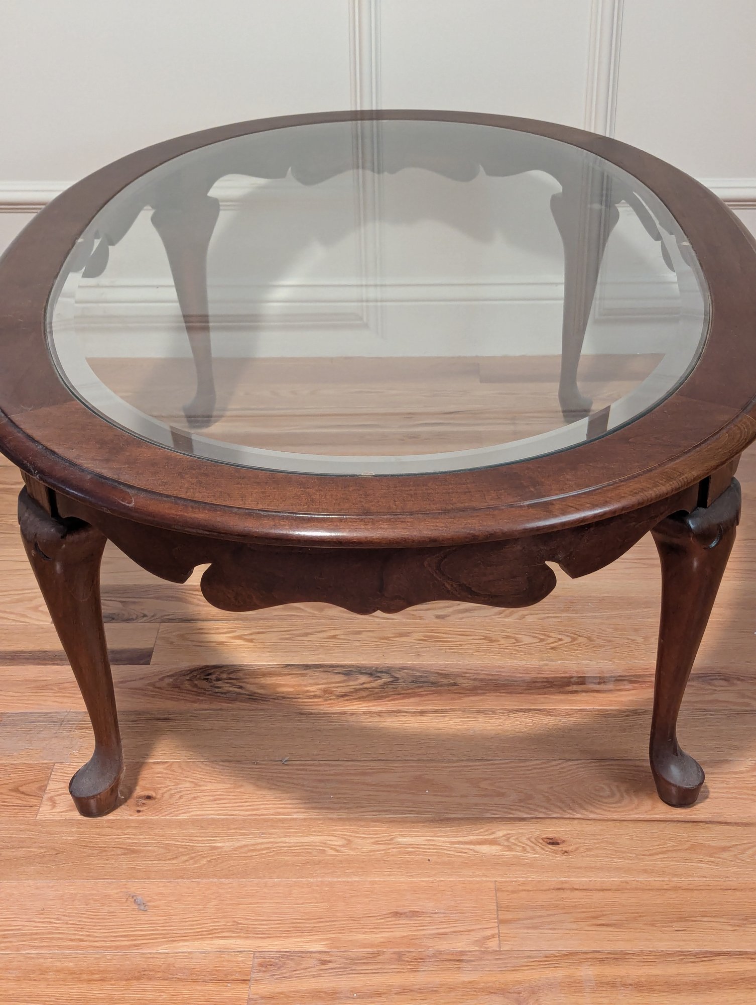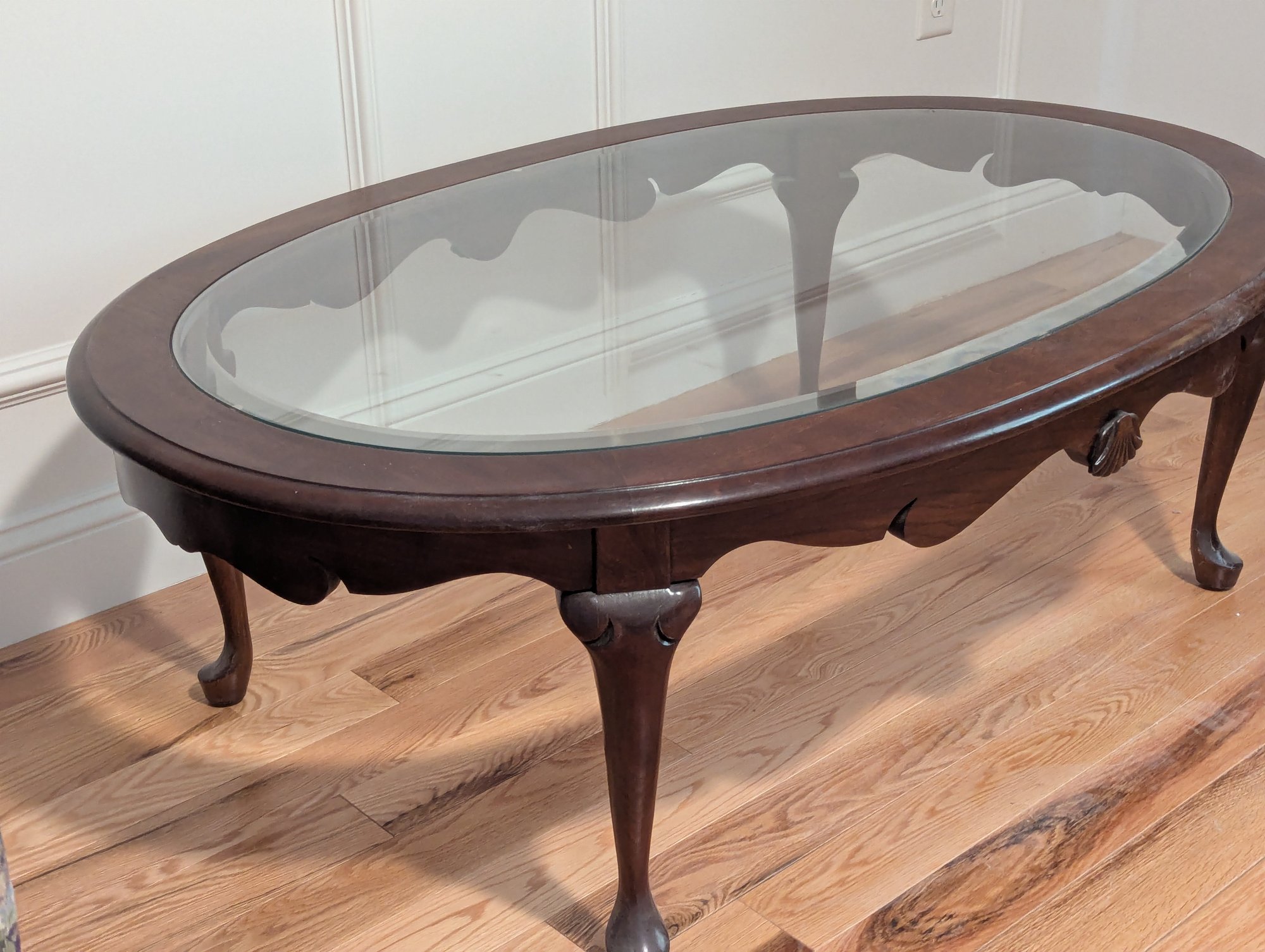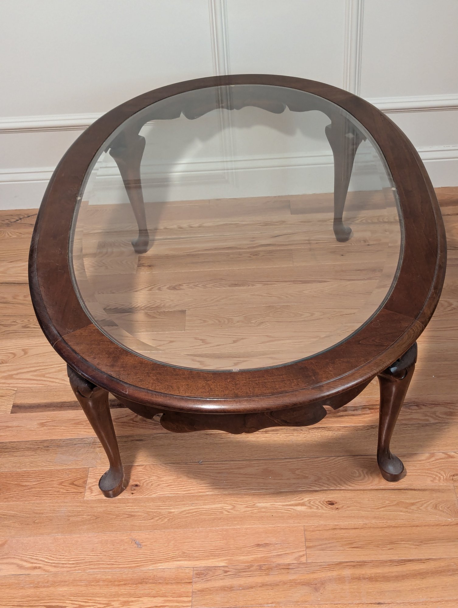 Beveled Glass Top Coffee Table with Queen Anne Legs & Shell Carving