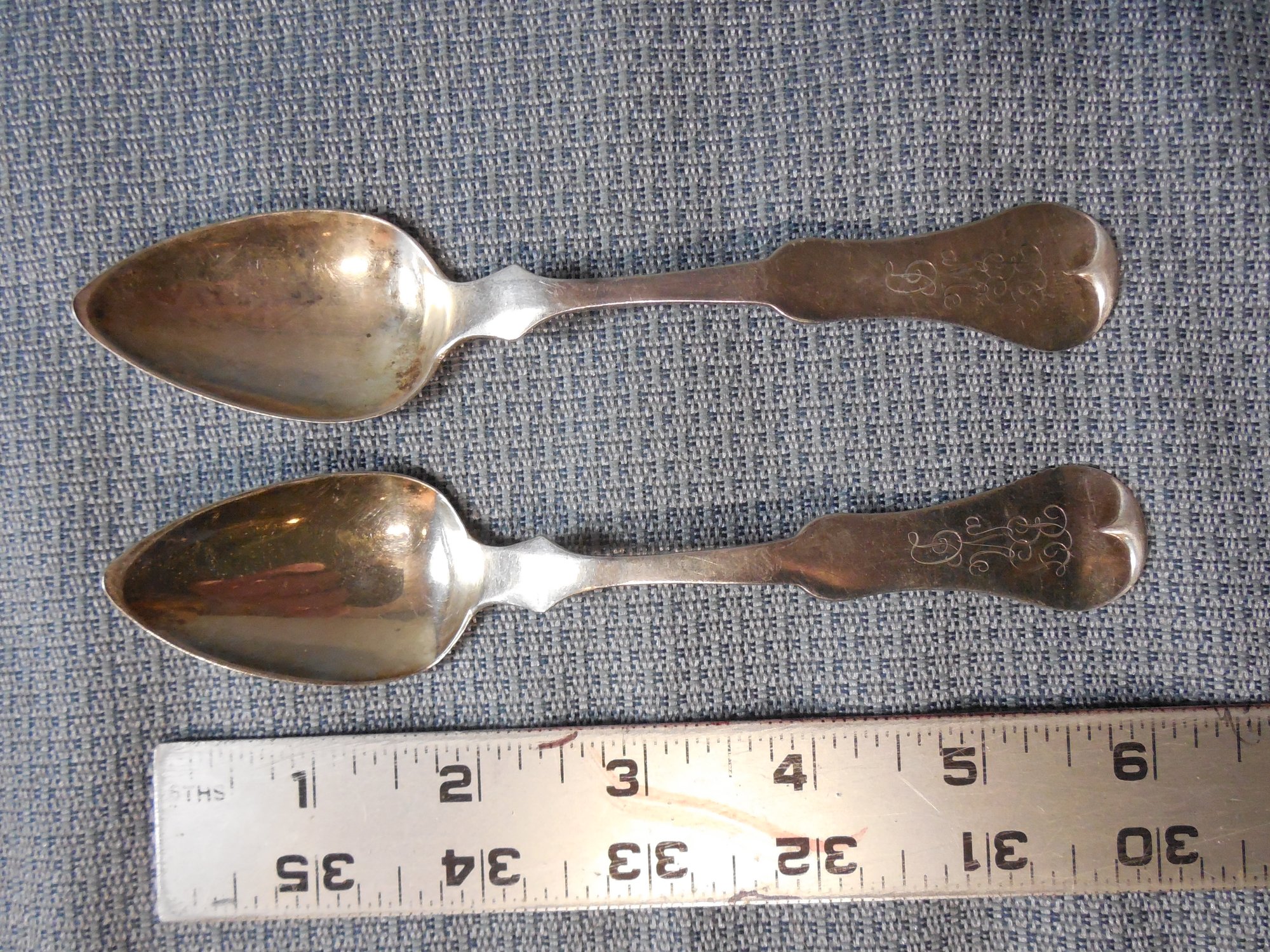 Coin Silver - 2 Spoons By E jaccard St Louis MO 1.48 ounces / 41 grams