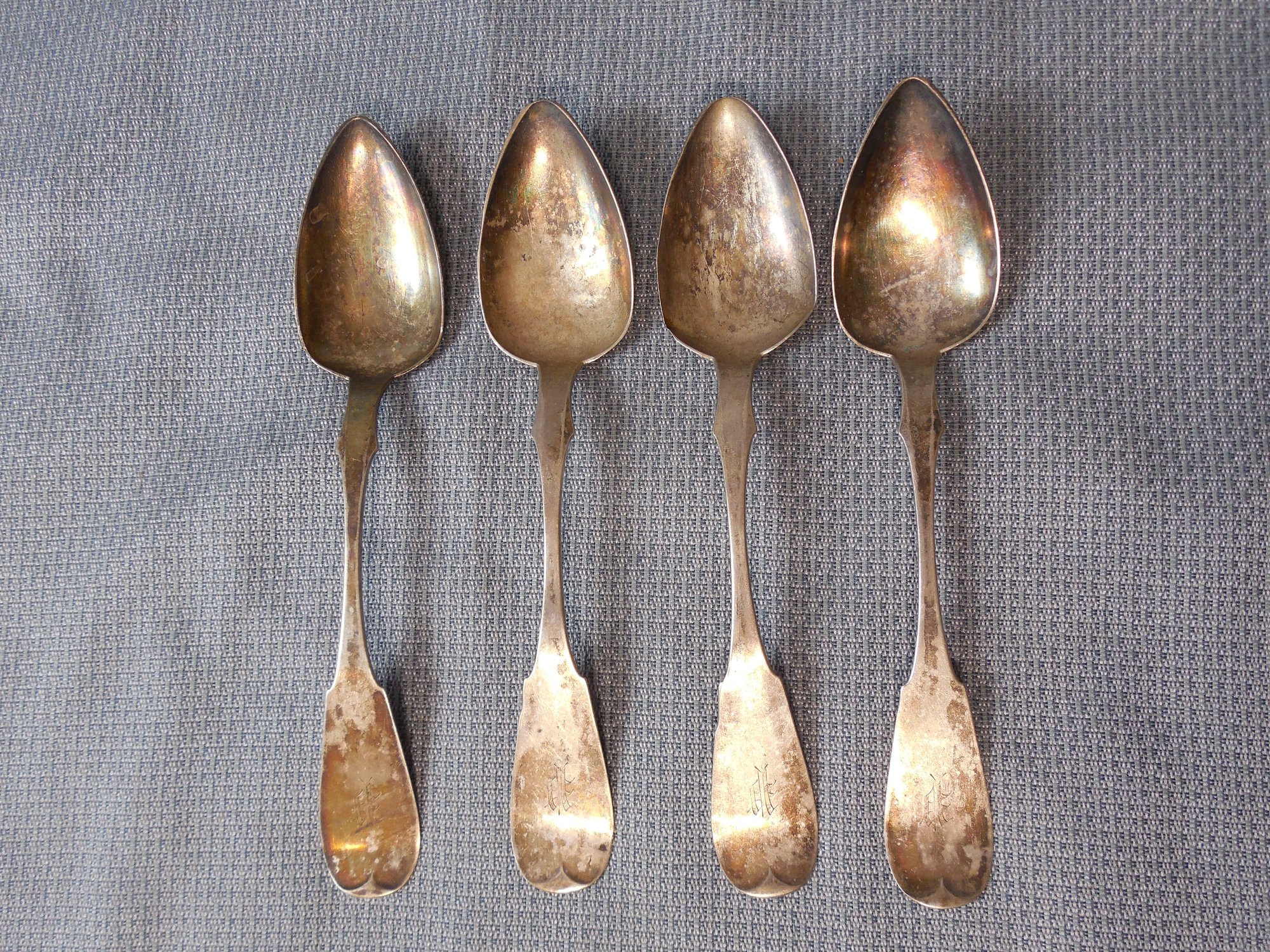 Coin Silver - 4 Large Serving Spoons by F A Hess - 5.96 Ounces / 169 grams