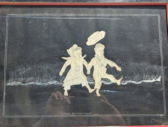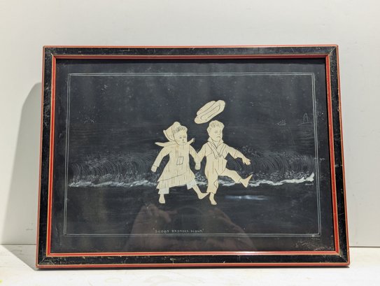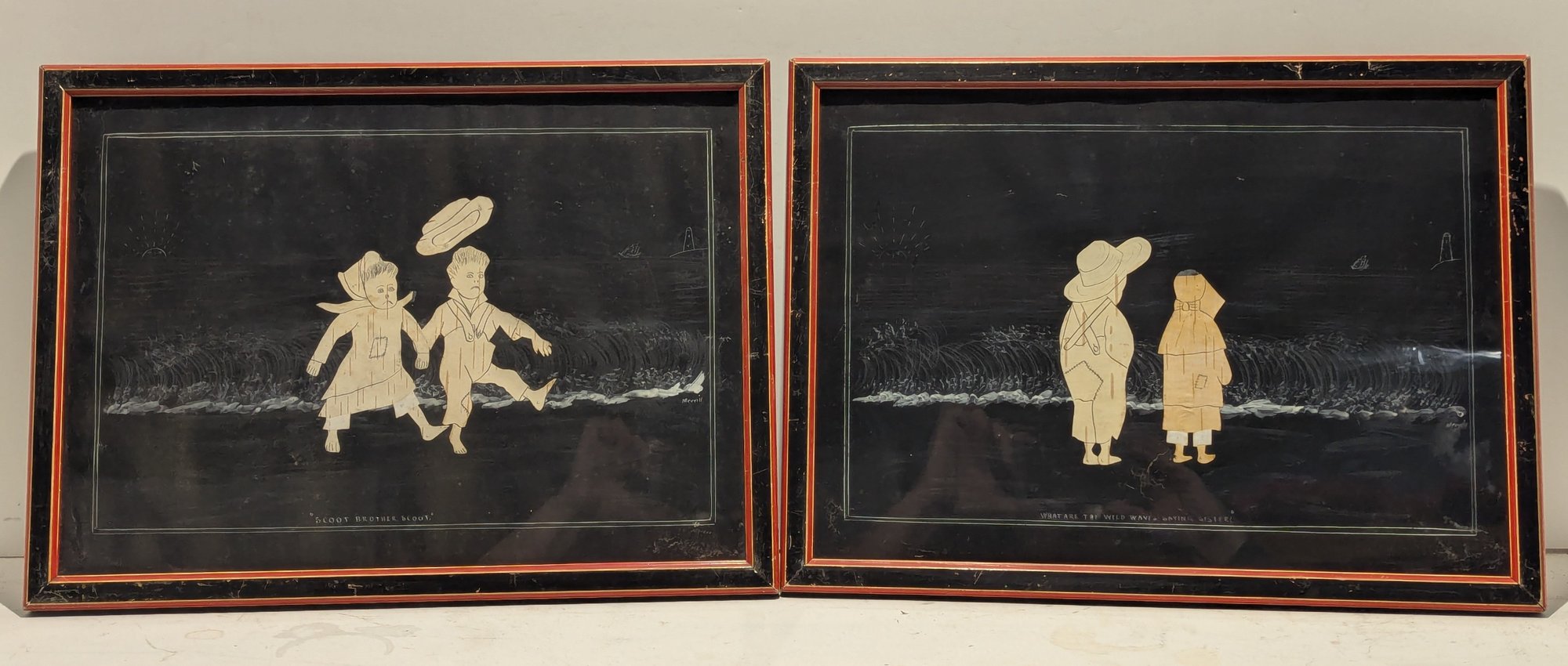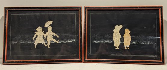 Edward West Merrill (1841-1910) Pair of Original Birch Bark Folk Art Collage / Paintings