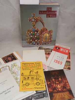 Vintage German/Austrian? Tourism Book titled “Die Schatzkammer in Wien” by Hermann Fillitz. Copyright 1964. Contains some miscellaneous postcards. Dustjacket shows some wear but the book is otherwise in good condition.