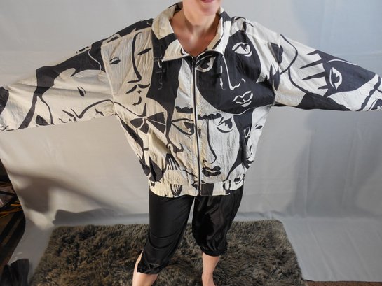 New York Girl - Art Deco / Mid Century Modern Print - Rain Coat - Marked Size Large