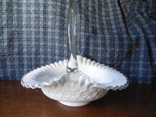 Fenton Silver Crest Spanish Lace Large Handled Basket