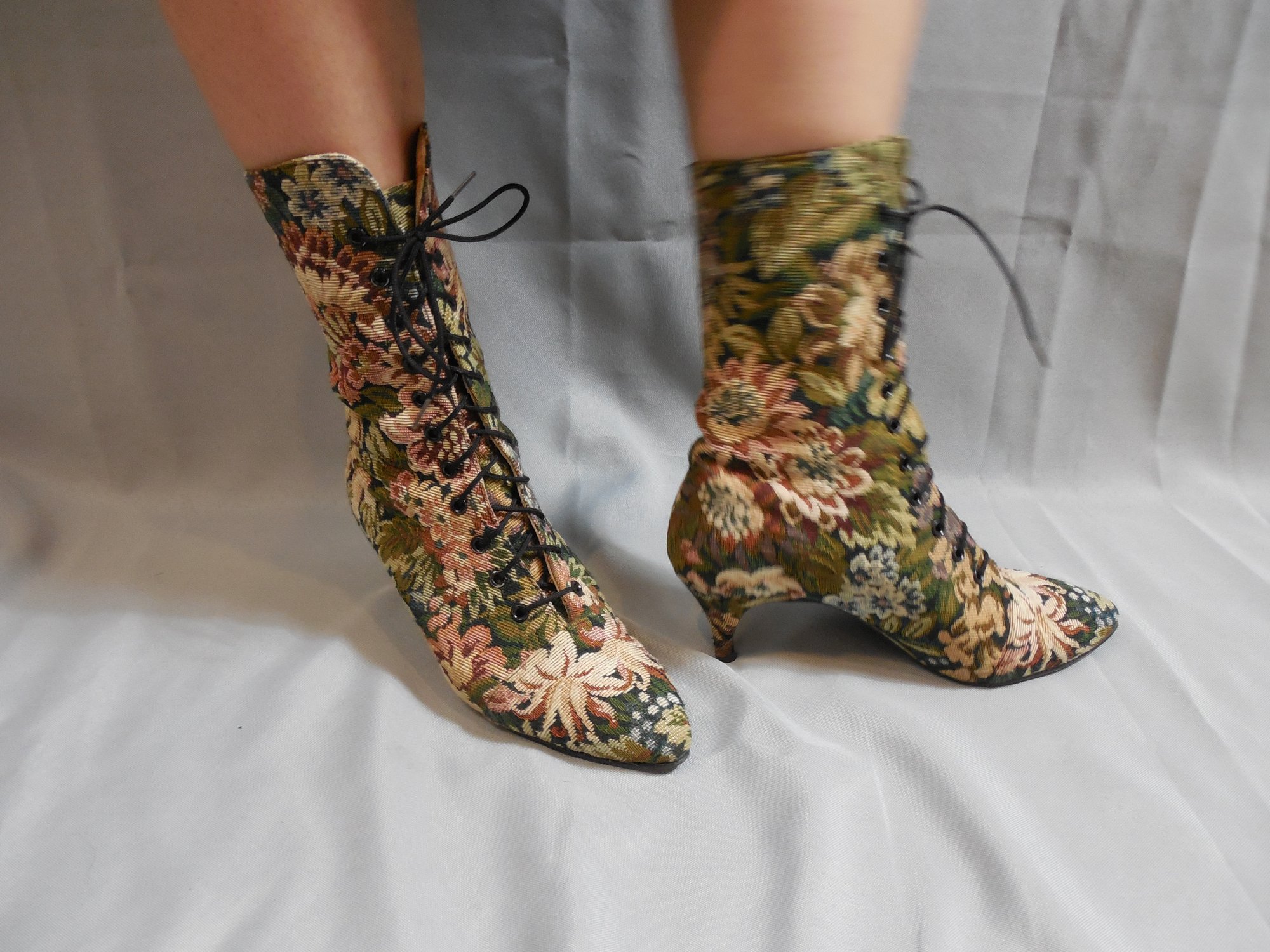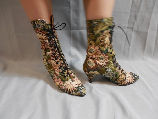 Floral Pattern Tapestry Style Kitten Heal Boots