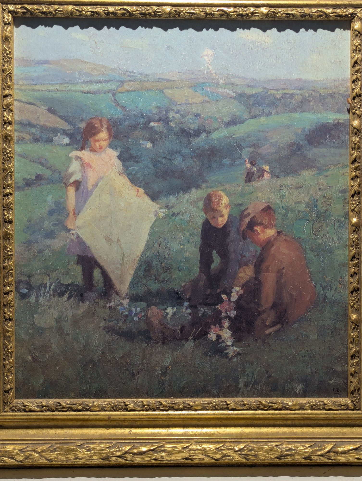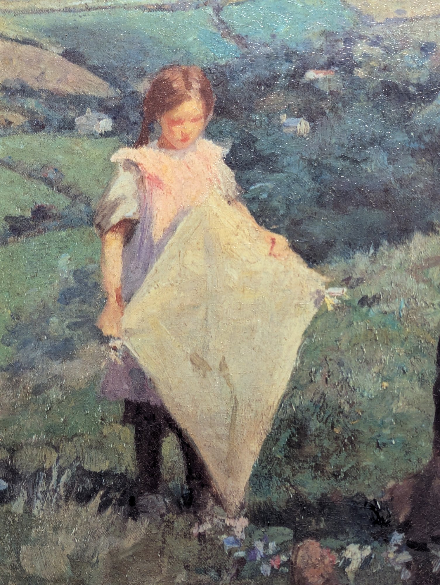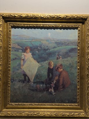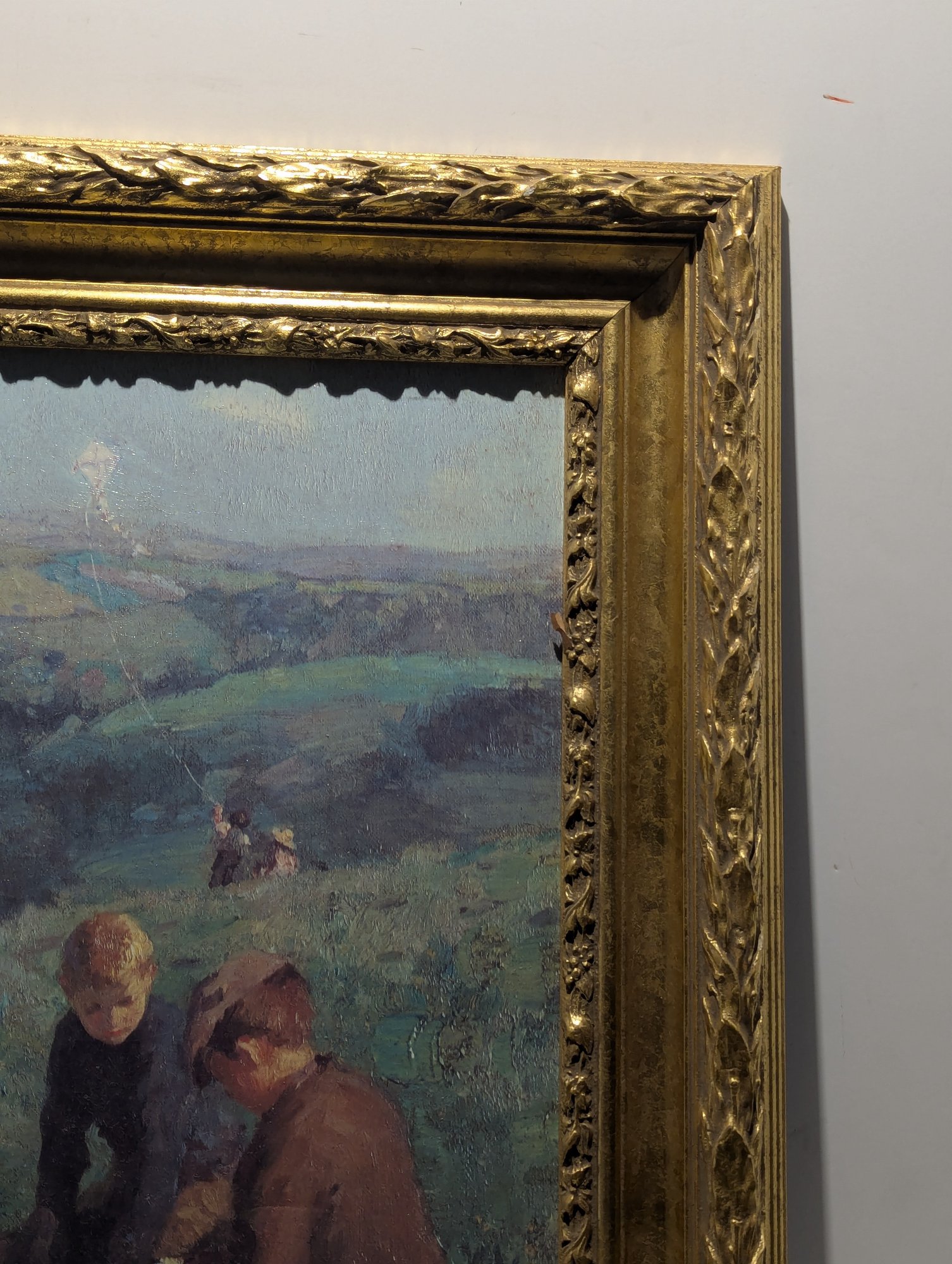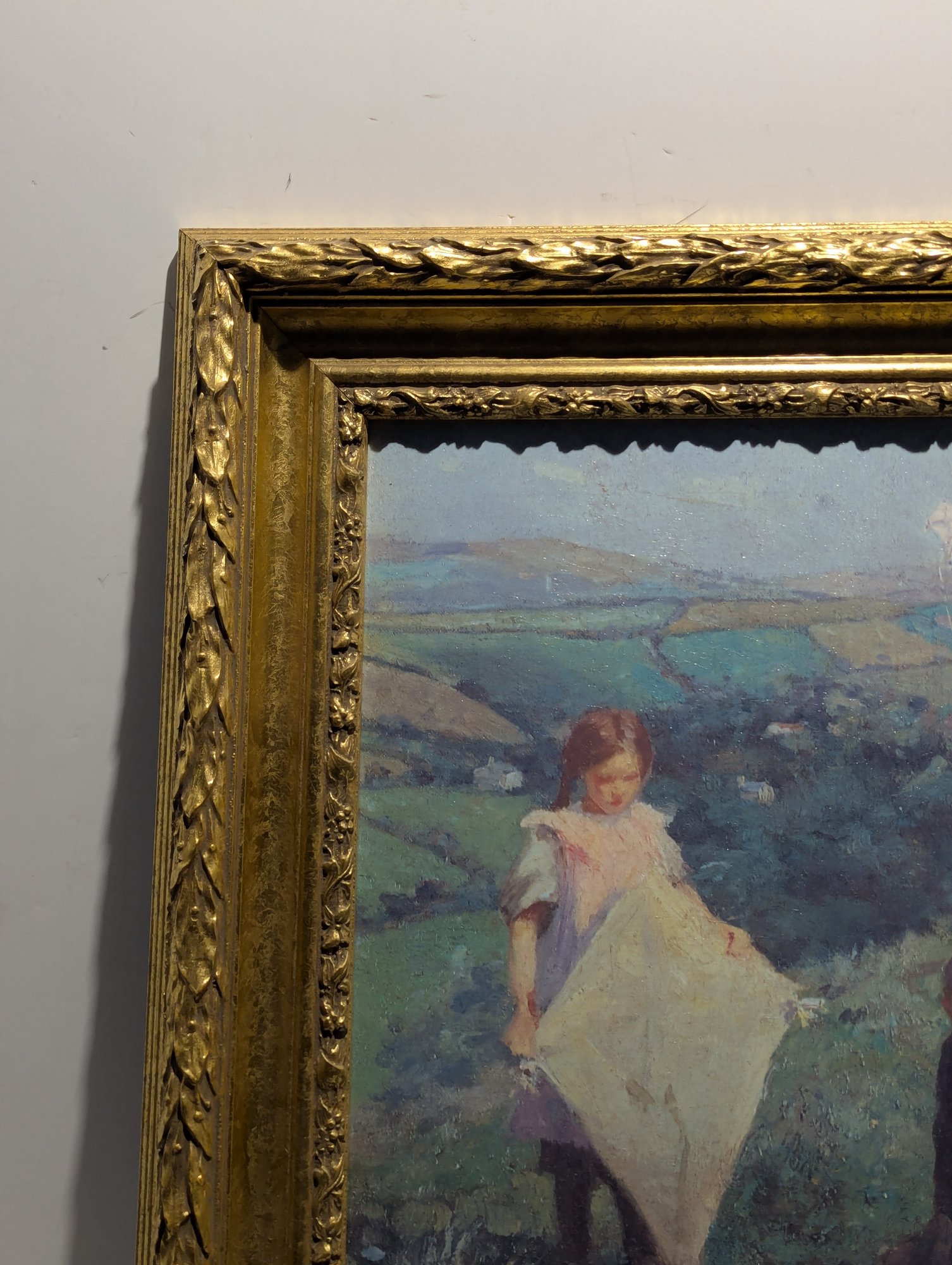 Harold Harvey (1874-1941) Nicely Framed Print on Canvas - Flying The Kites