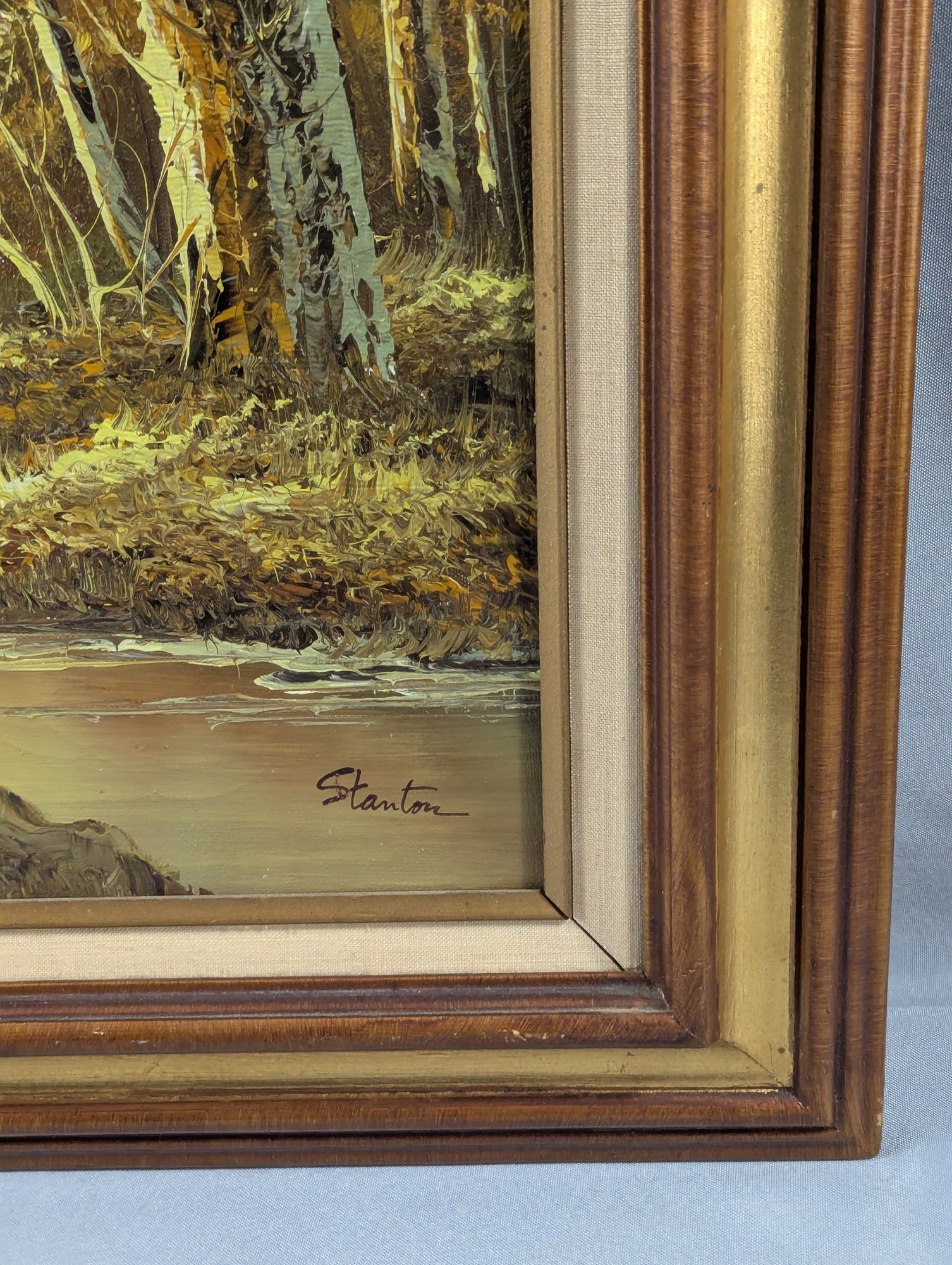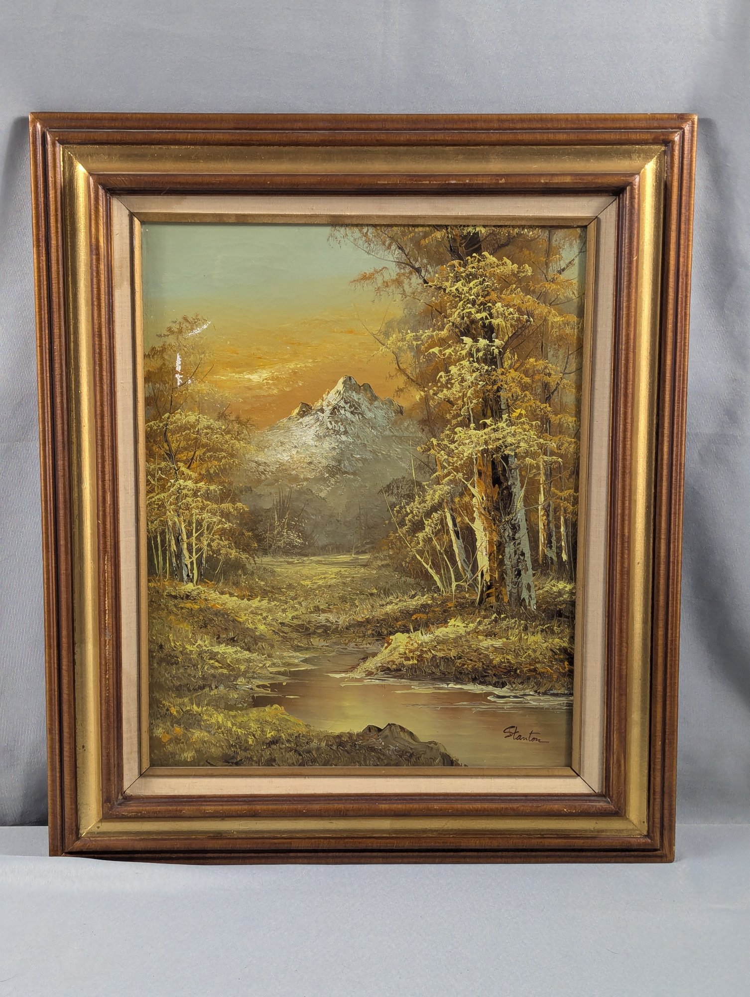 Original Oil Painting on Canvas by Stanton – Mountain River Scene