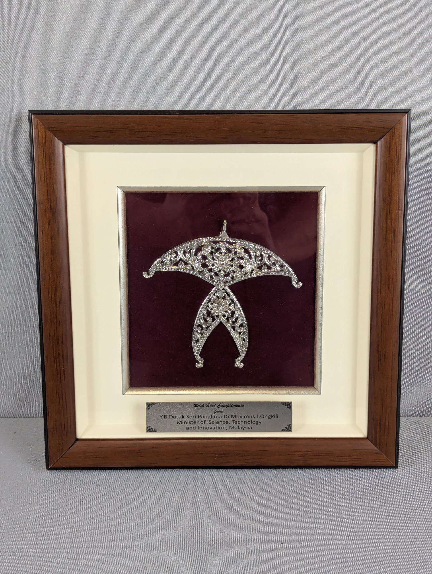 Probably Sterling Silver Moon -Kite - Framed Gift for the Minister of Science Malaysia