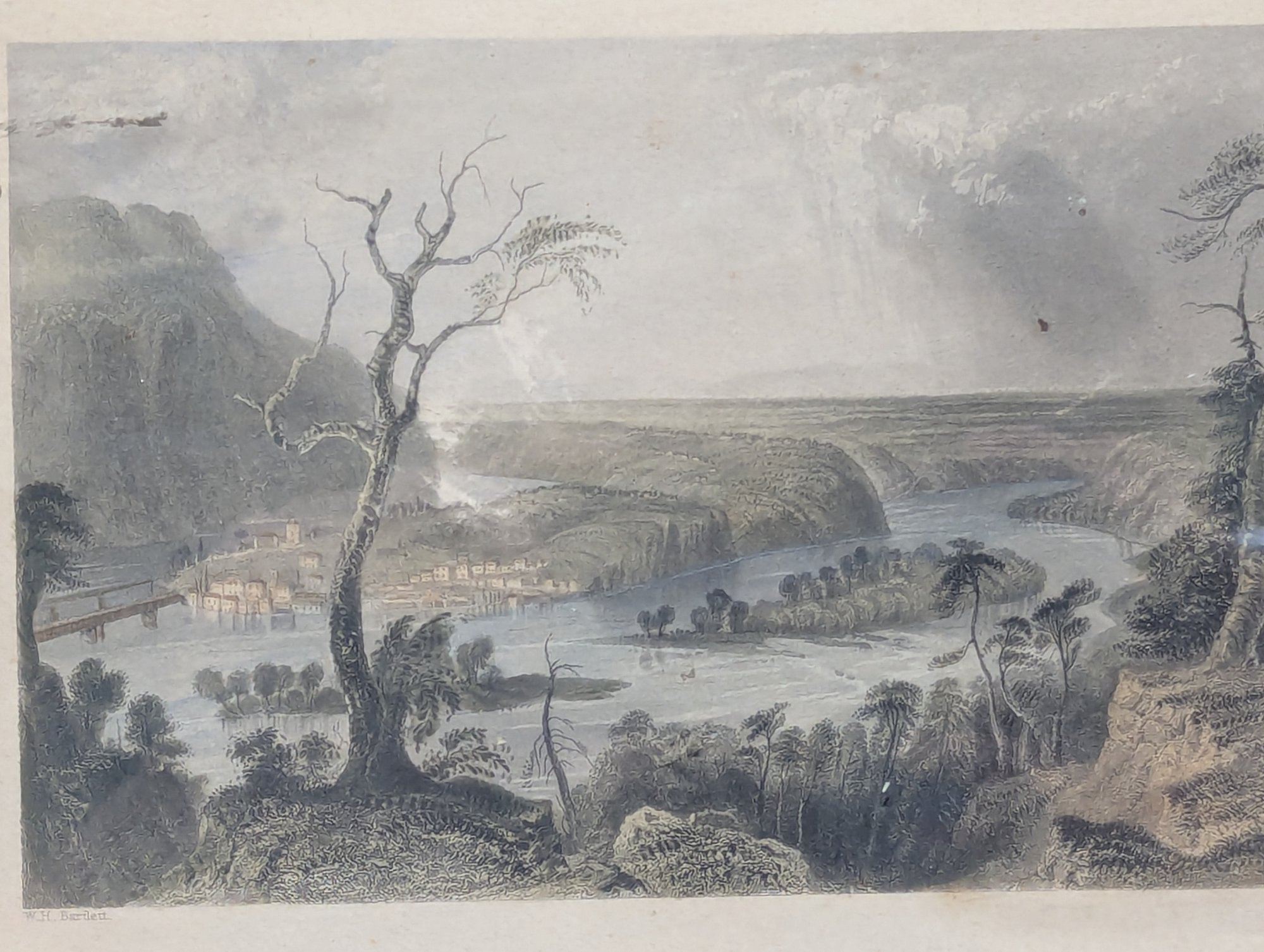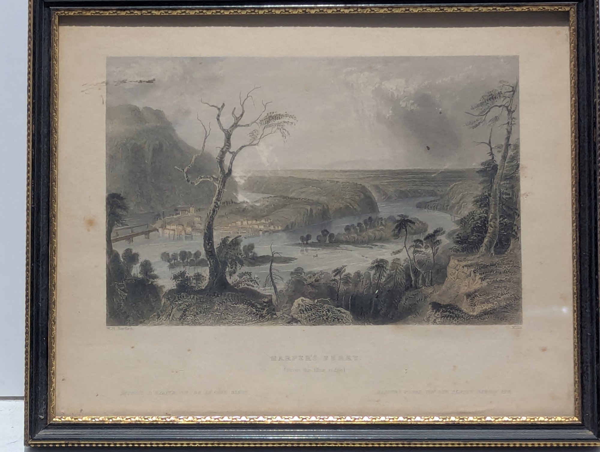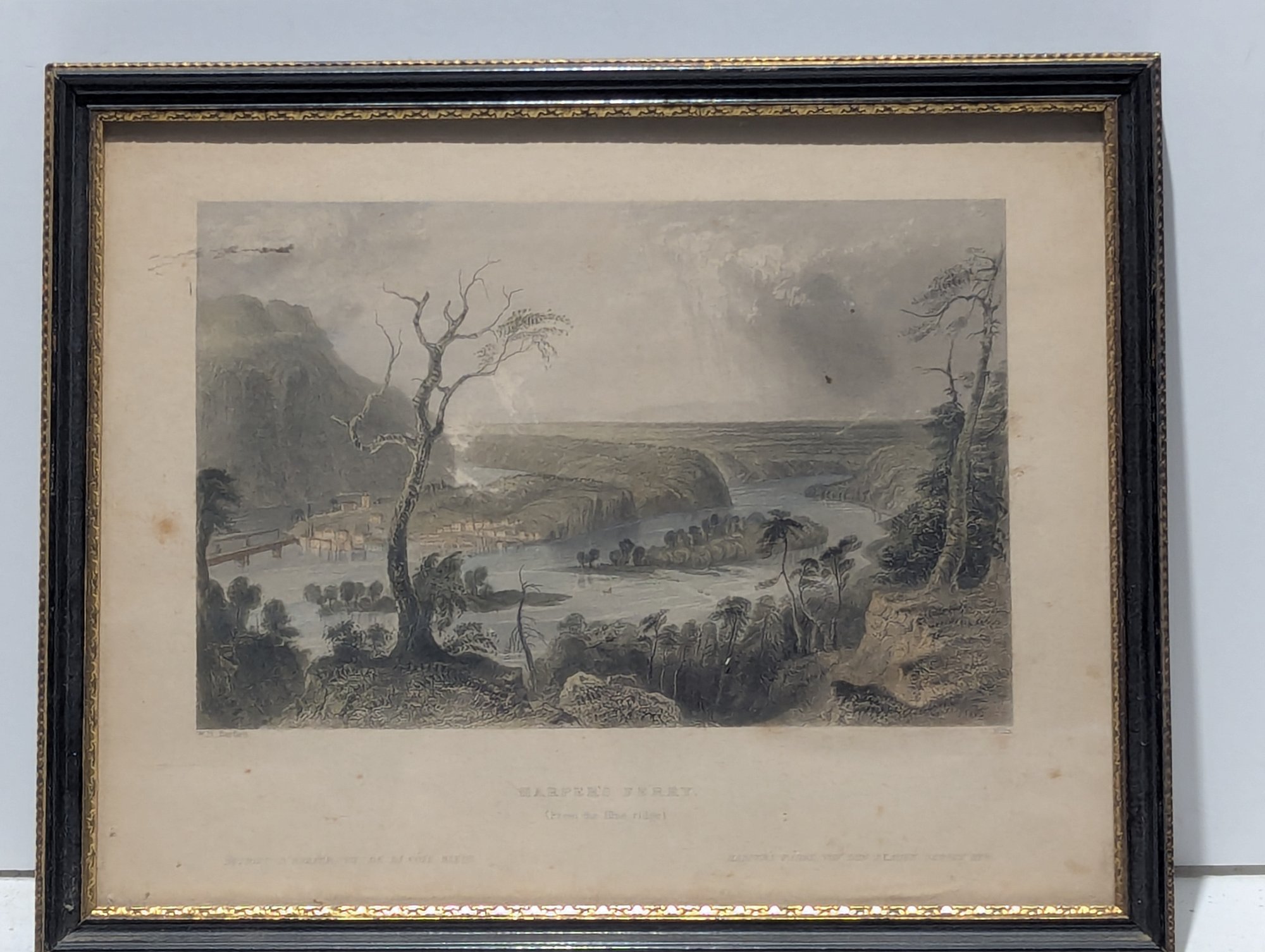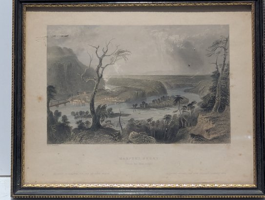 W H Bartlett (1809-1854) Antique Hand Colored Engraving Harper's Ferry From the Blue Ridge