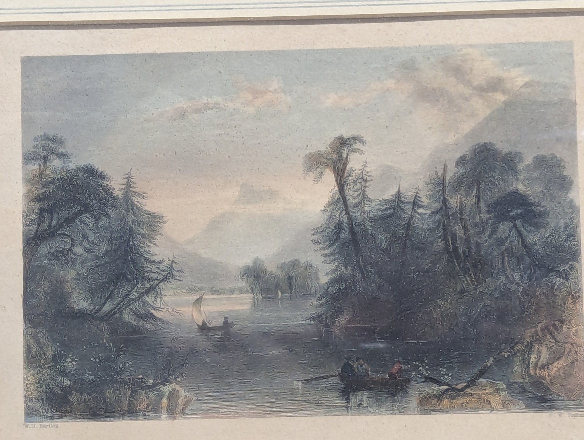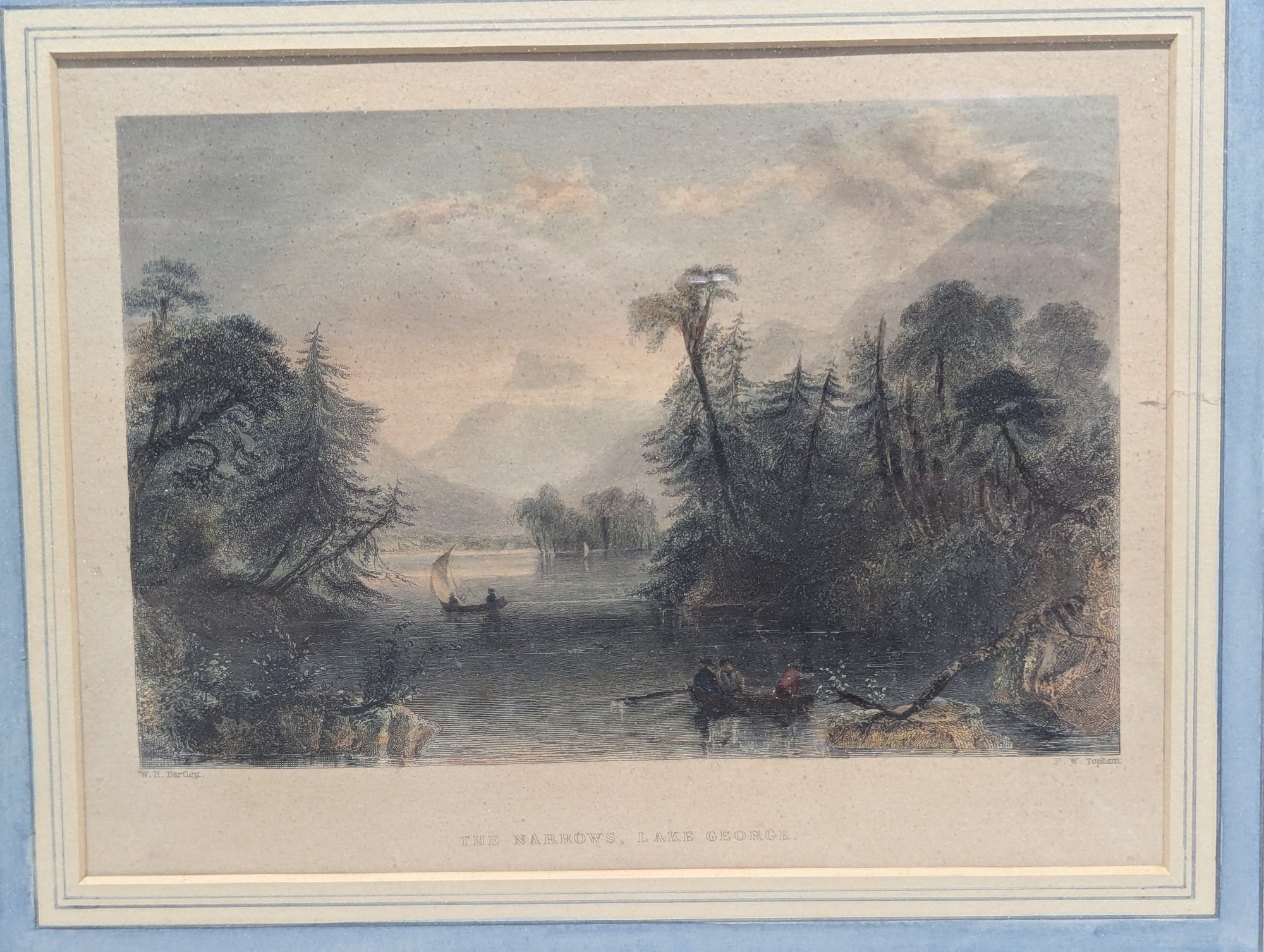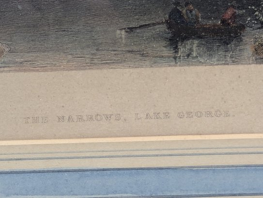 W H Bartlett (1809-1854) Antique Hand Colored Engraving Lake George The Narrows
