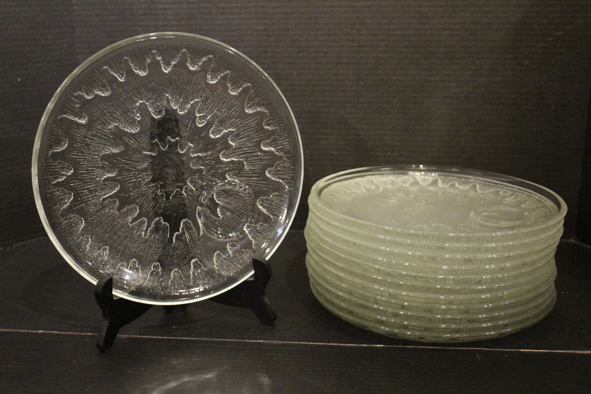 12 vintage Indiana Glass Sunburst snack/lunch plates with a cup holder ring on the plate, 9.25". (cup not included, only for display) These items can be shipped.