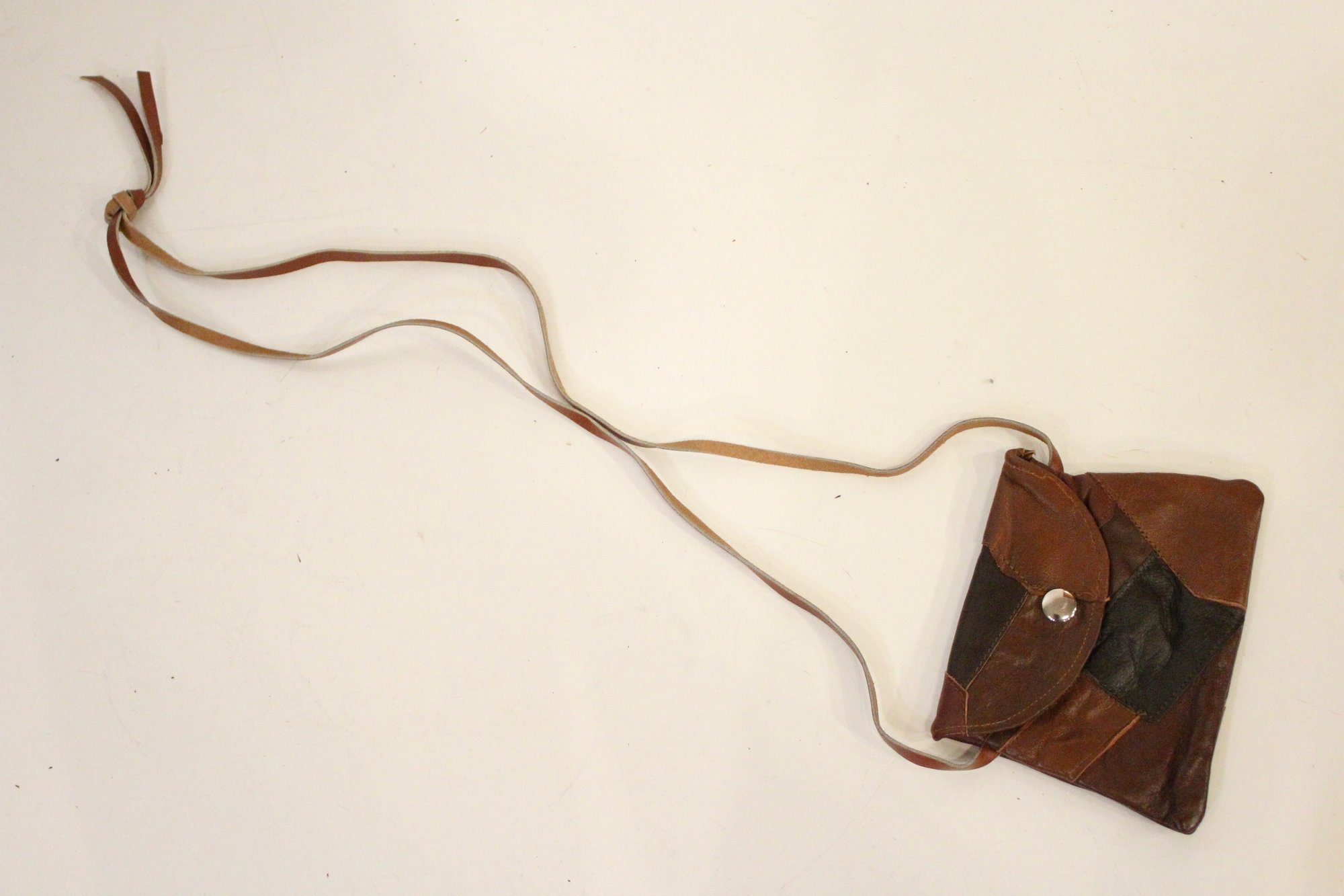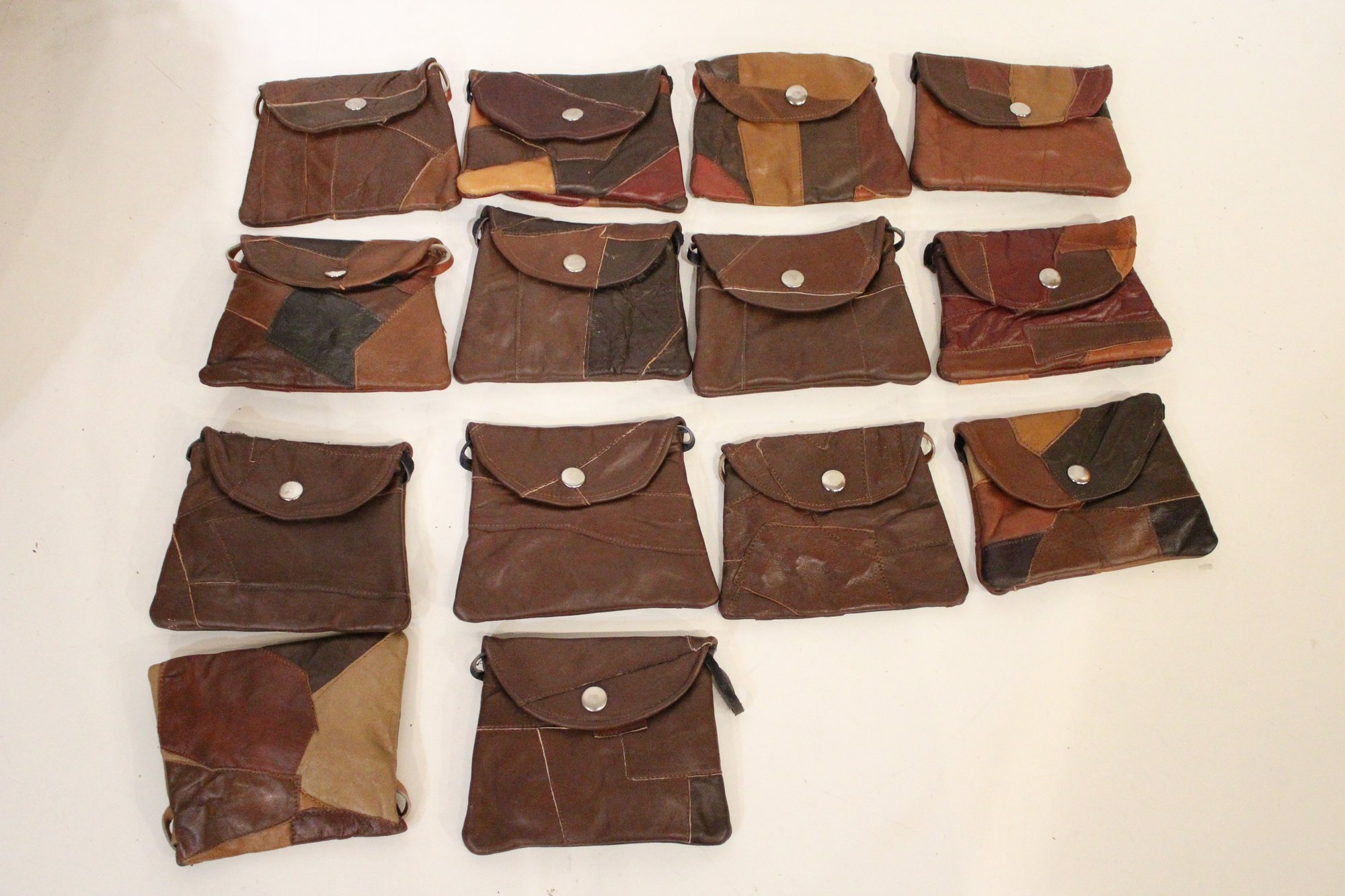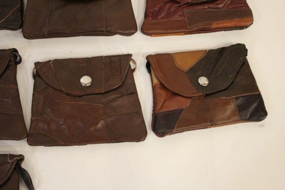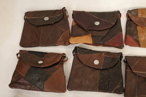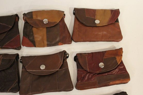 14 small faux leather patchwork bags 6" x 4.5" with long straps 27". These items can be shipped.
