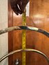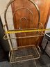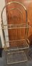 1980s brass etagere is lightweight and designed to display plants or other items, has three racks and stands 60 inches high and 25 inches wide. Could use some good polishing. This item will not ship