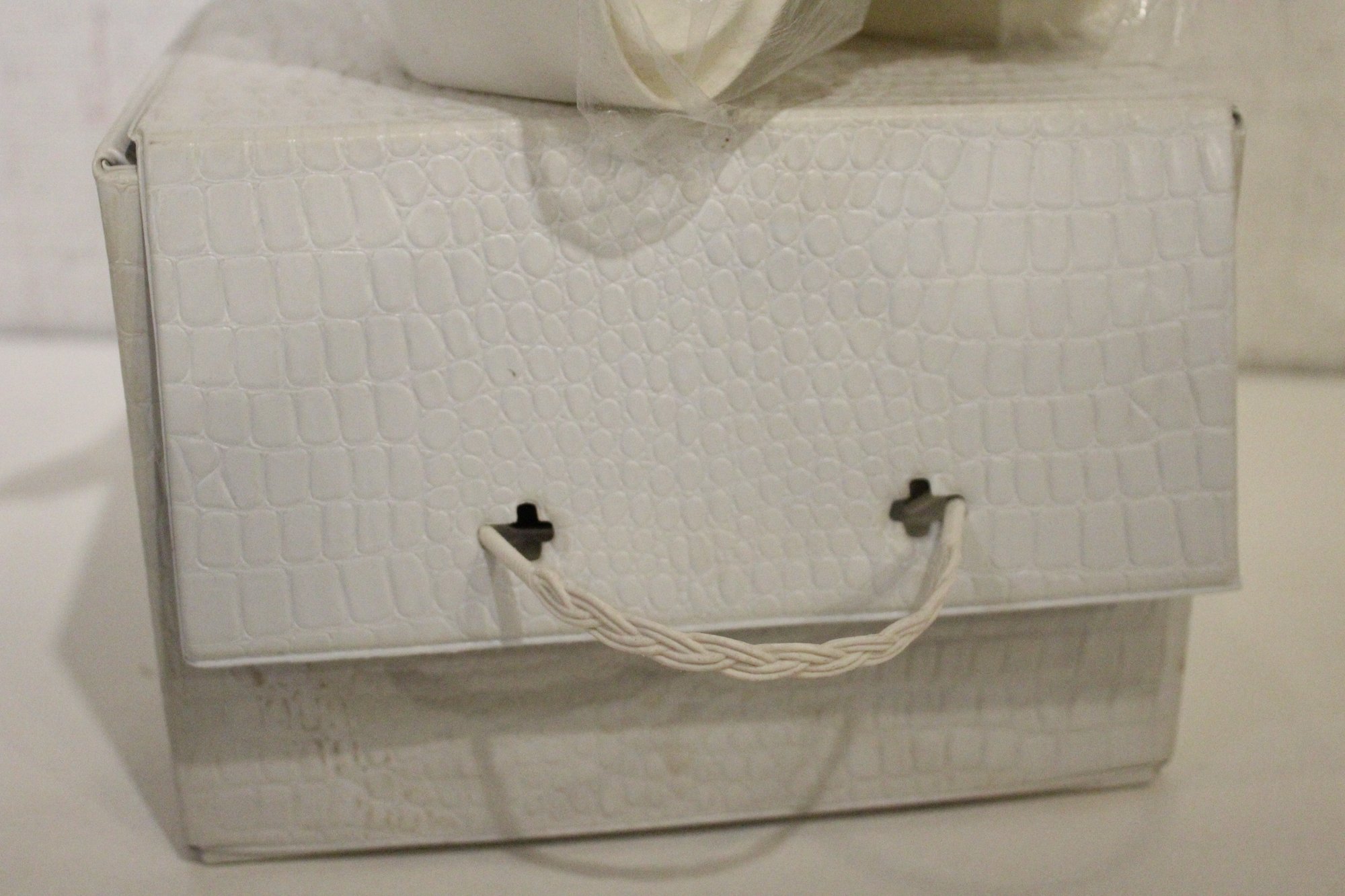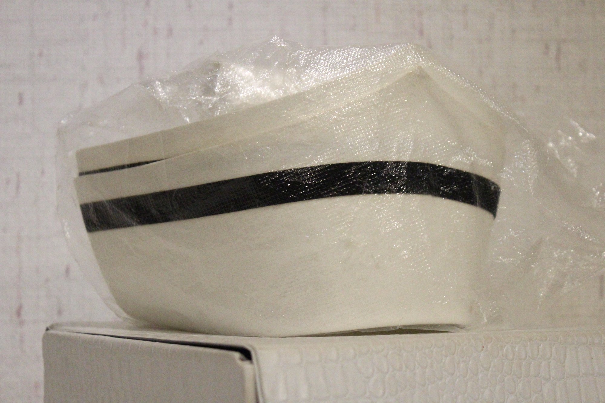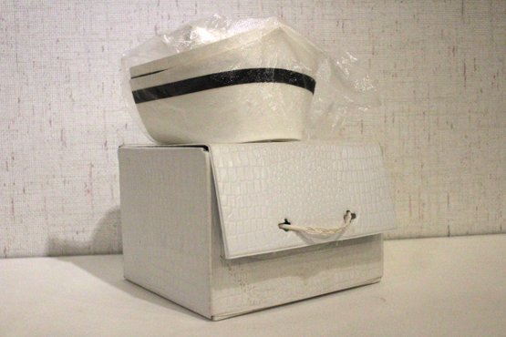 2 authentic vintage nurse's caps still in plastic, and with a carrying box, 9" x 8" x 6". These items can be shipped.