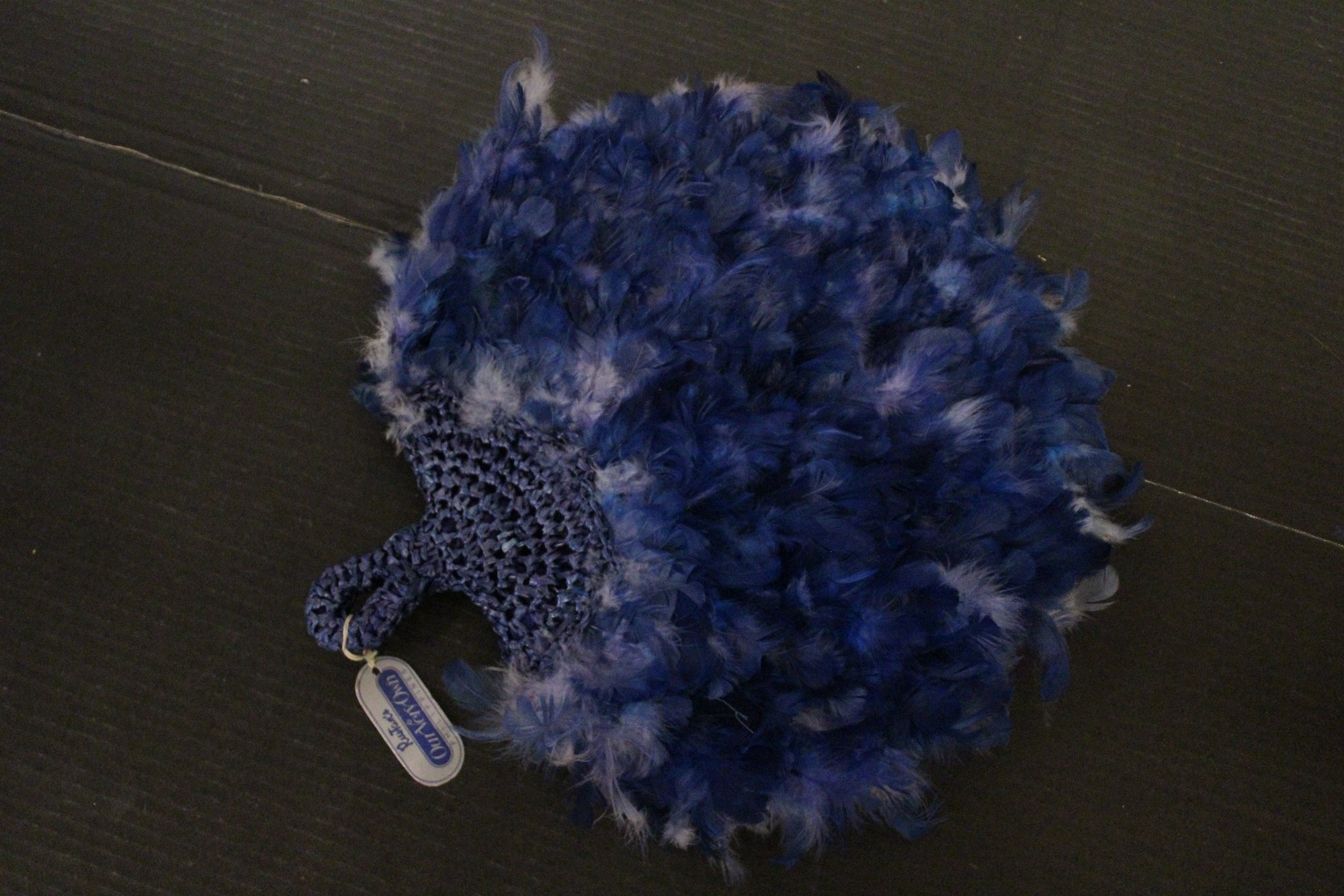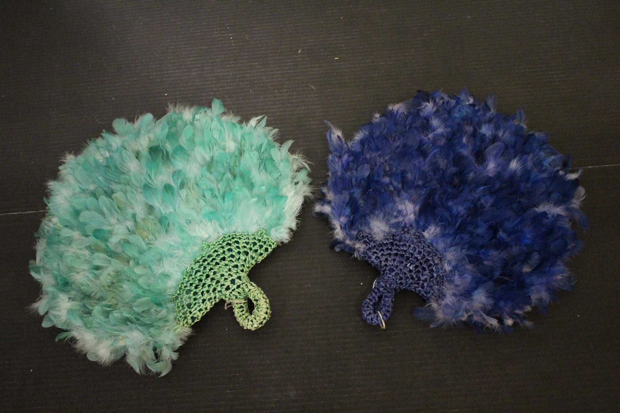 2 Irukere fans, or African feather fans, from Rustan's, a prestigious department store in the Philippines, 13" x 13". These items can be shipped.
