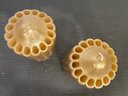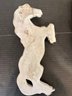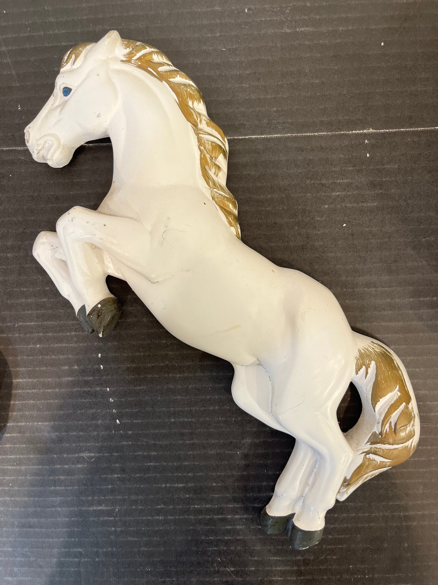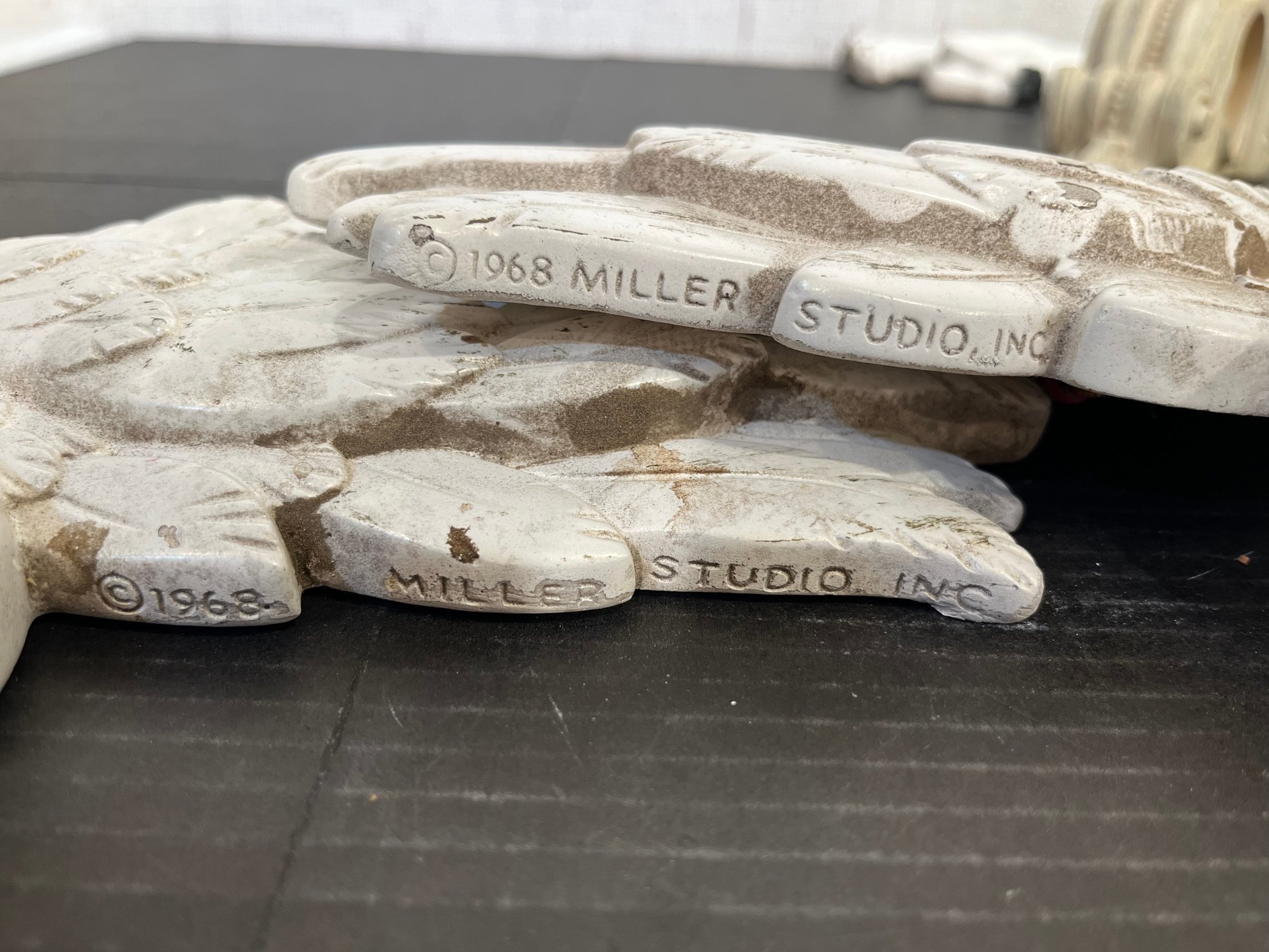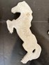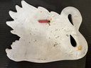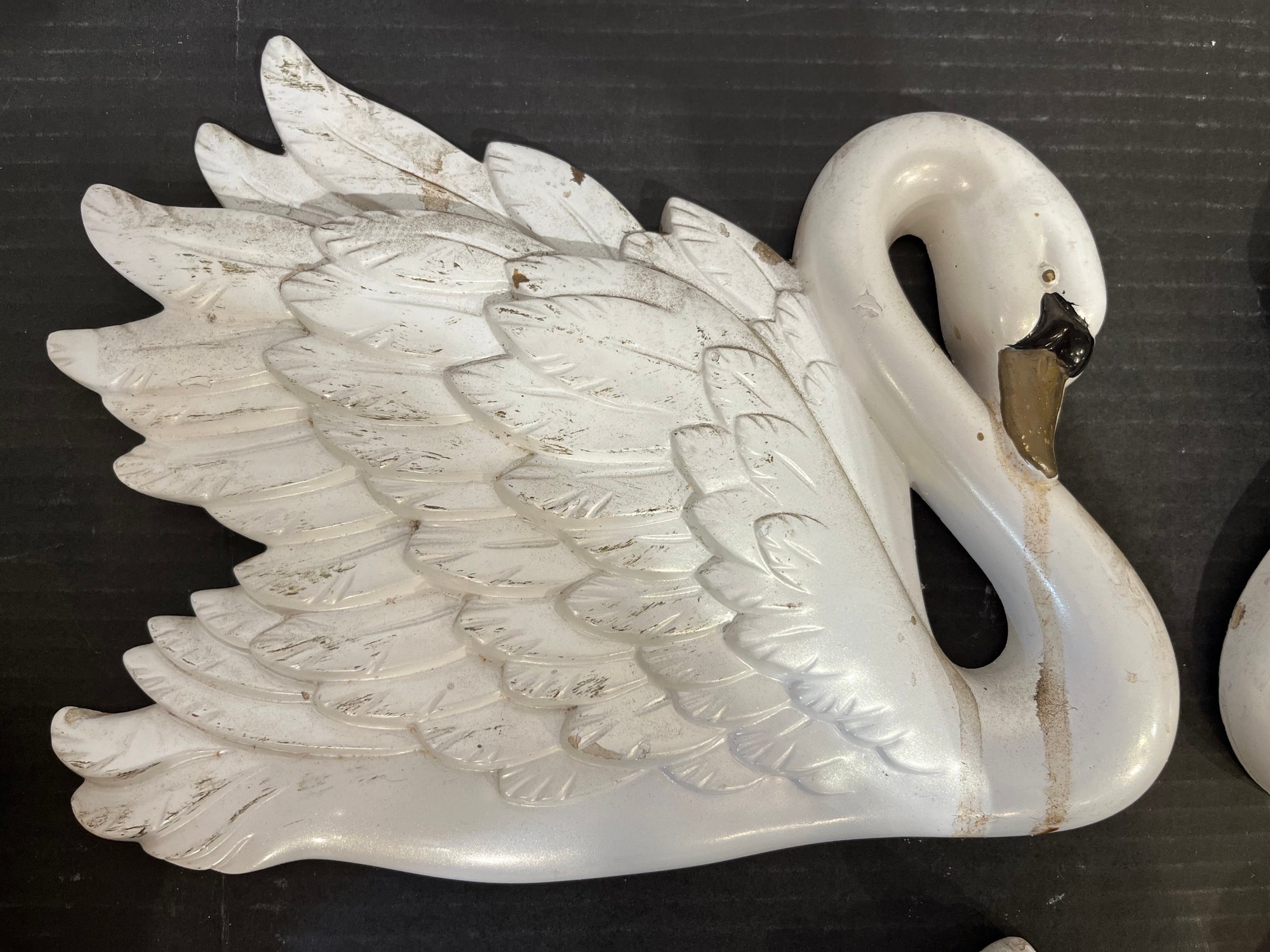 2 vintage 1968 Miller Studio chalkware swan wall plaques, 10" x 8". 2 vintage 1973 Miller Studio chalkware horse wall plaques, 12" x 5". A pair of ornate French style Franny curtain drapery scone, candle holder, 6" x 3" with 2 gold toned candles, 7". These items can be shipped.