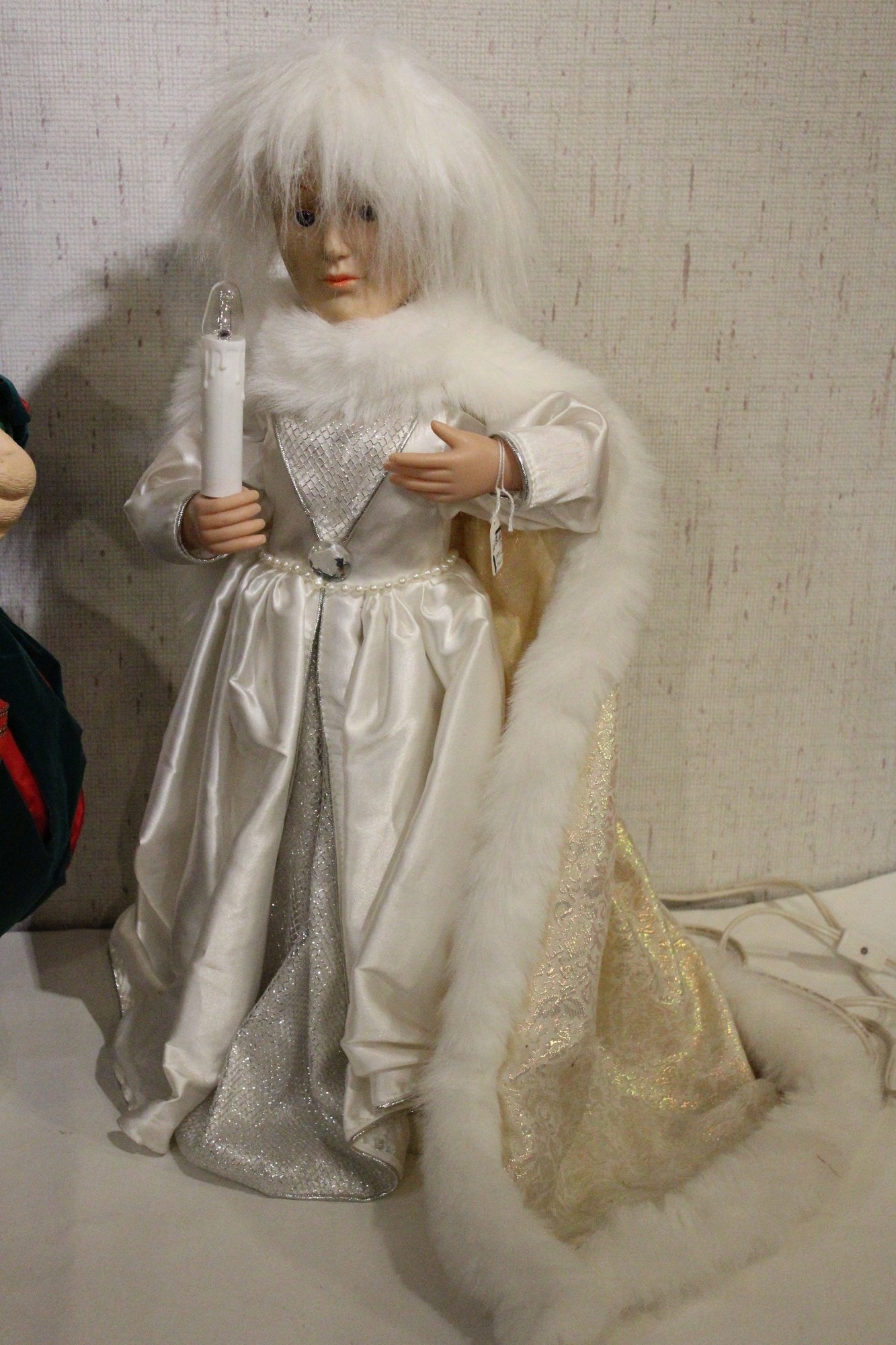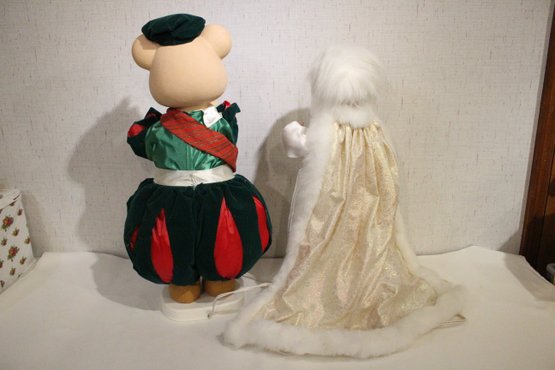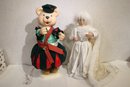 A vintage "The Merry Gifts of Christmas" 24" animated bear doll 27", and a vintage 1990 Telco Motionetts animated victorian Christmas snow princess girl, 24". These items can be shipped. These items can be shipped.