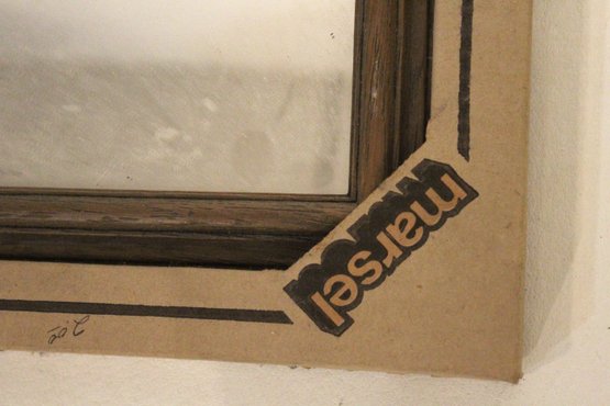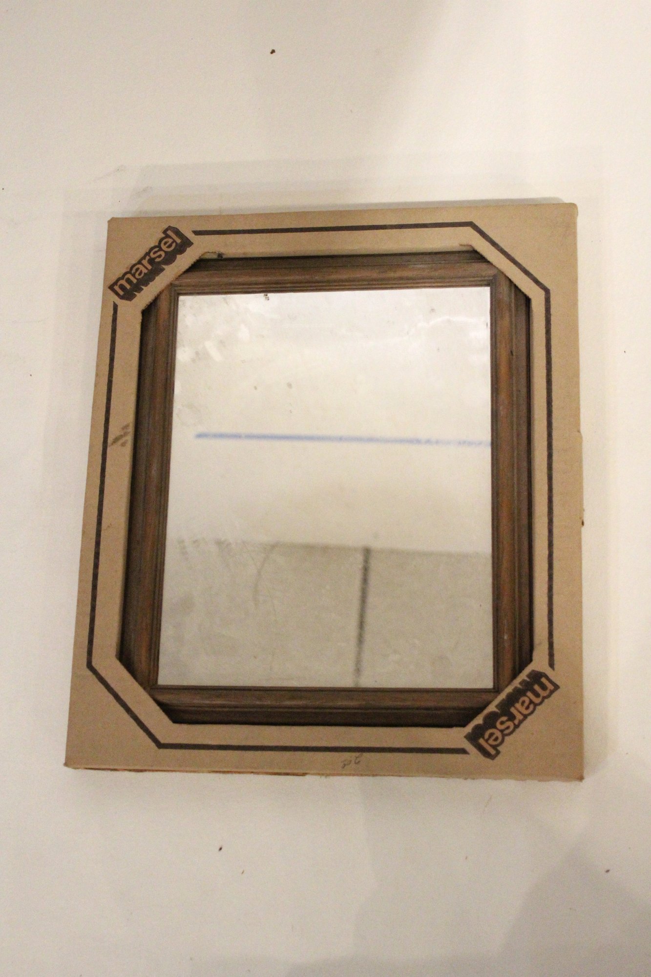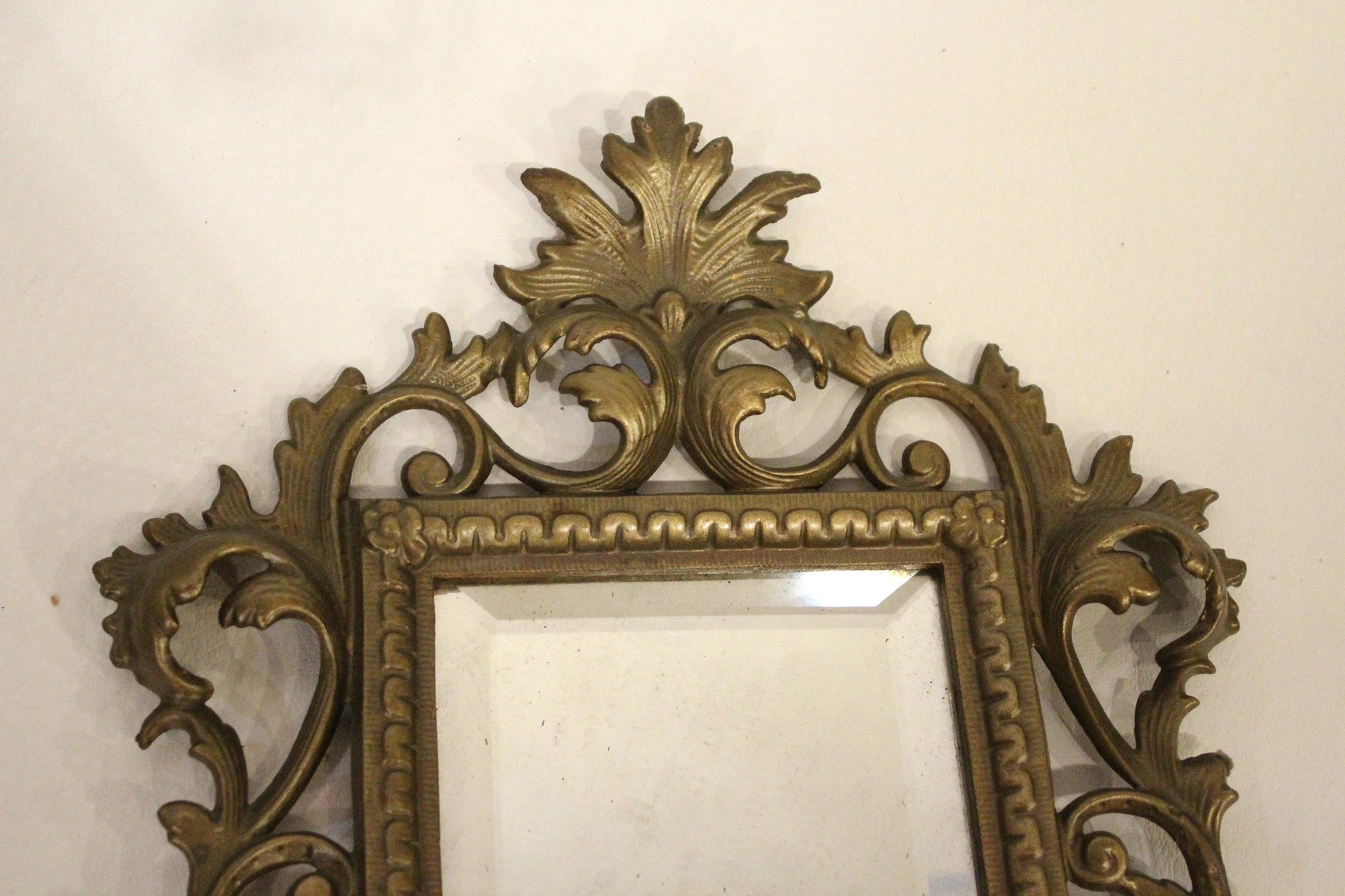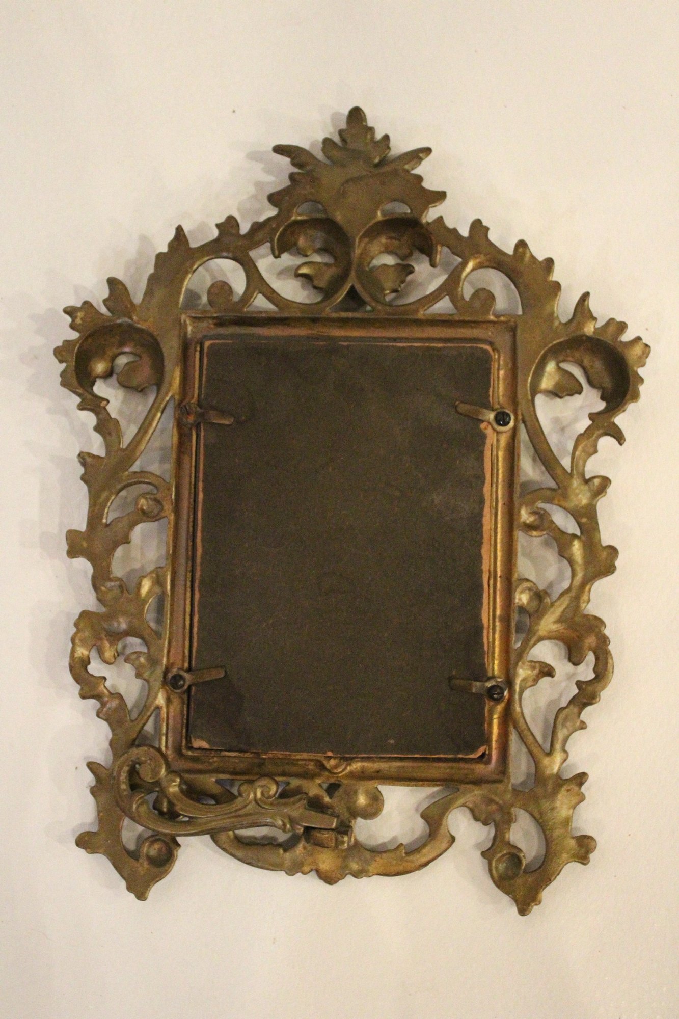 An ornate Rococo or Victorian style metal mirror at 12" x 9", and a Marsel retro wood MCM mirror at 11.5" x 9.5". These items can be shipped.