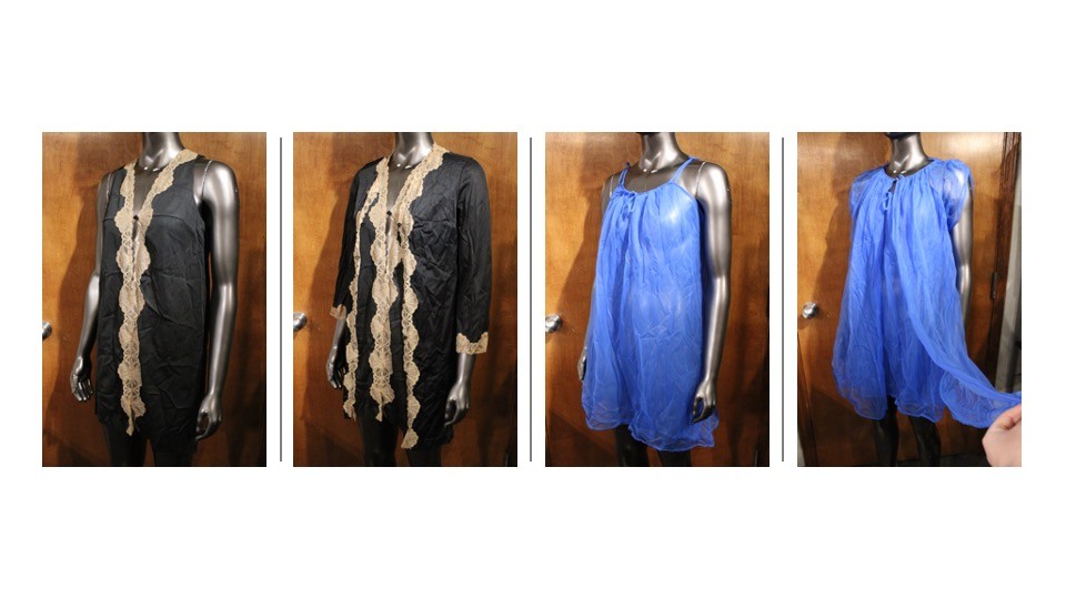 An Emilio Pucci vintage black night dress and robe size S, with a blue flowing dress and puffed shoulder robe set size Medium. These items can be shipped.