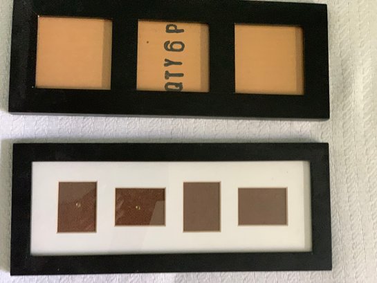 Two black wood frames with glass and mat dividers for multiple pictures. Both approximately 5” x 12 and three-quarter inches. Gently used no chips or cracks to glass front.