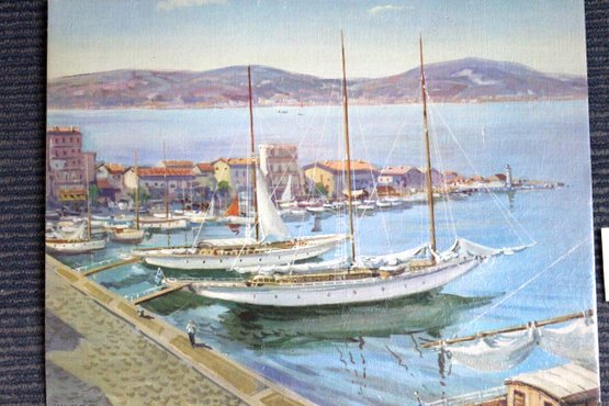 lithograph print titled "Sailing Days" by French artist Gabriel Deschamps (1919-2011).