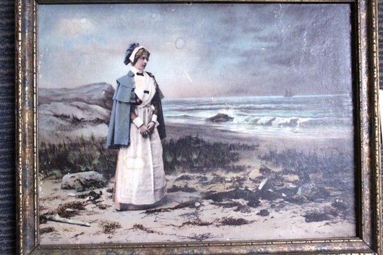 antique color lithograph print titled "Lady/Woman/Wife/Nurse by the Sea," published by The Ullman Manufacturing Co. in New York, circa 1899.