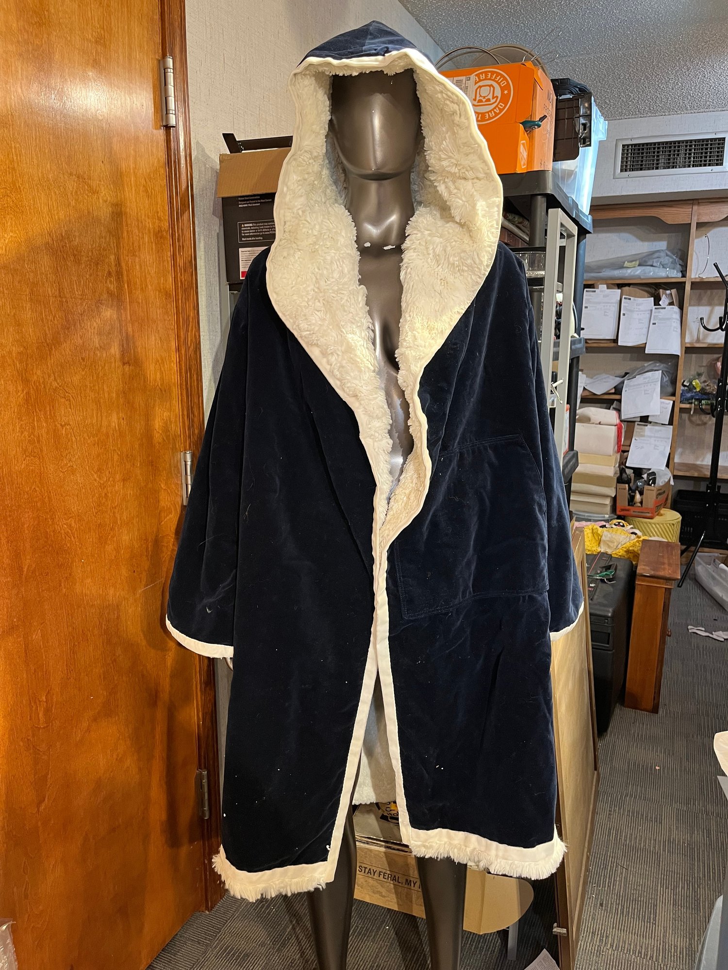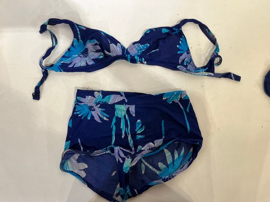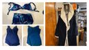 3 L or XL swim suits, and a large very warm dark blue robe