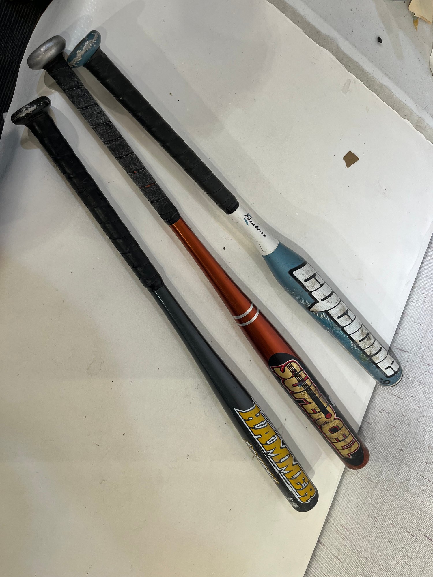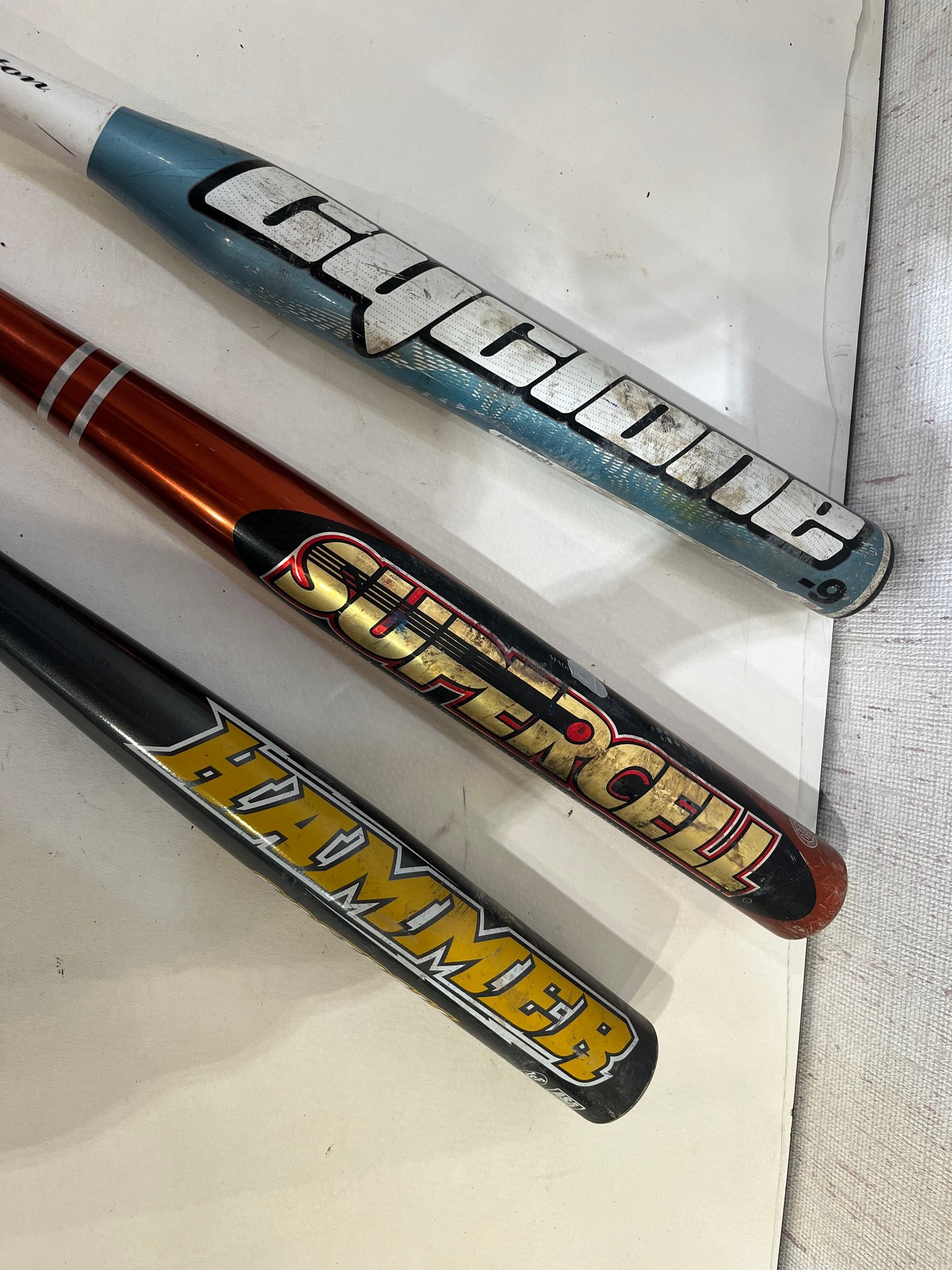 3 softball bats, including an Easton Cyclone and a Worth Supercell.