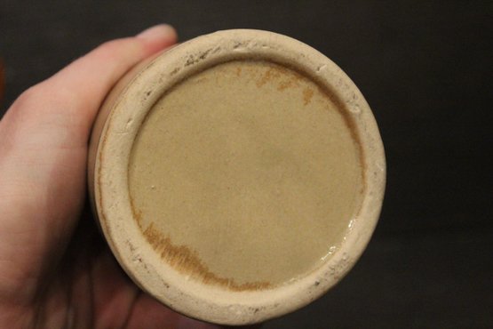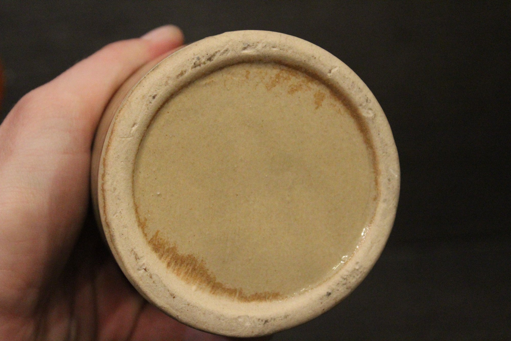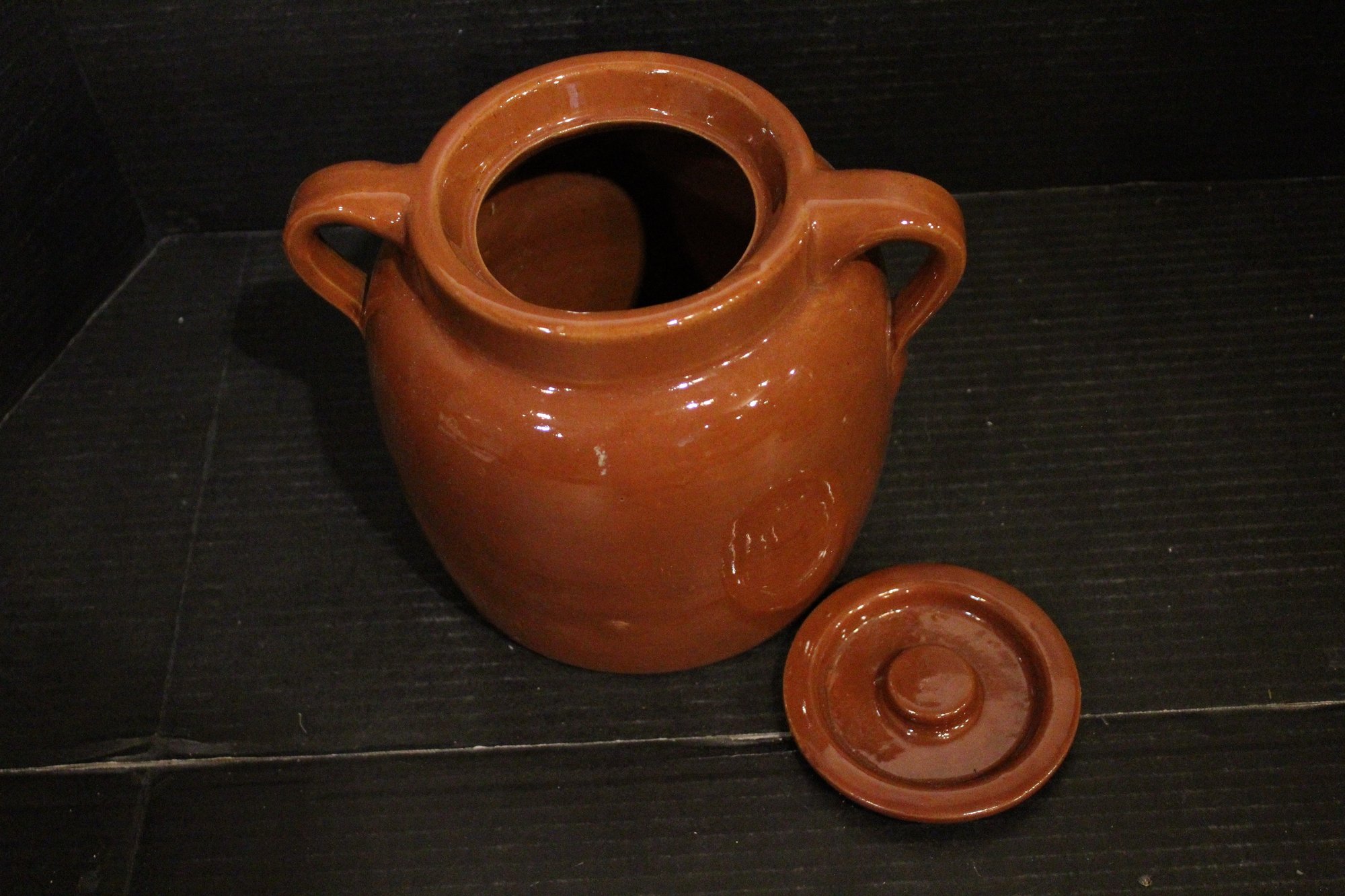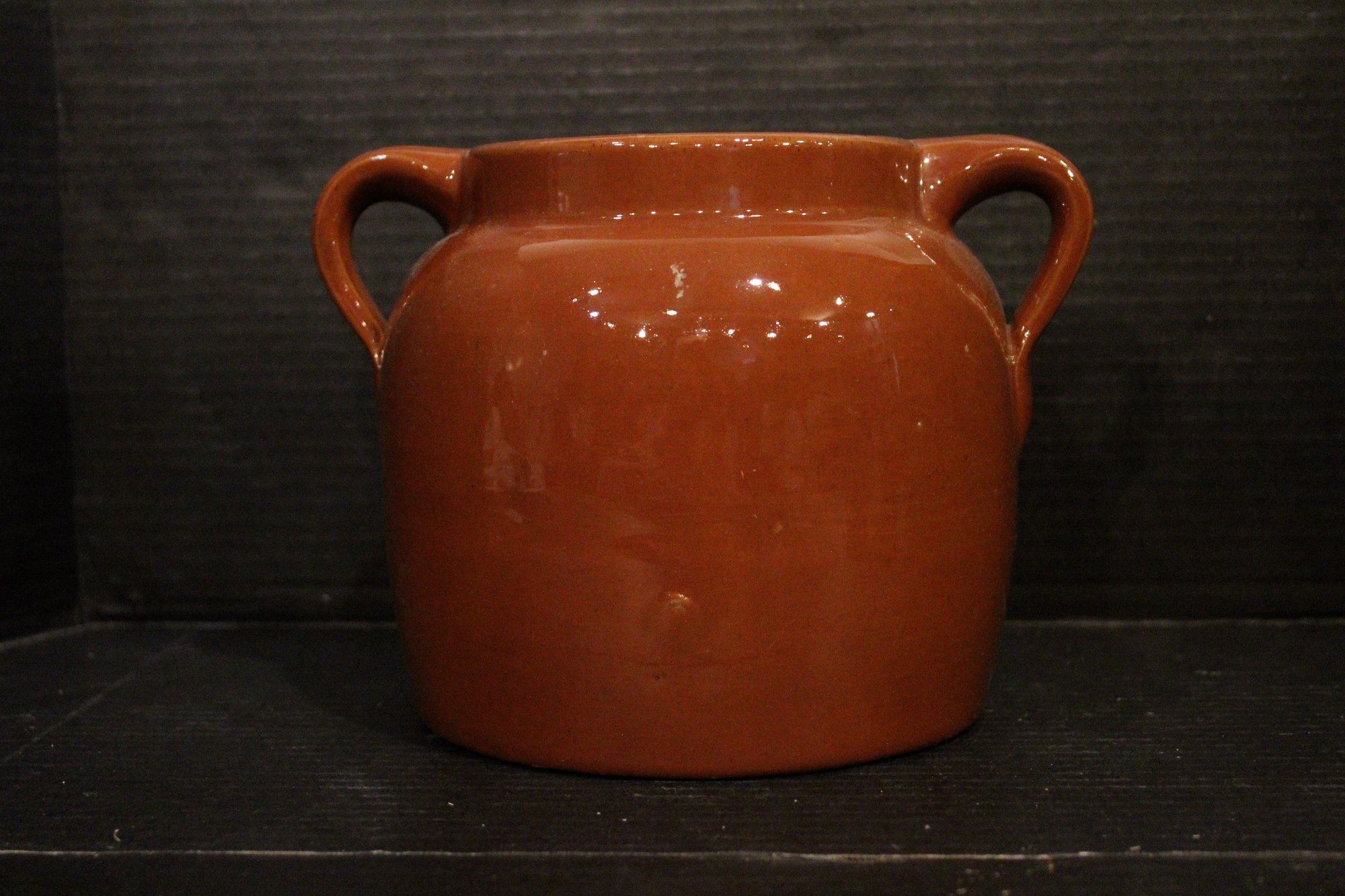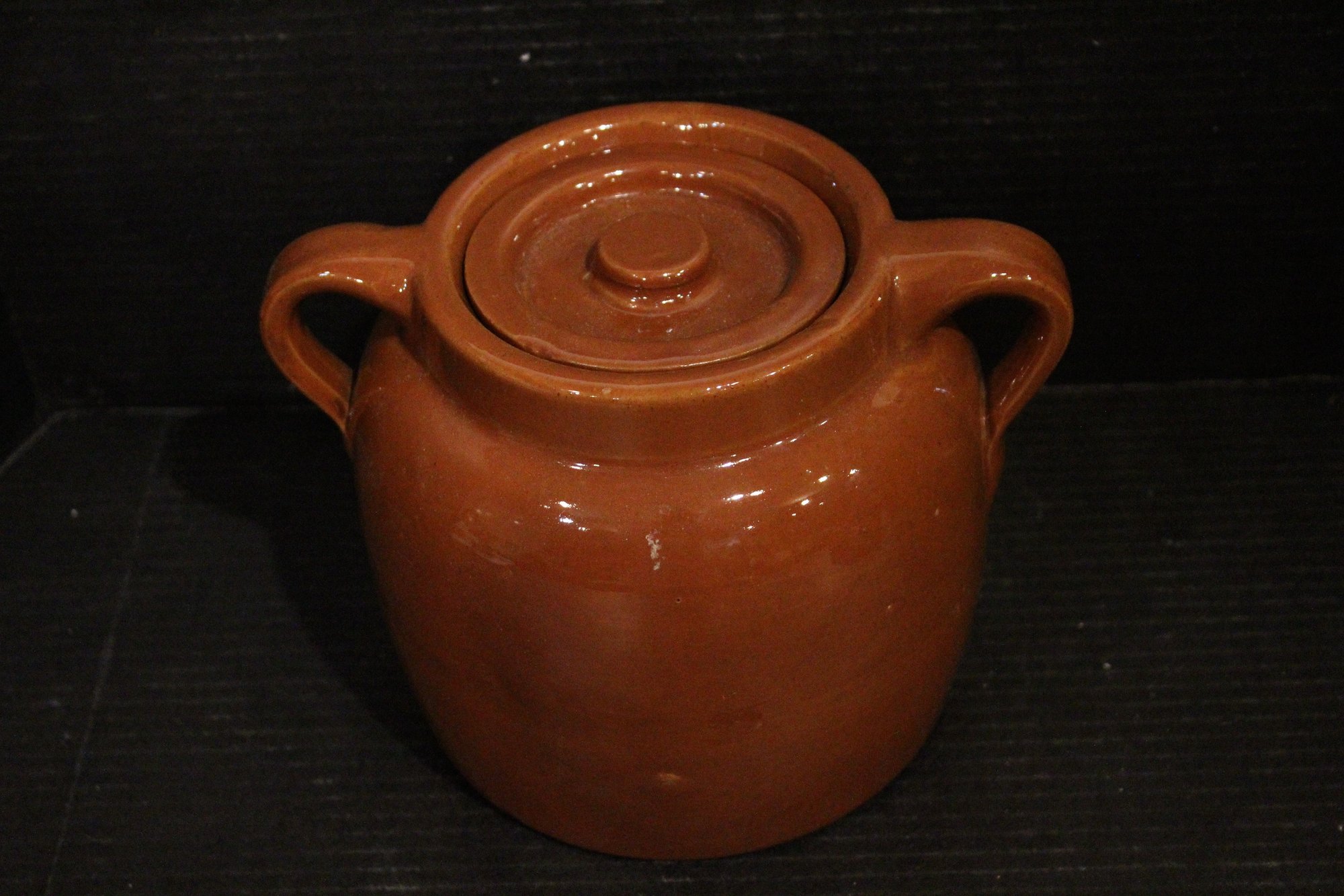 vintage brown-glazed stoneware bean pot or confit pot, Varley, 7" tall