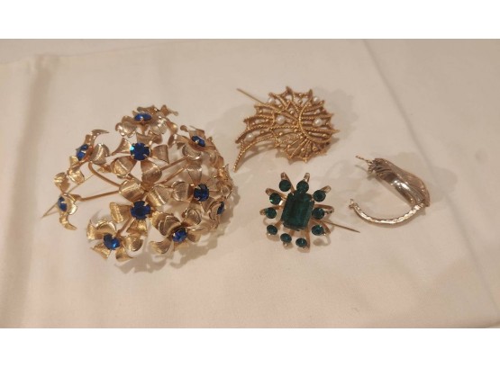 4 vintage brooches of varying sizes