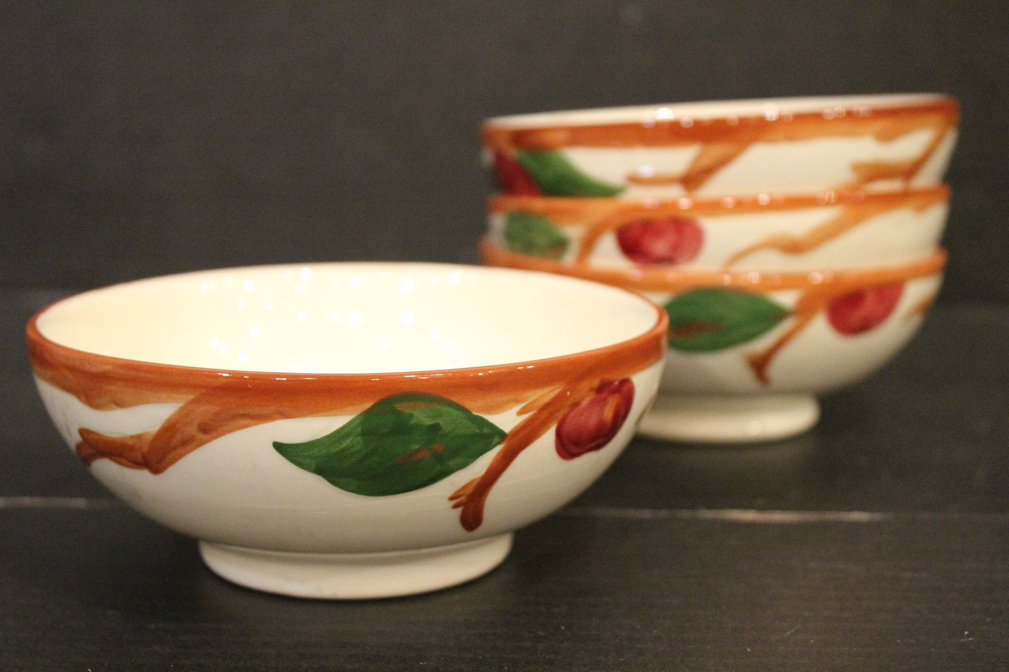 4 vintage 1940's California Pottery Franciscan Apple small bowls, 5.5". These items can be shipped.