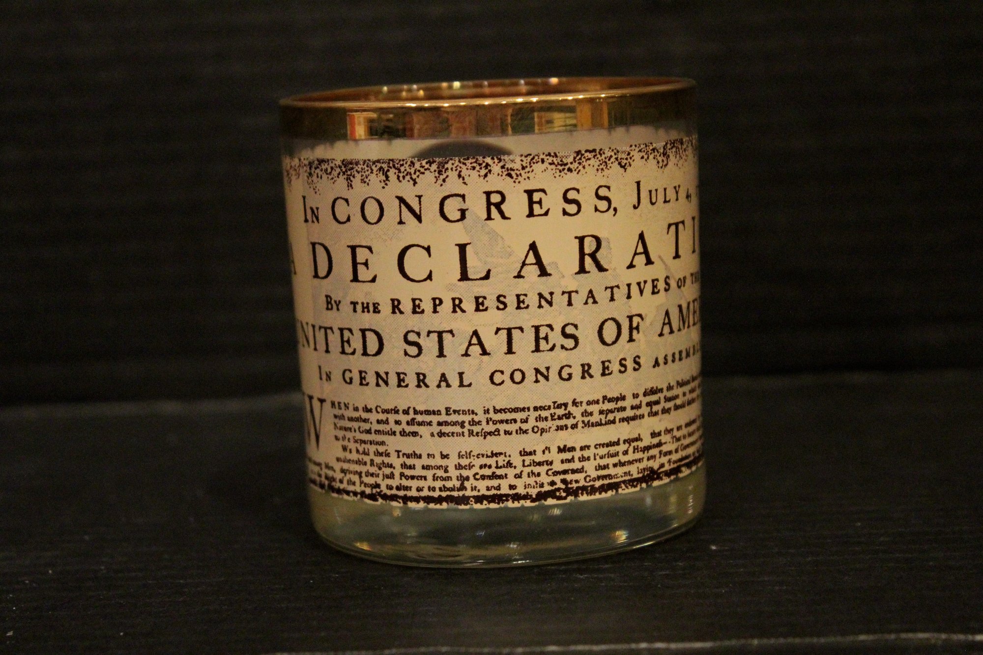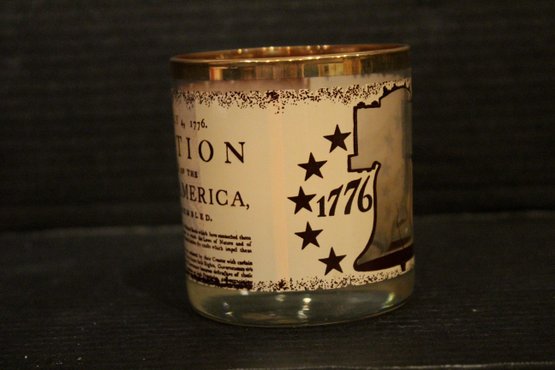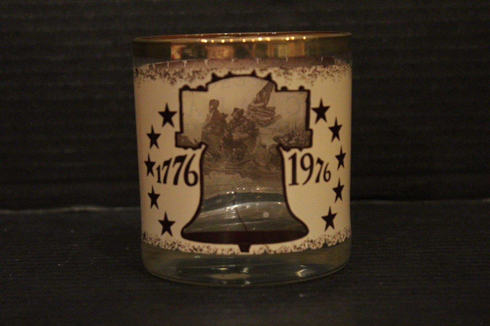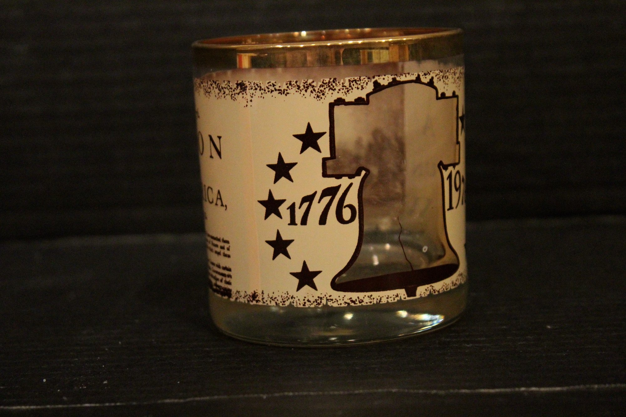 4 vintage 1776-1976 Bicentennial gold-rimmed rocks glasses 3.5" x 3".