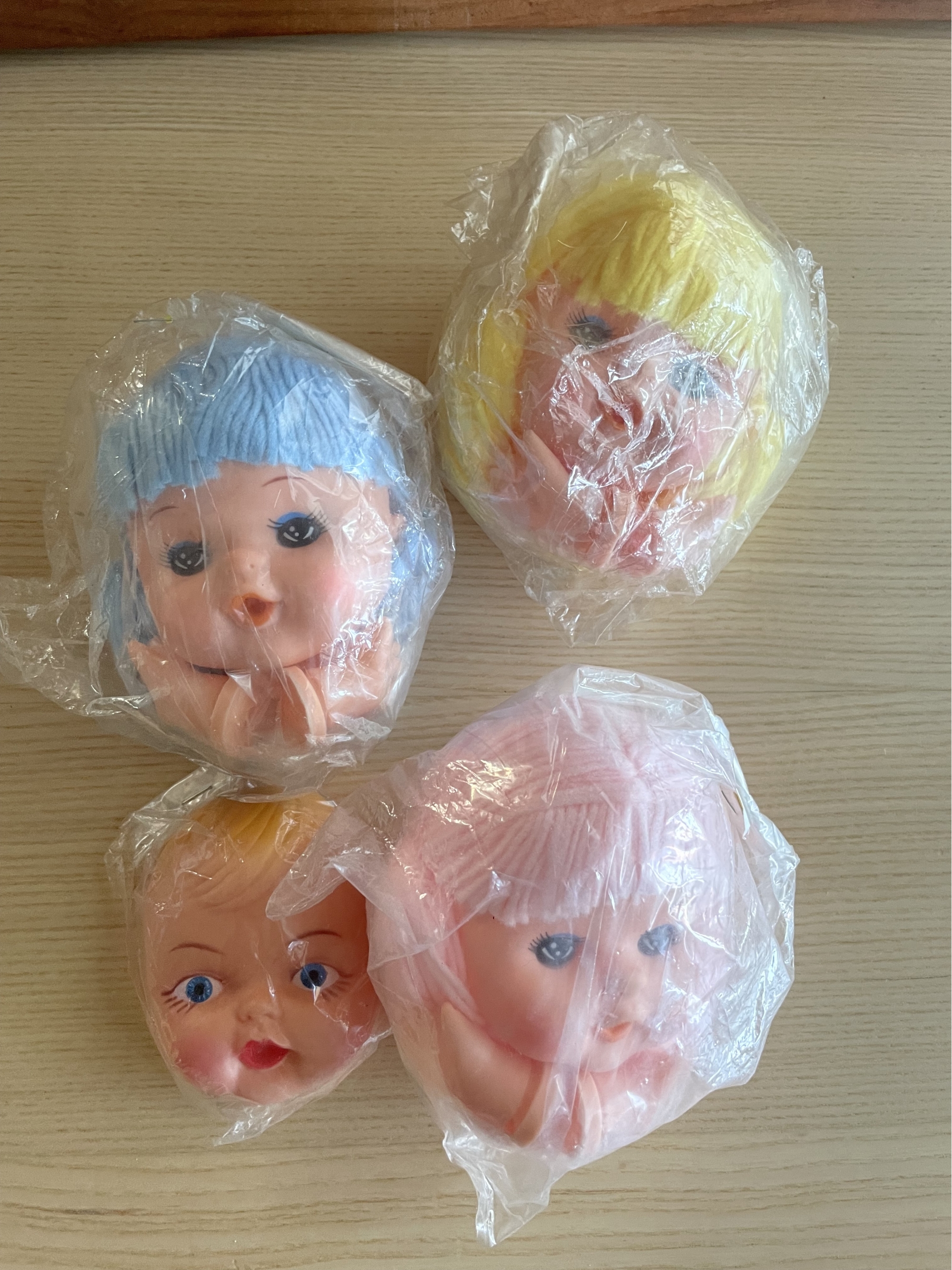 New in plastic - the 3 larger ones are 4.5” h like a small grapefruit . Circa the 70s