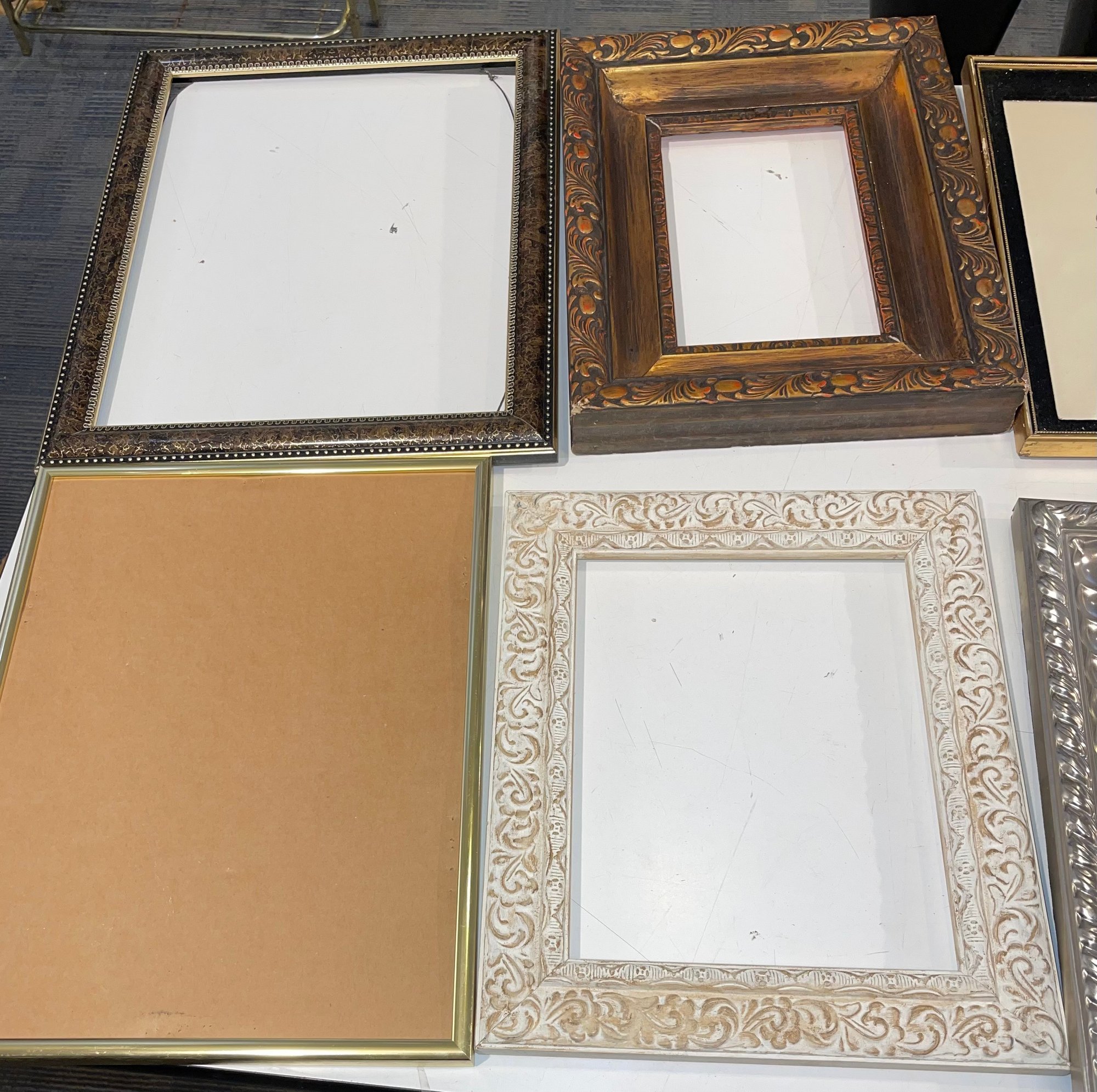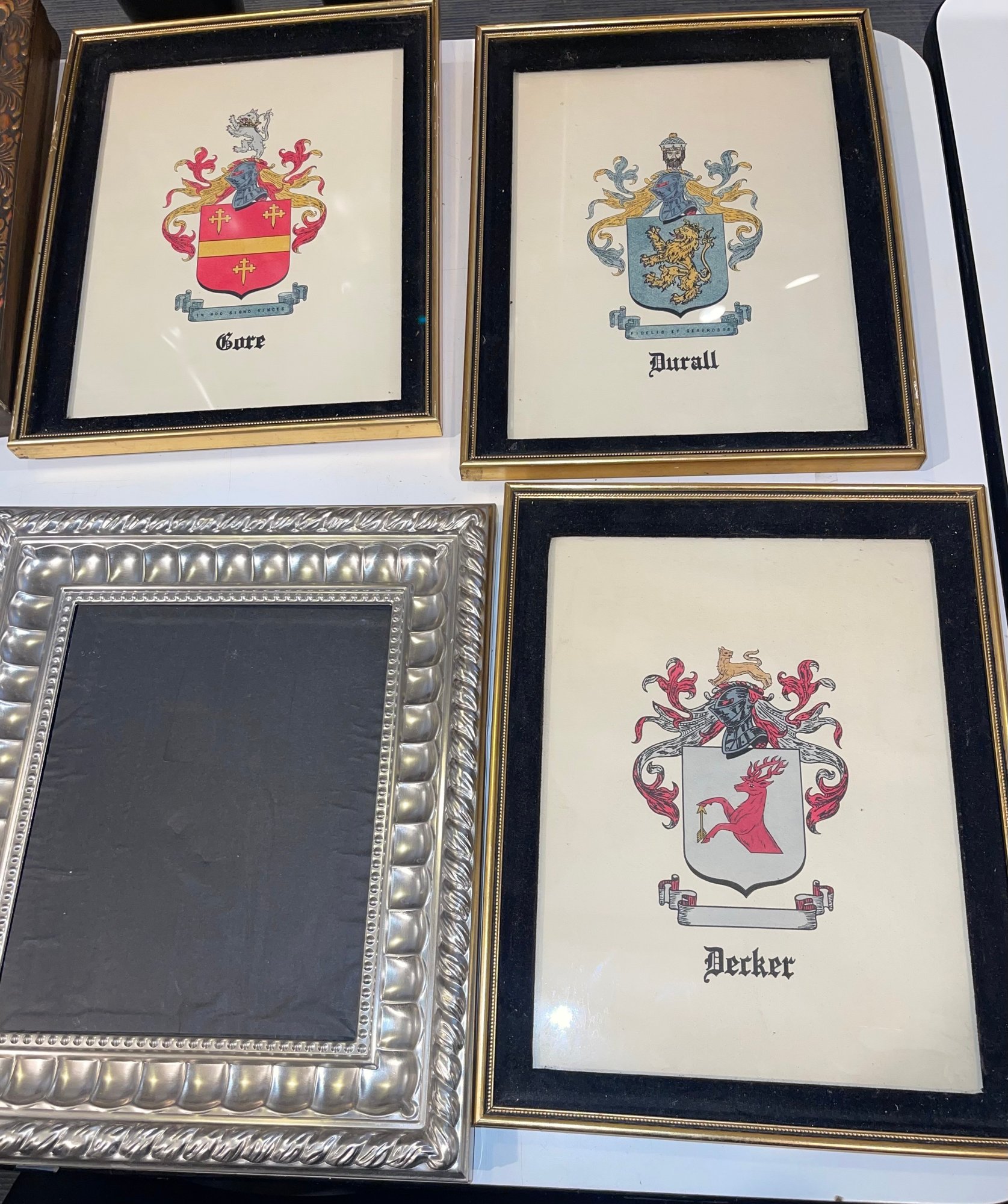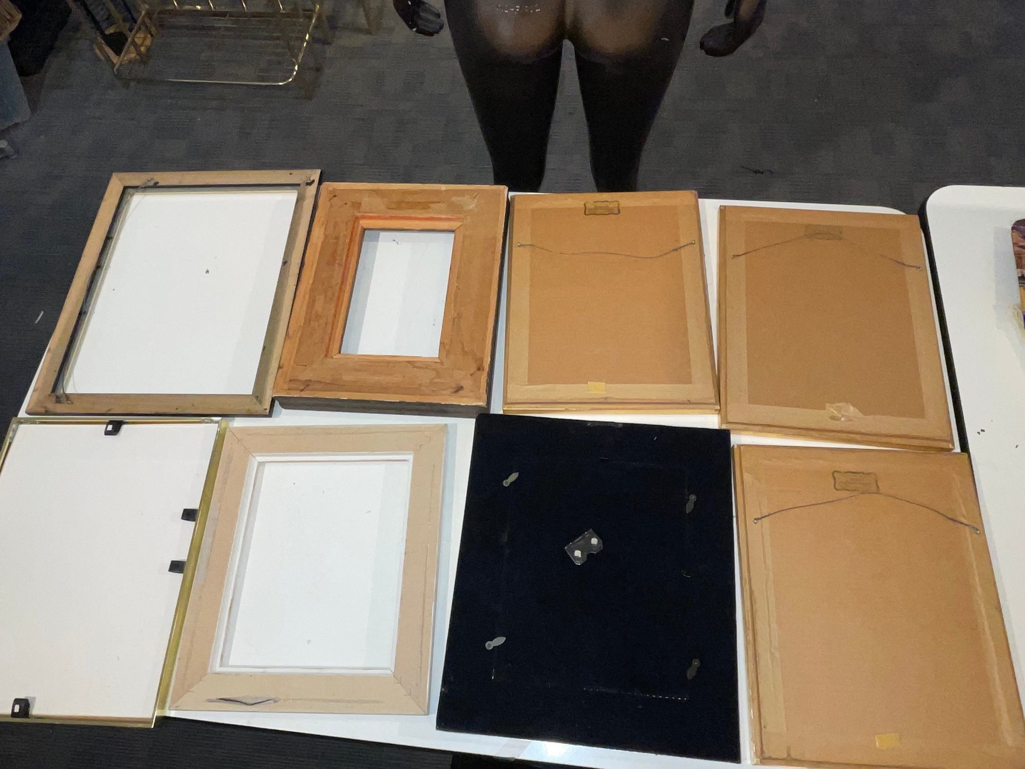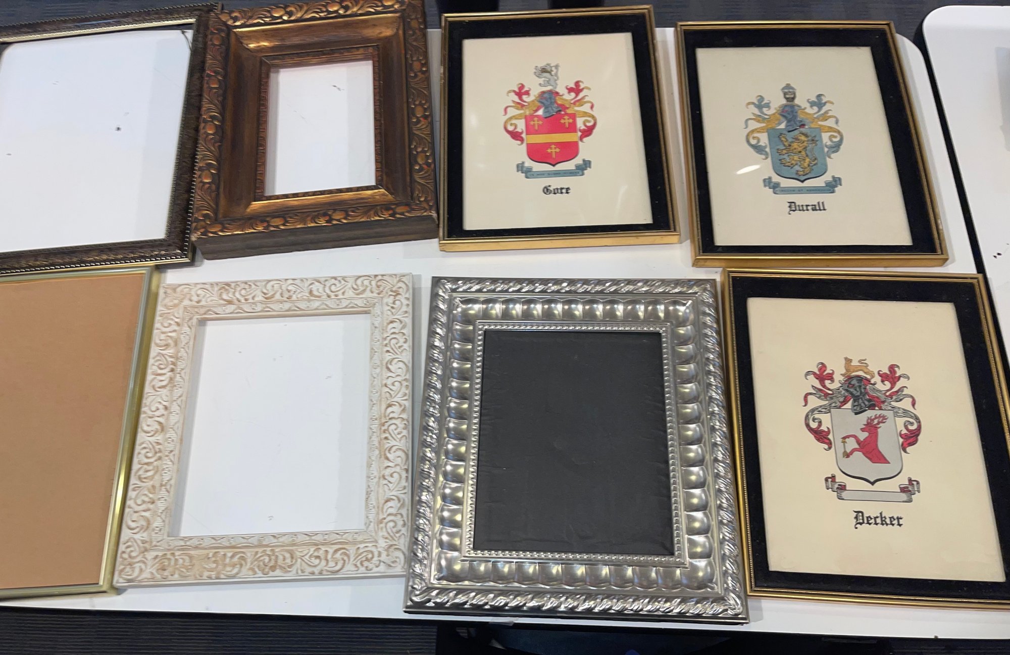 11x 14 is largest size. The 3 frames with coats of arms have glass. The others do not have glass.