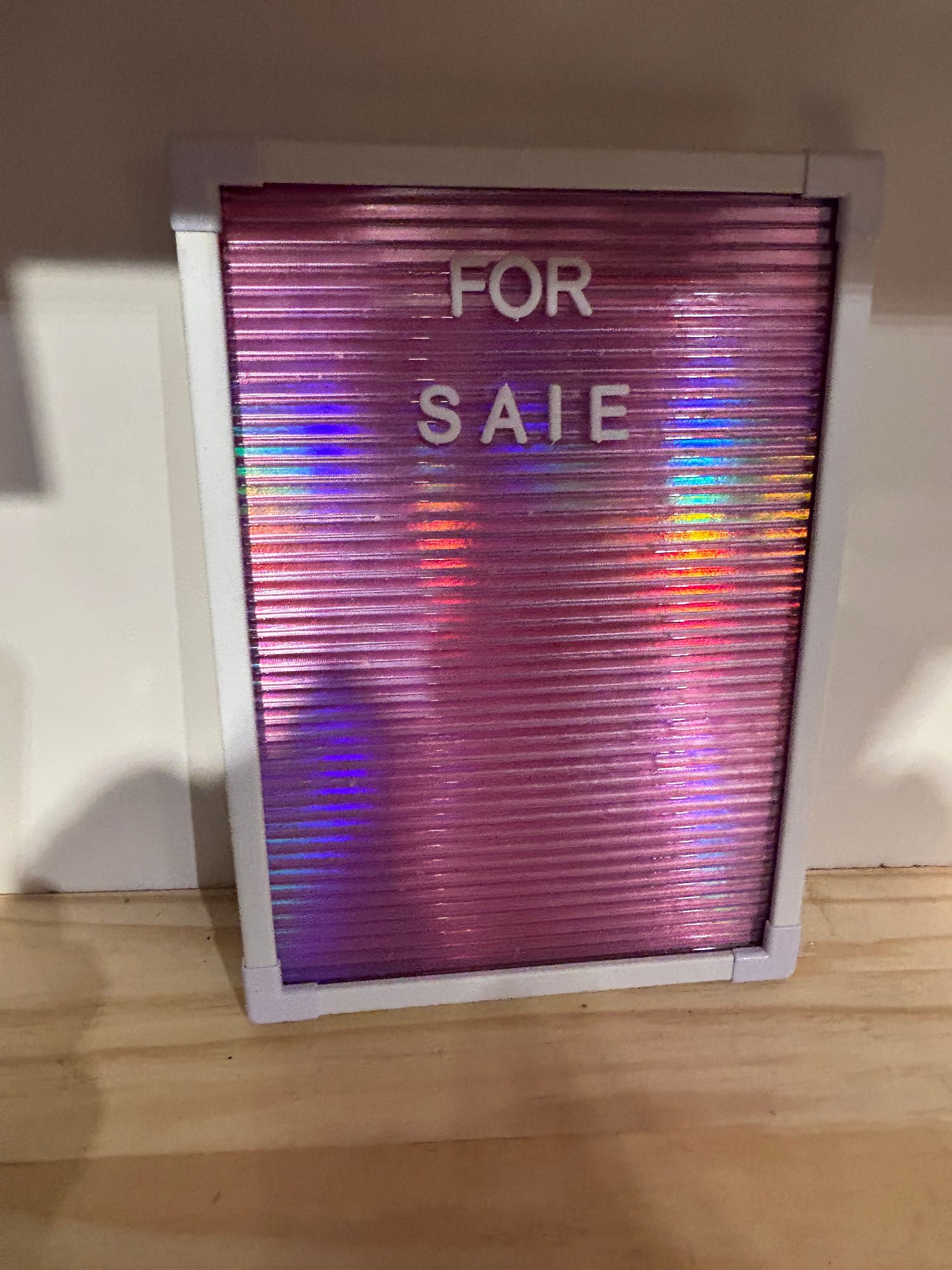 12 x 8 sign, pink background with white border, and white letters that can be arranged.