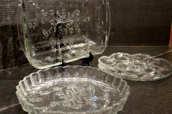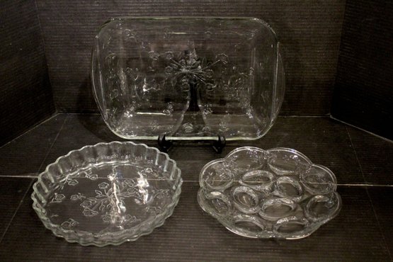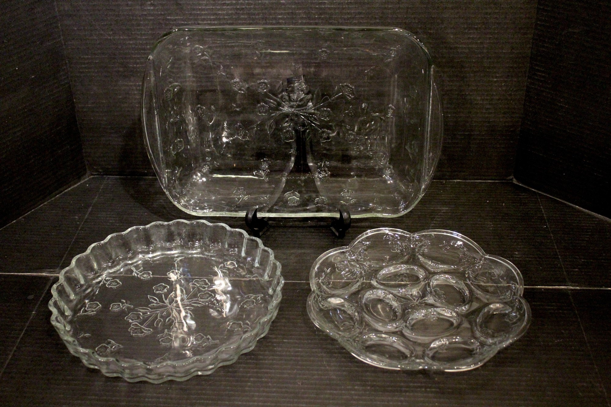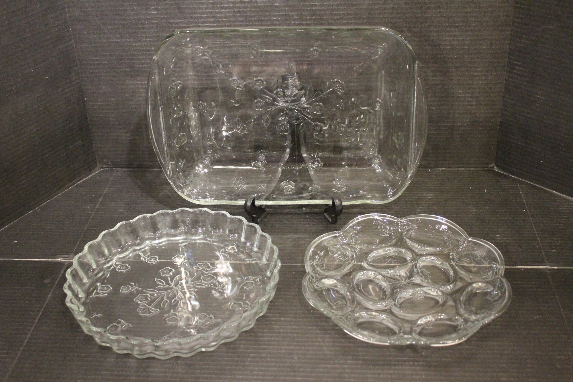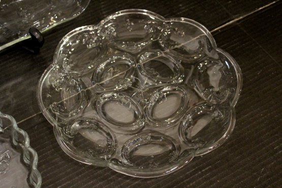 vintage Anchor Hocking Savannah clear glass deviled egg plate, 10"