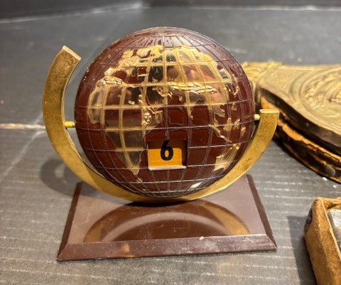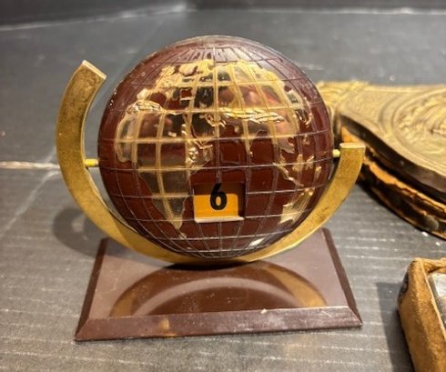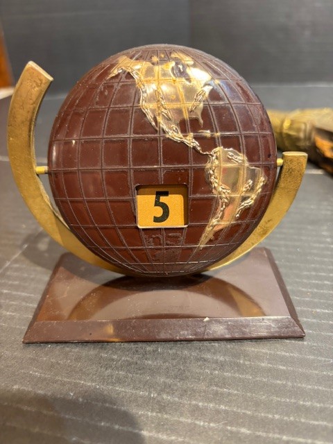 Vintage retro deco wood and gold brass globe flip perpetual desk Calander MCM